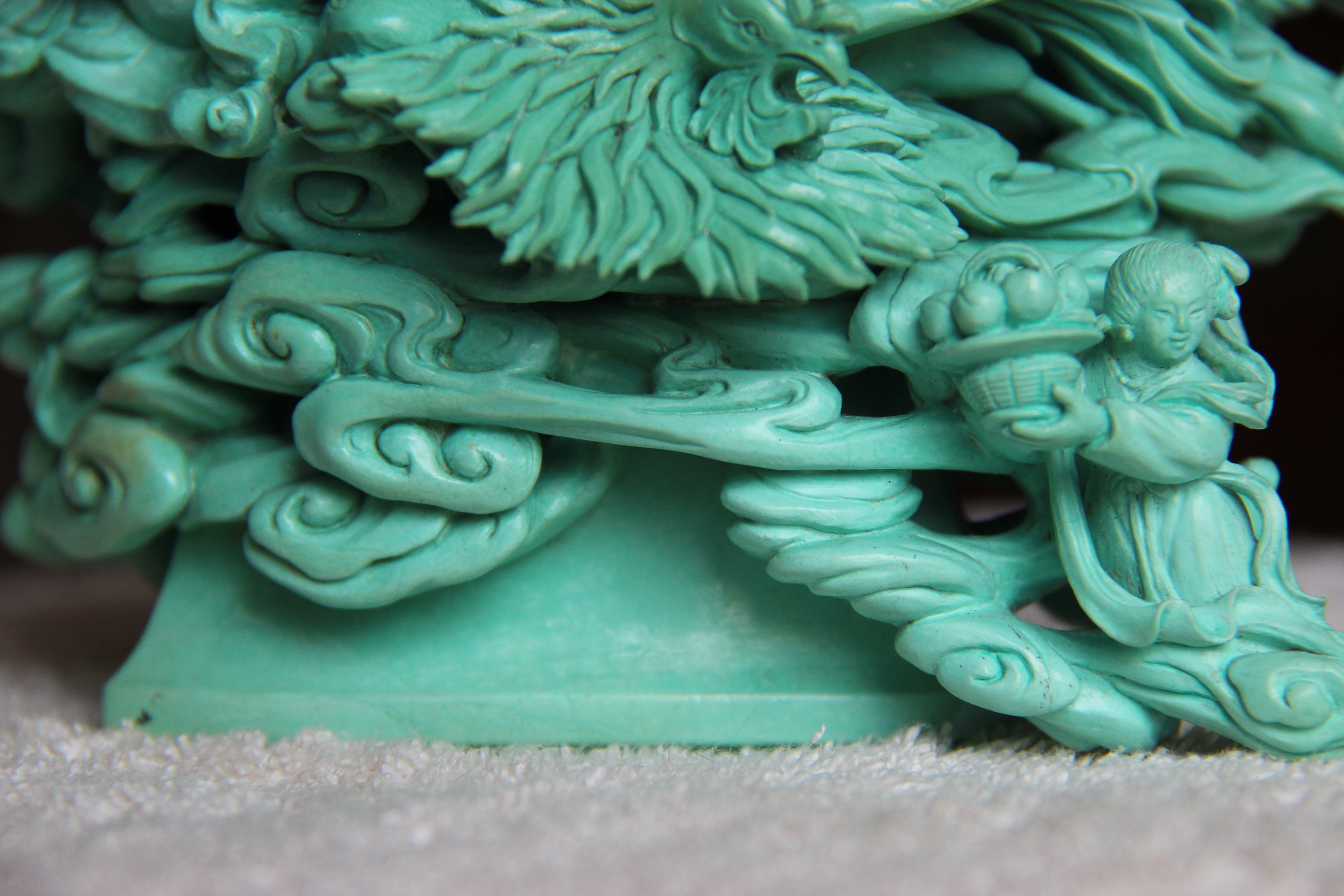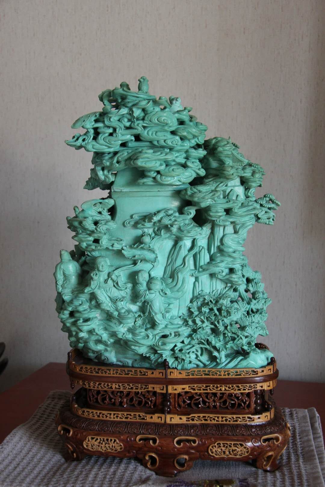 从图片看工艺没达到五六十年代的工艺要求,底托是九十年代的工艺手法。材质的话重要的是看硬度,需要硬度测量仪测一下,不同硬度价格差距很大。如:颜色鲜艳5-6硬度每克600元左右,4.3-4.7每克200元左右等,以上供参考。