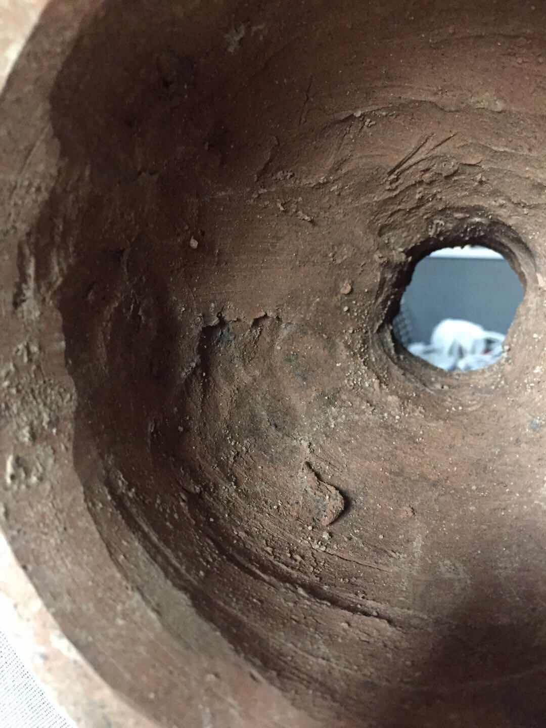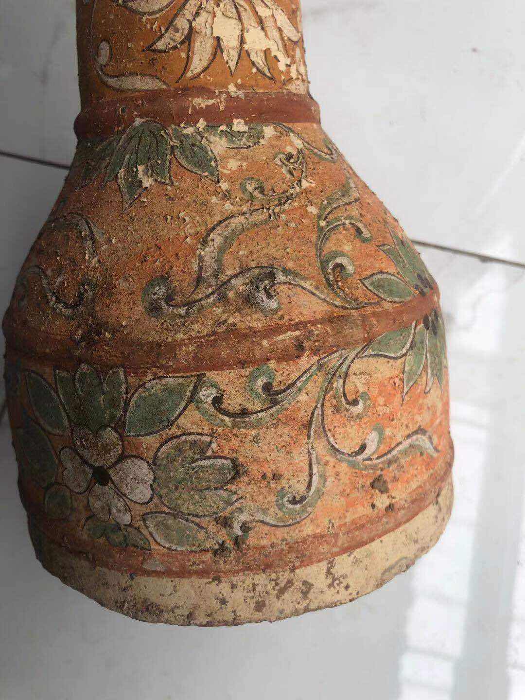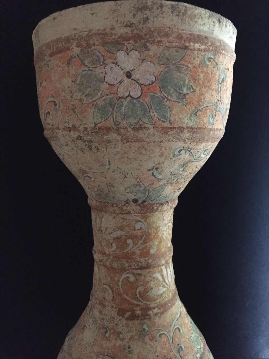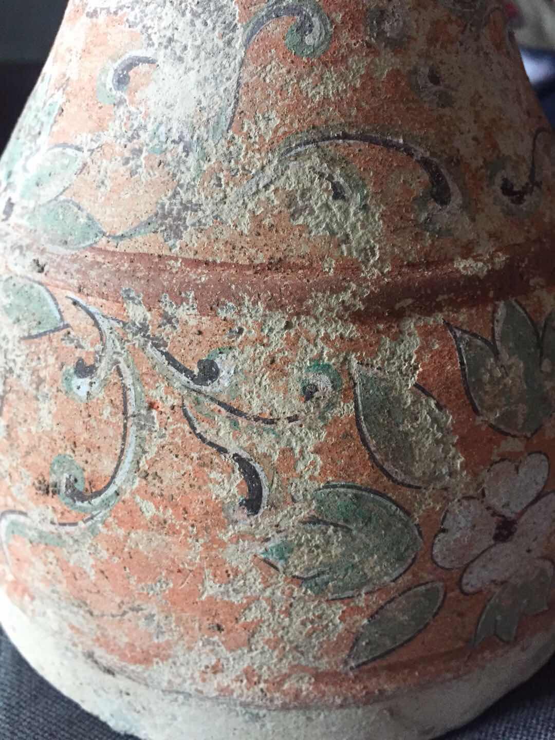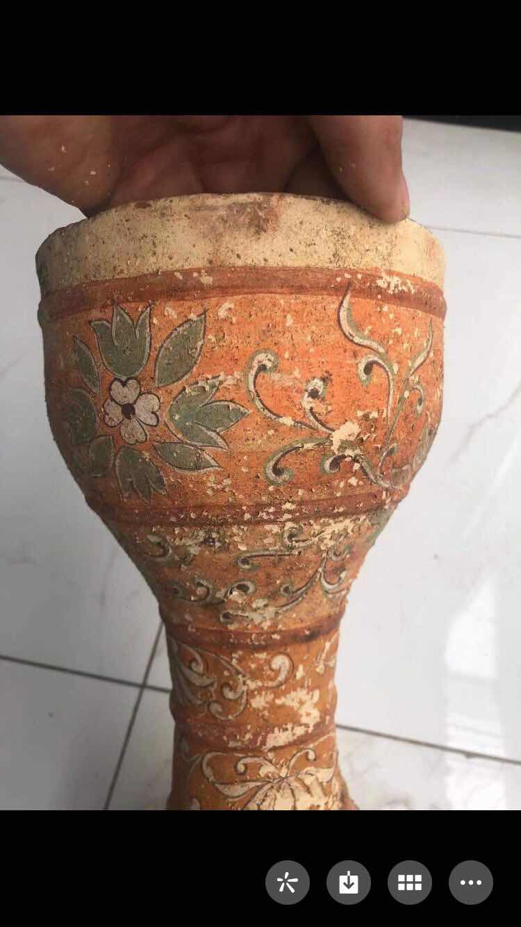 我国目前发现最早的陶器,是裴李岗文化和磁山文化的陶器,距今已有八千多年,显然它不应是最原始的陶器。中国最原始的陶器出现在何时,是什么样的形状,目前考古发掘中还没有见到。 仰韶文化大约在4000年至8000年之间,这一时期的陶器以细泥红陶和夹砂红陶为主,灰陶比较少见,黑陶更为罕见,这与当时陶窑的结构有着直接关系。仰韶早期多采用开放式架火烧制技术,陶器的温度低,烧出的陶器多为红色,质地疏松。仰韶晚期,烧陶窑的结构逐渐演变为地穴式半封闭状态,烧制的温度提高,红陶质地也变得坚硬细腻。为什么说仰韶文化时期以红陶为主的原因就在于此。 彩陶是仰韶文化最主要的特征,是用赭、红、黑和白等色绘饰陶器,彩绘图案具有浓厚的生活气息和独特的艺术风格。彩陶的制作是在陶器未烧之前作画于坯胎之上,烧成后彩纹固定在器物表面不易脱落。有的在彩绘之前,在胎上先涂上一层白色陶衣,使彩色花纹显得更为鲜明。 终上可知:该藏品从工艺丶绘画、制作,已达到了很高水平,根据该藏品特征,应为唐代及唐代以前。这种器型也非常独特,两头大腰部小,为内空,该为娱乐器腰鼓。 由于没见到实物,从图片上观看,本藏品为真品。彩陶具有非常高的研究价值,但在现实中,经济价值不是高。建议送慱物馆。