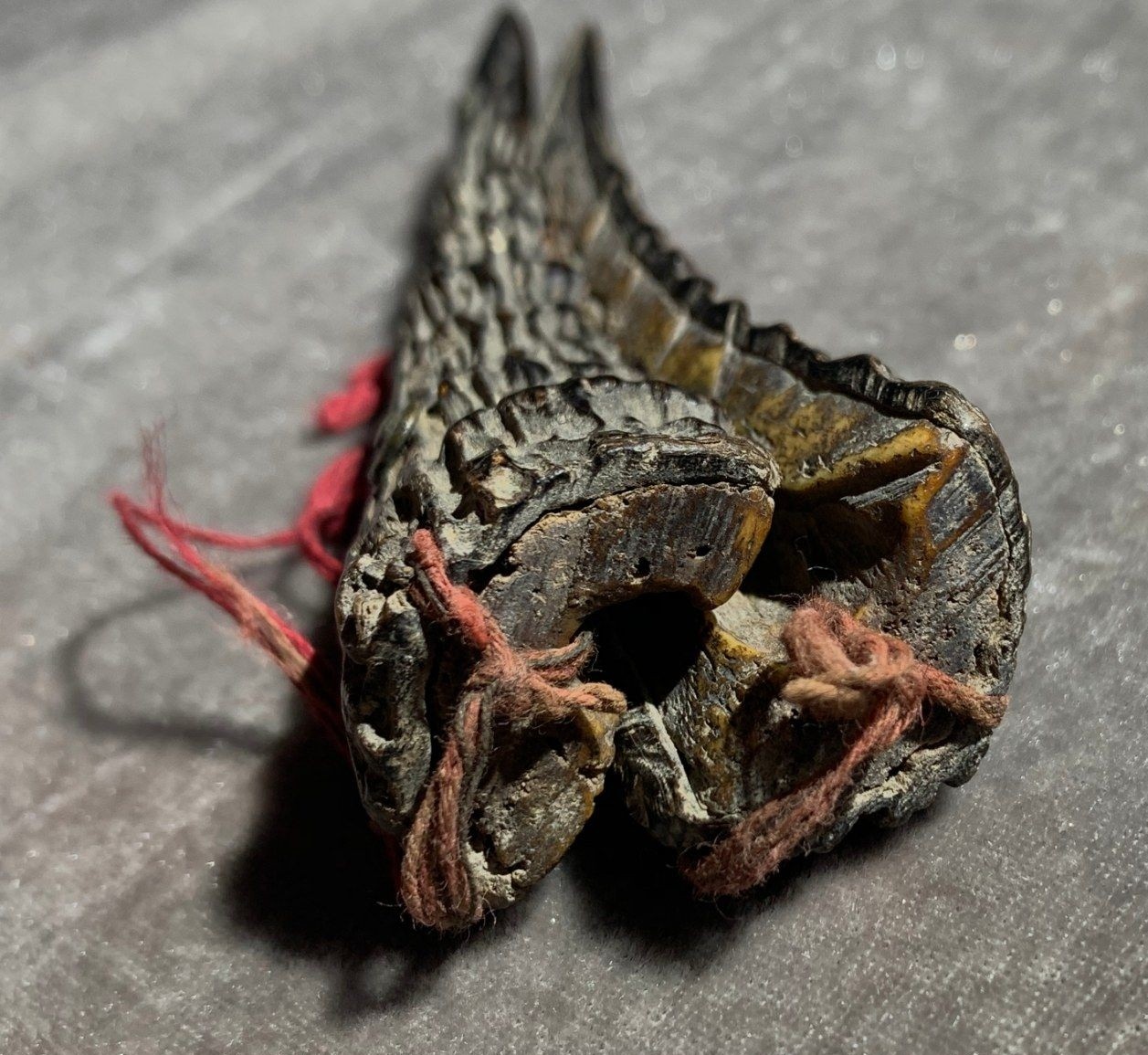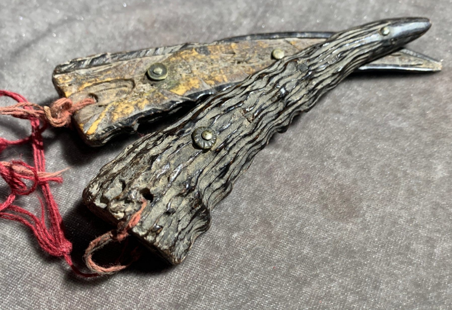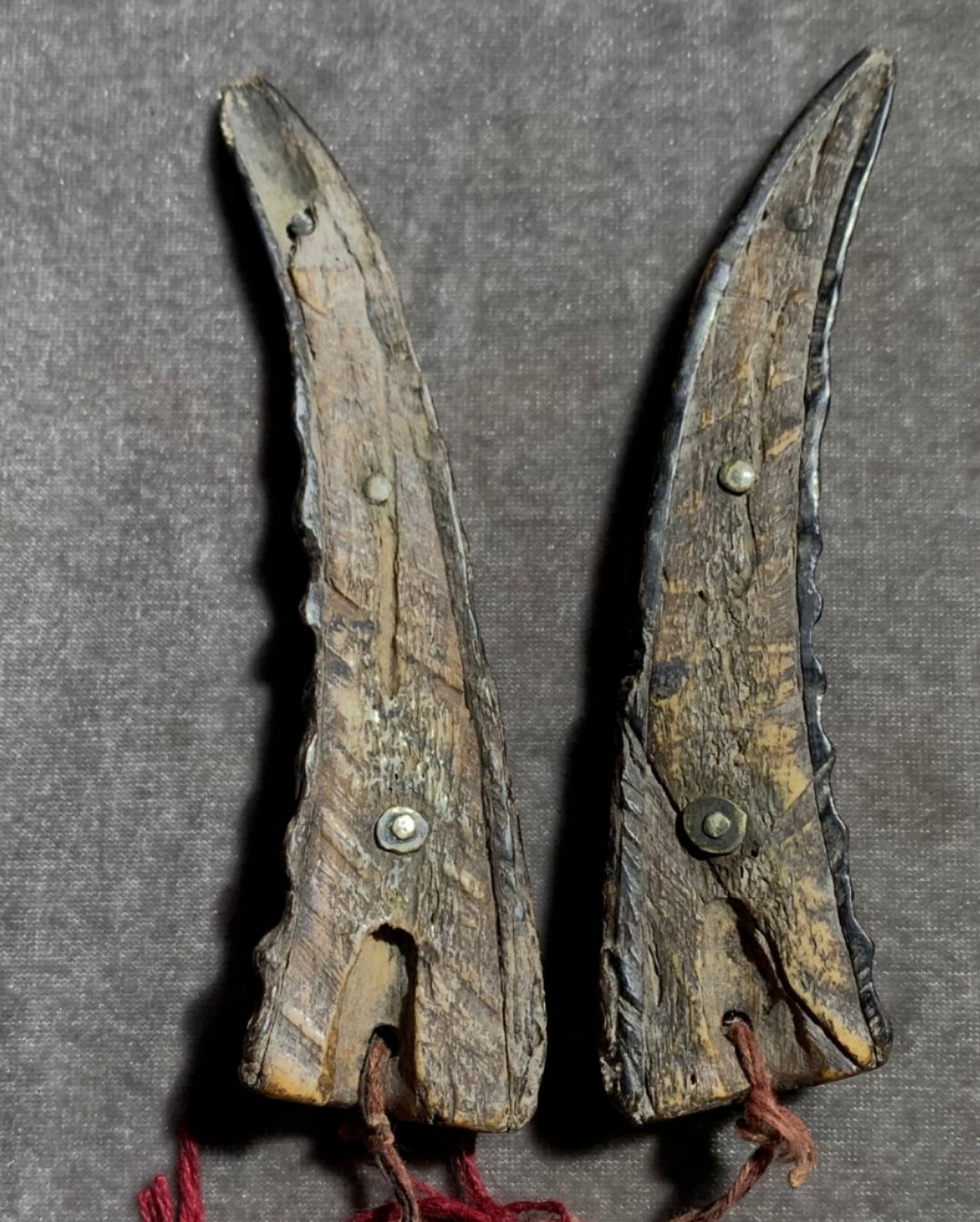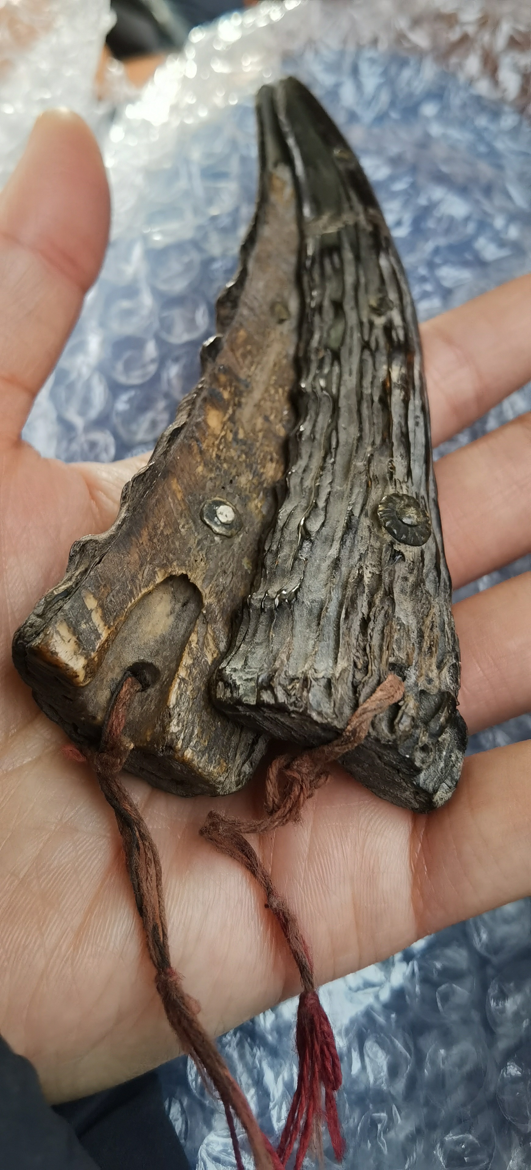 藏家您好,就我的观点而言,其物肯定不是灵羊的角,应该是一种麋鹿的角,在古代因其坚硬有做刀把或实用工具,或挂饰功能,角类制品古代有通灵之说,他这个应该是晚清之物,铜饰做工简单,并没有宫廷气息,至于您说是法器类,辟邪是有可能。
