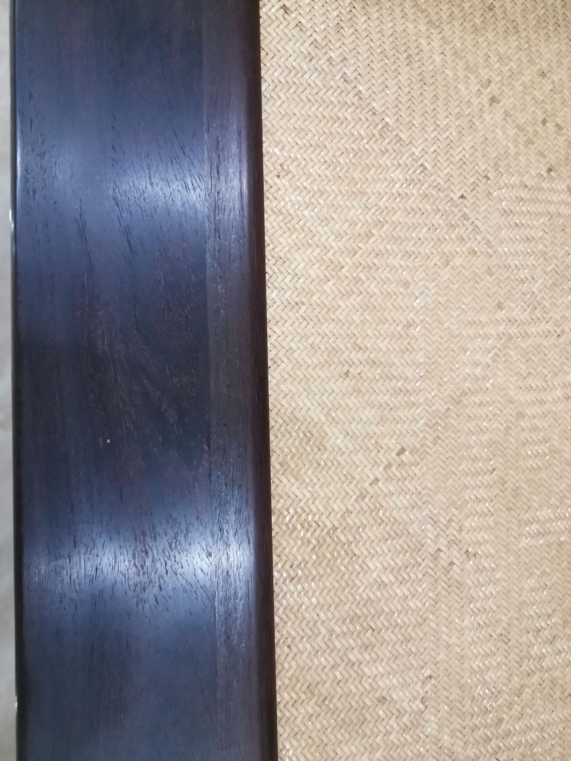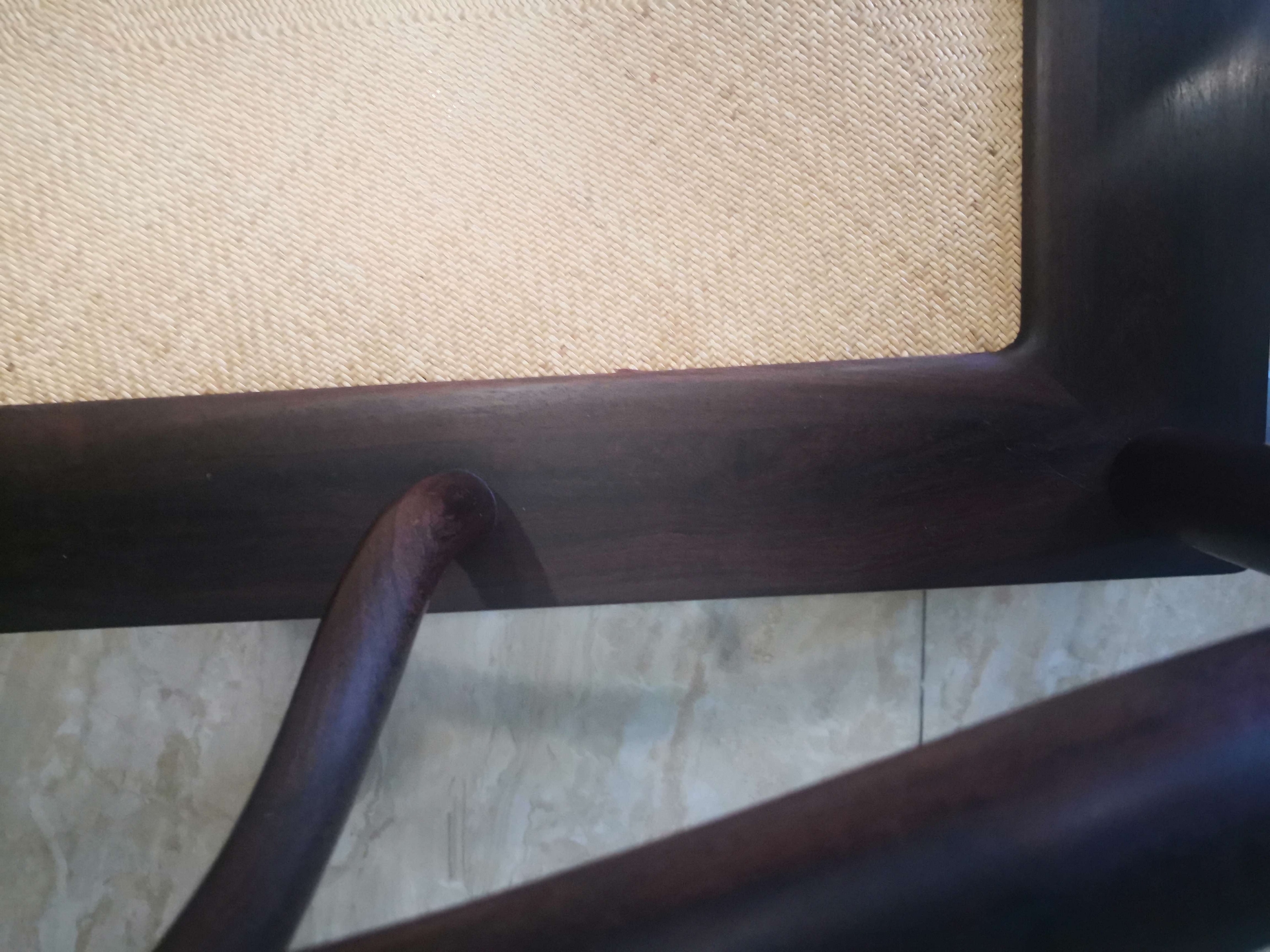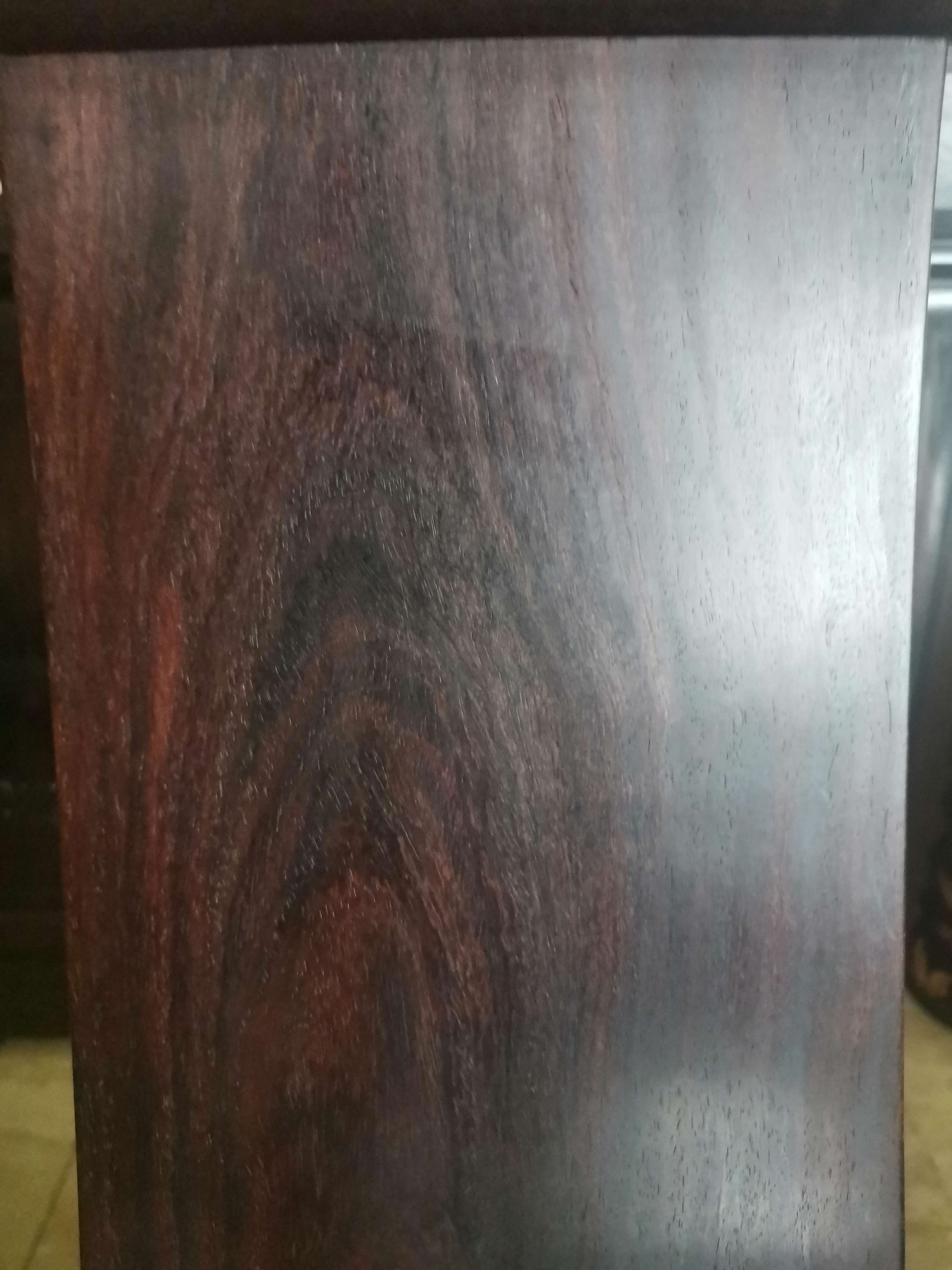 这对套官帽三件套做工精细,素雅大方,应该出老工匠之手,从它油性密度来看是印度小叶紫檀(而且是折房老料),这类素雅家具用料不大,没必要参假材料。
