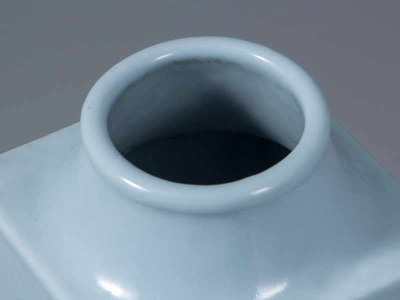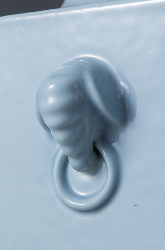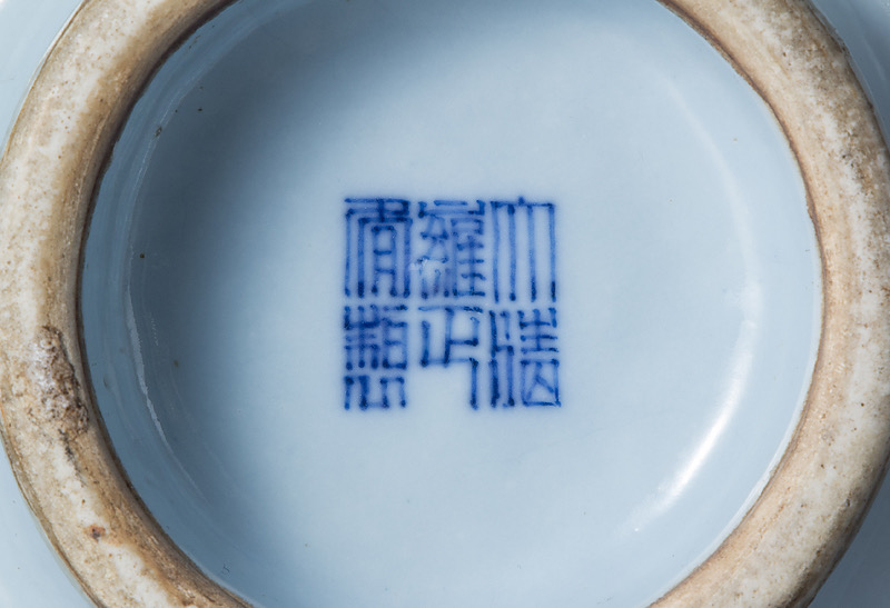 天蓝釉象耳瓶,器型规整,釉色纯正。但从款识上看与本朝区别较大。应为光绪民国寄托前朝款。结论,看老。