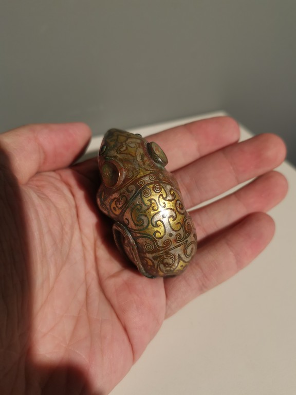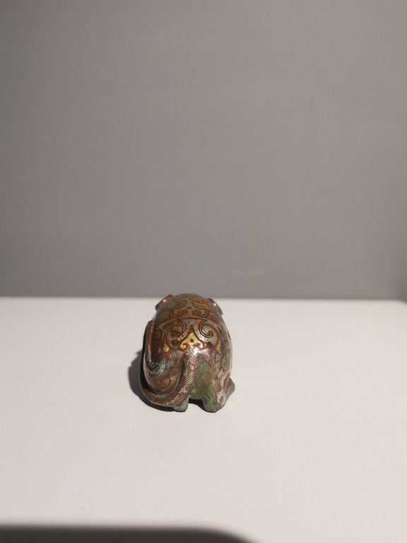 汉代错金银青铜鼠,造型生动,铜质精良,错金银工艺流畅,时代风格明显,有一定的文物价值和收藏价值。