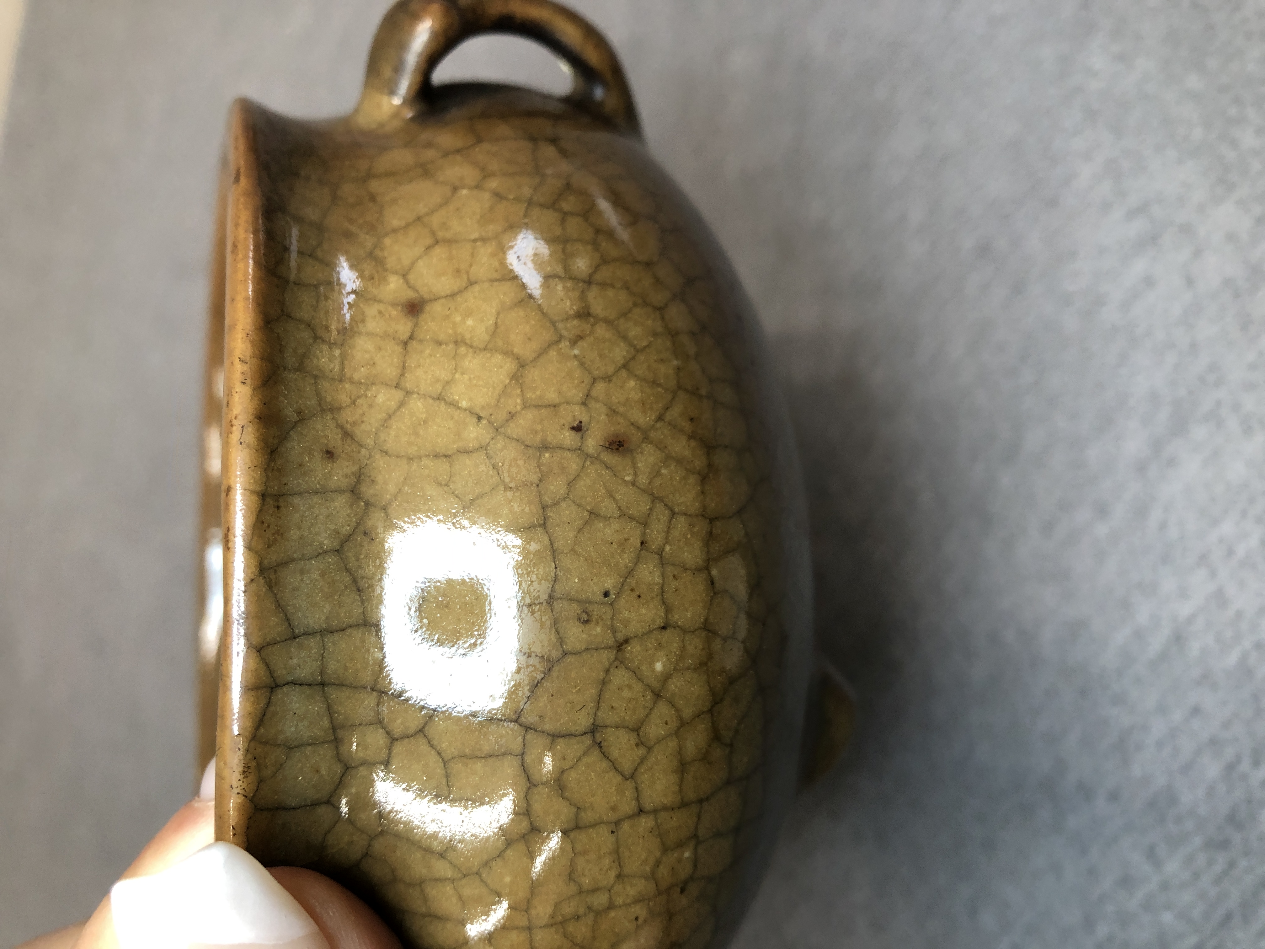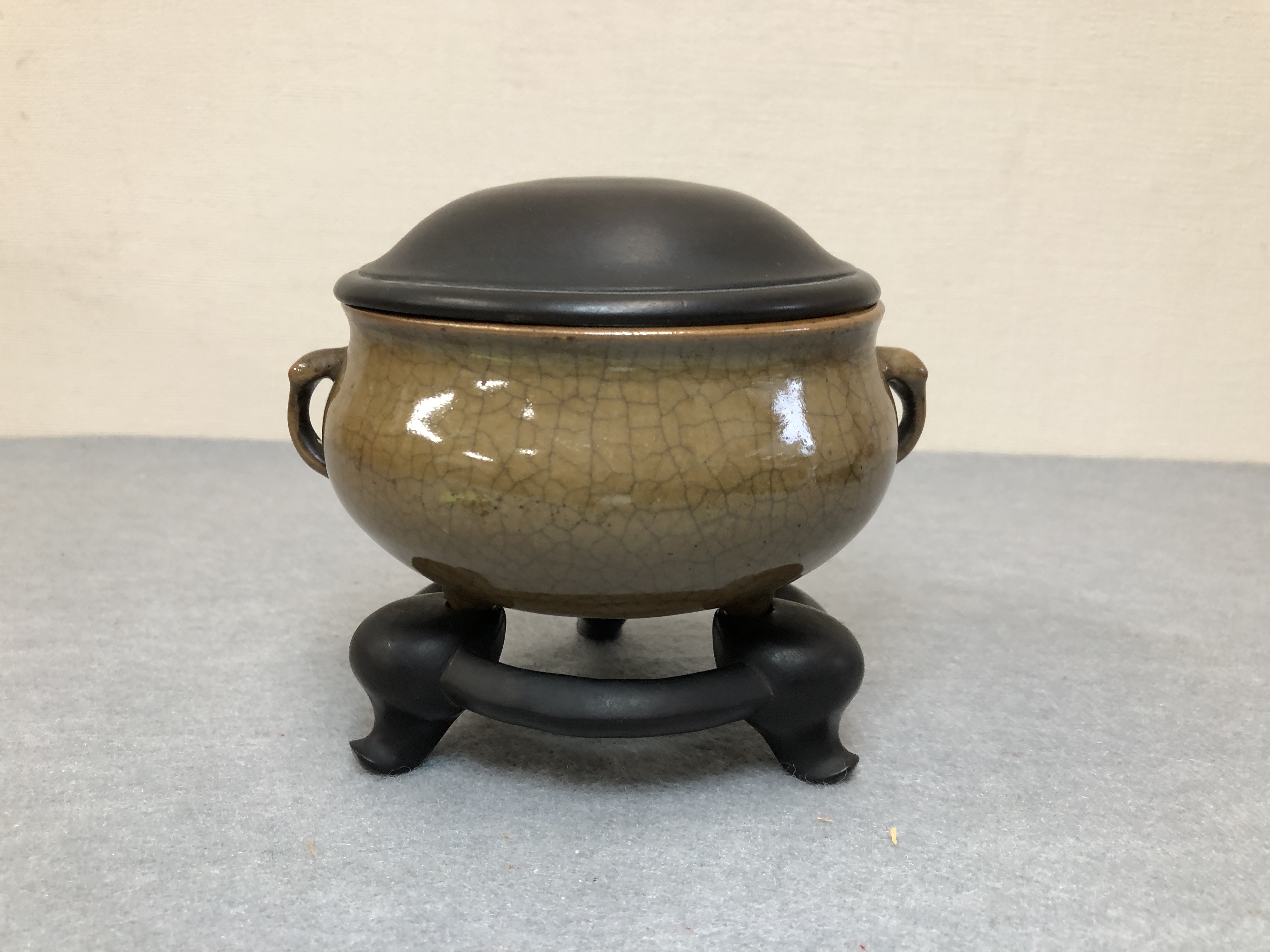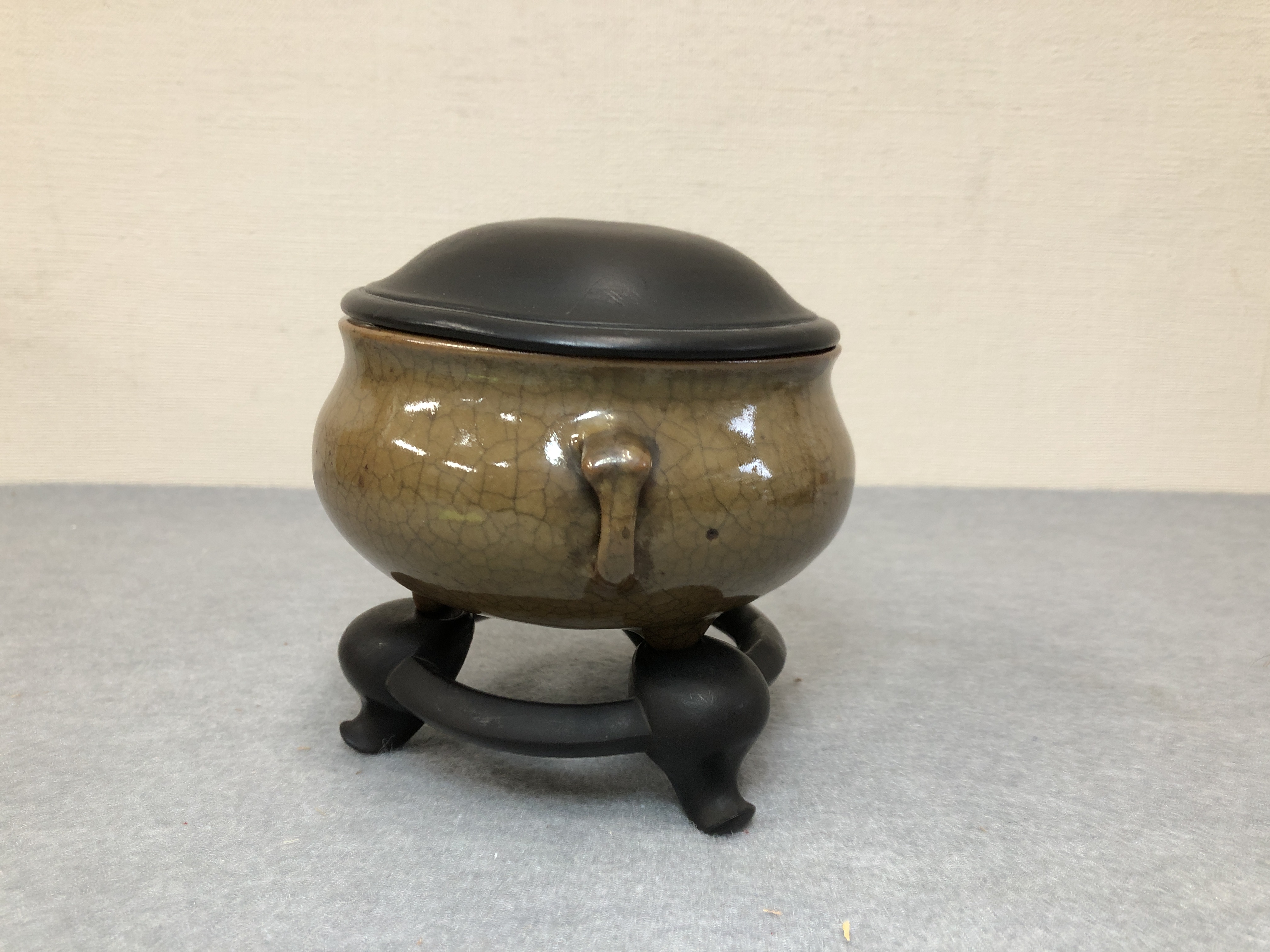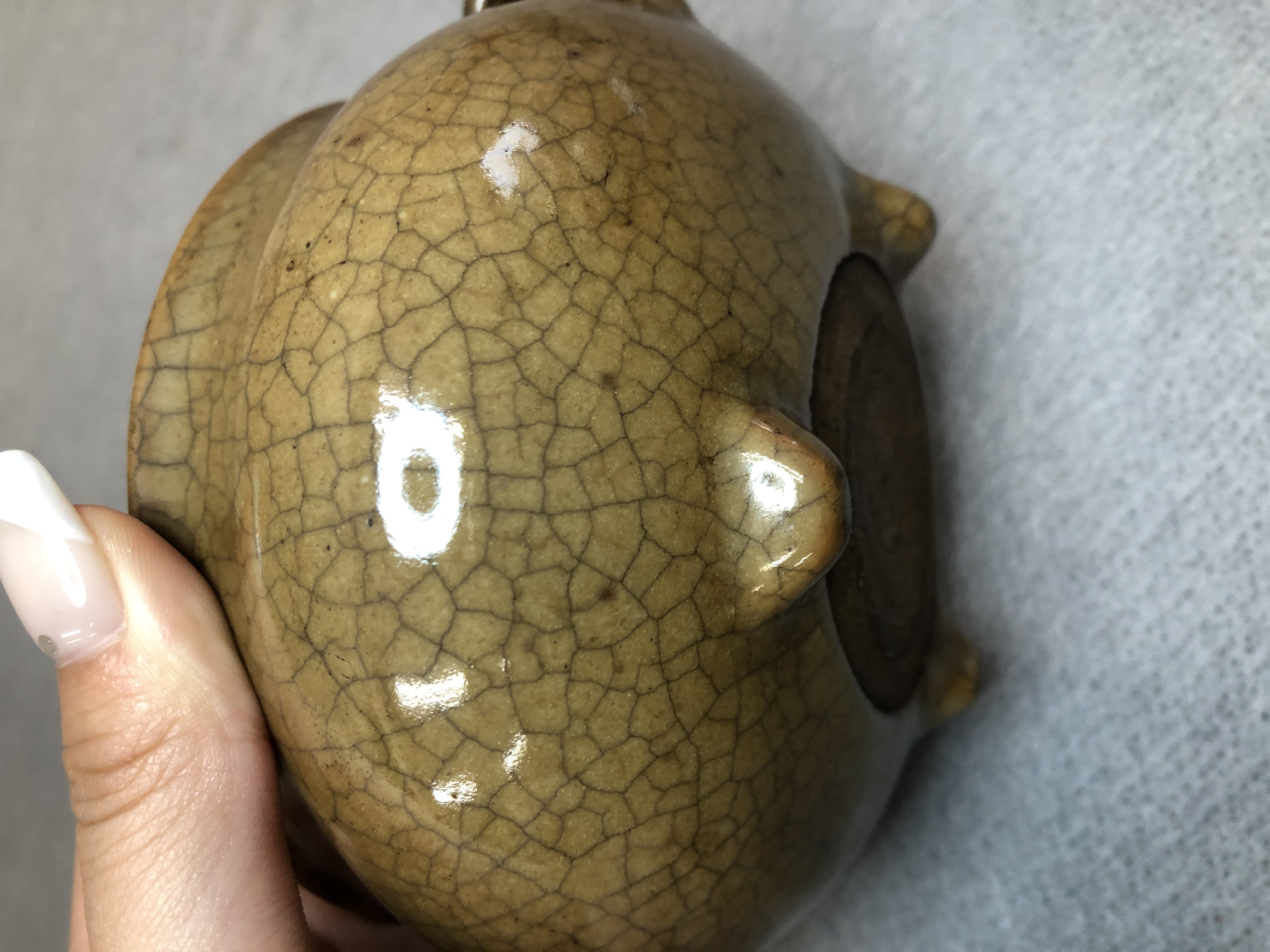 此件作品器形端庄,釉面莹润,开片自然,修足干净利落,整体线条流敞,鉴定结果为清代哥窑三足炉。