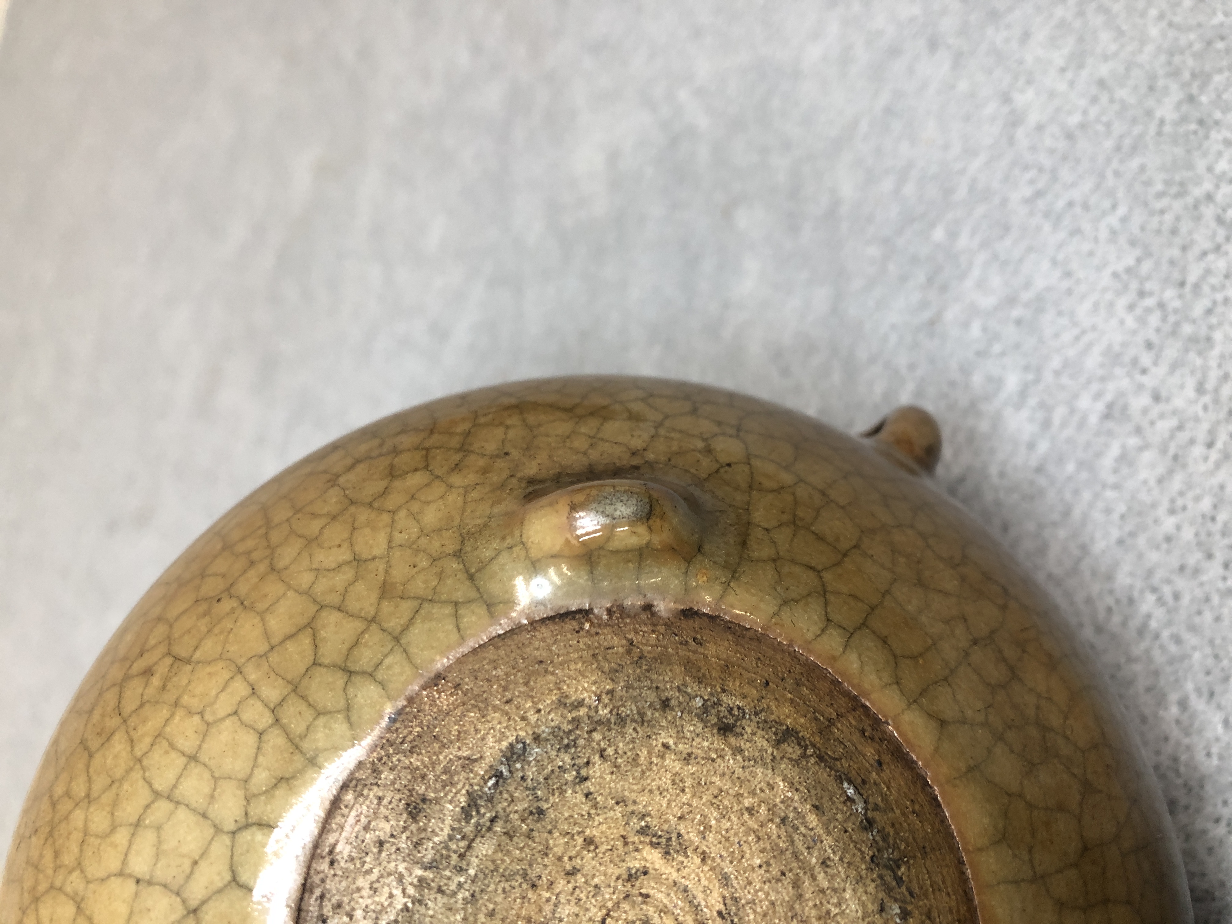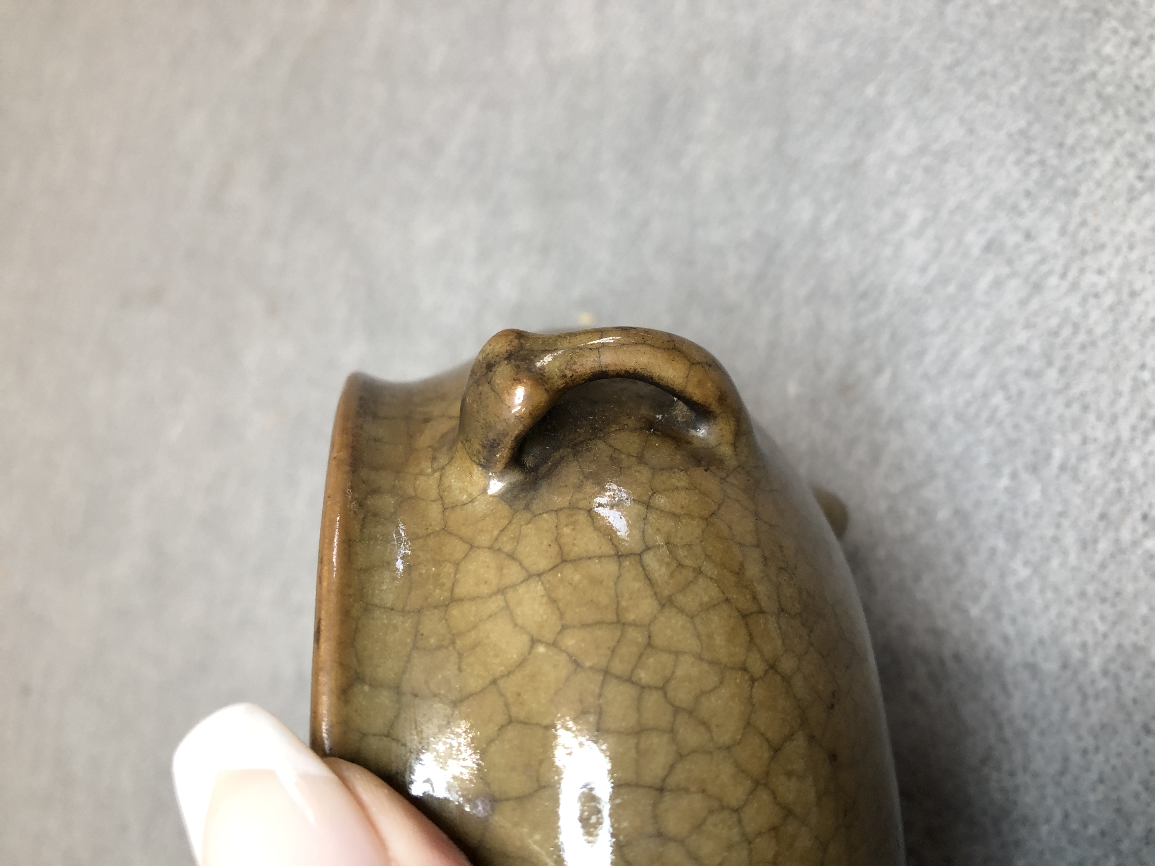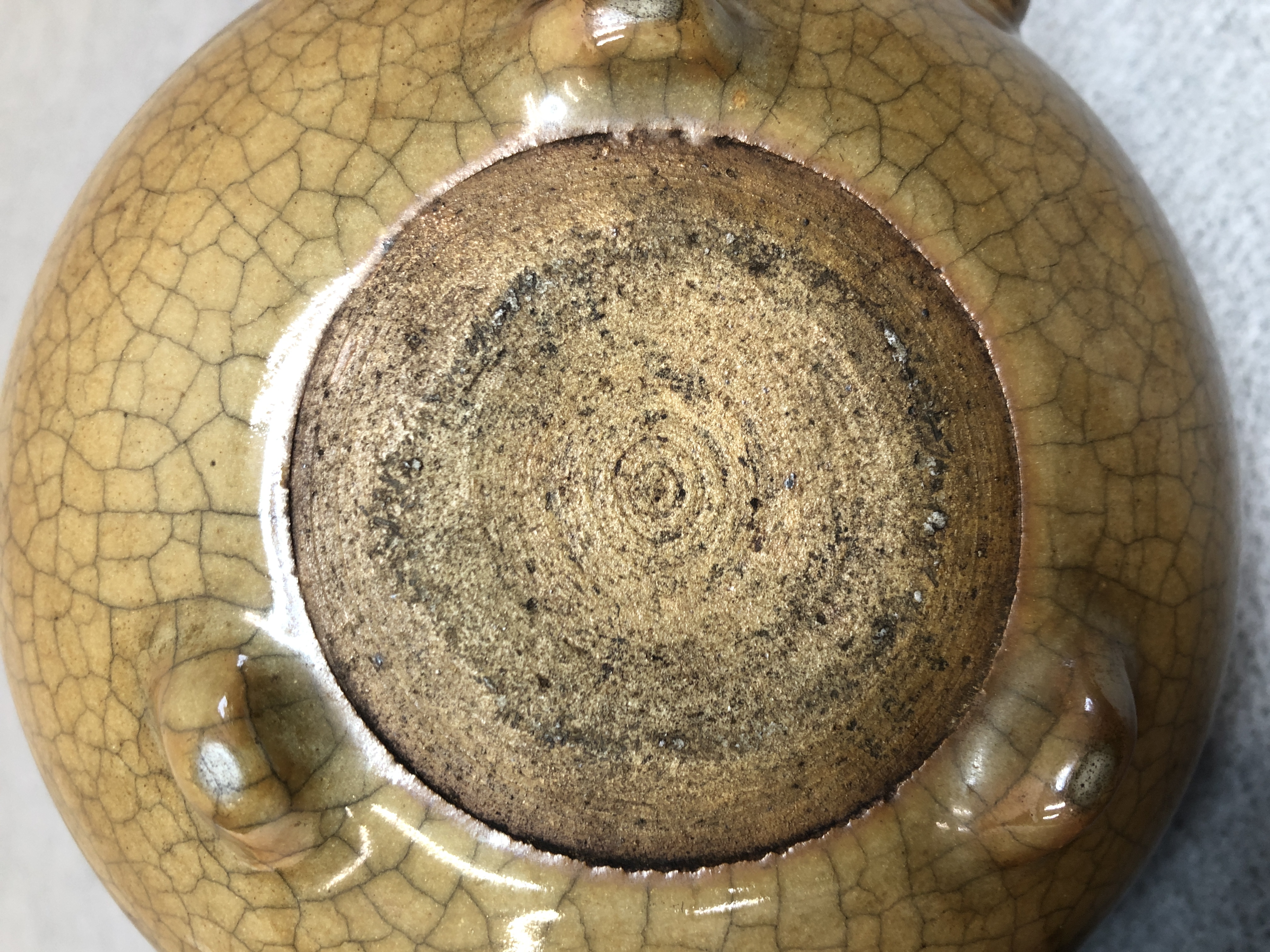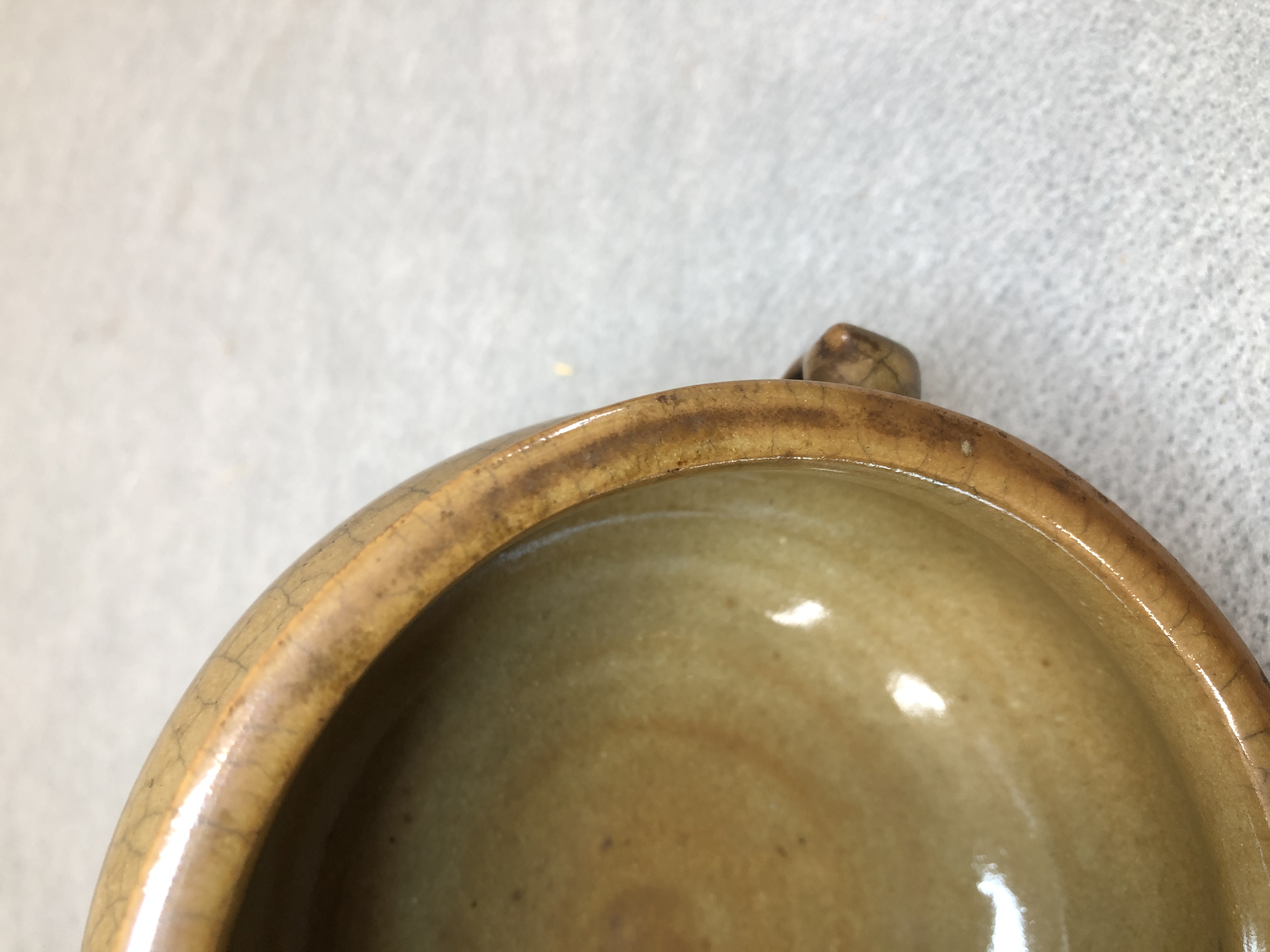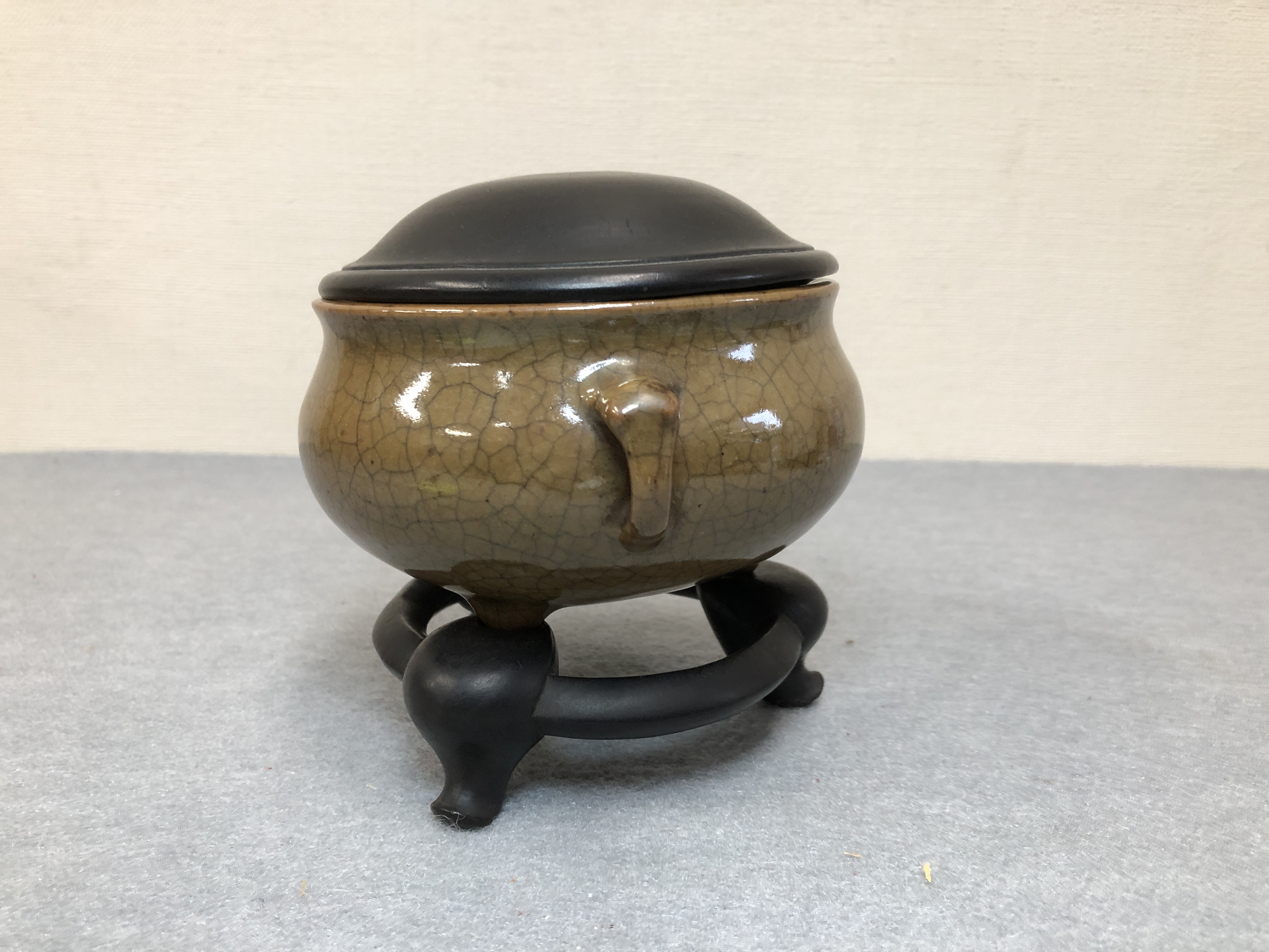 此件作品器形端庄,釉面莹润,开片自然,修足干净利落,整体线条流敞,鉴定结果为清代哥窑三足炉。