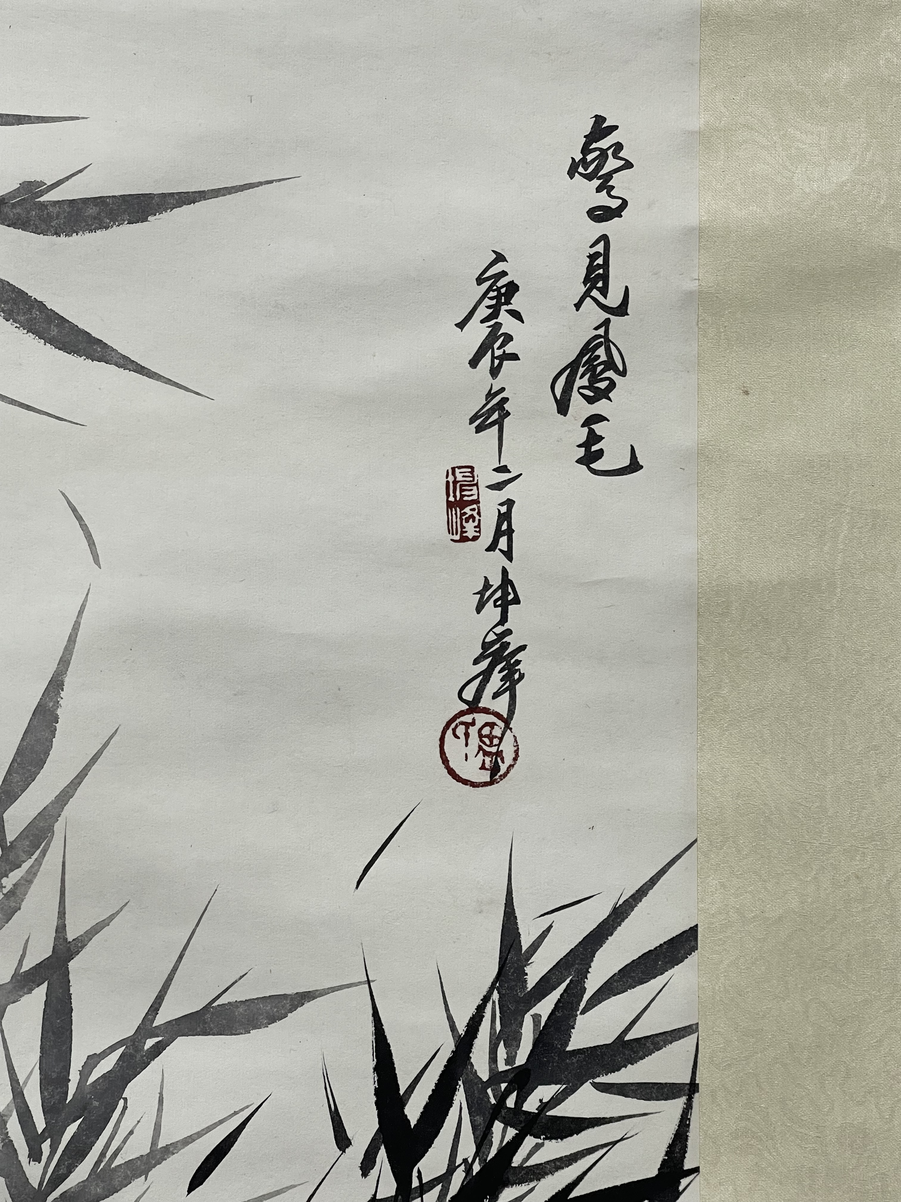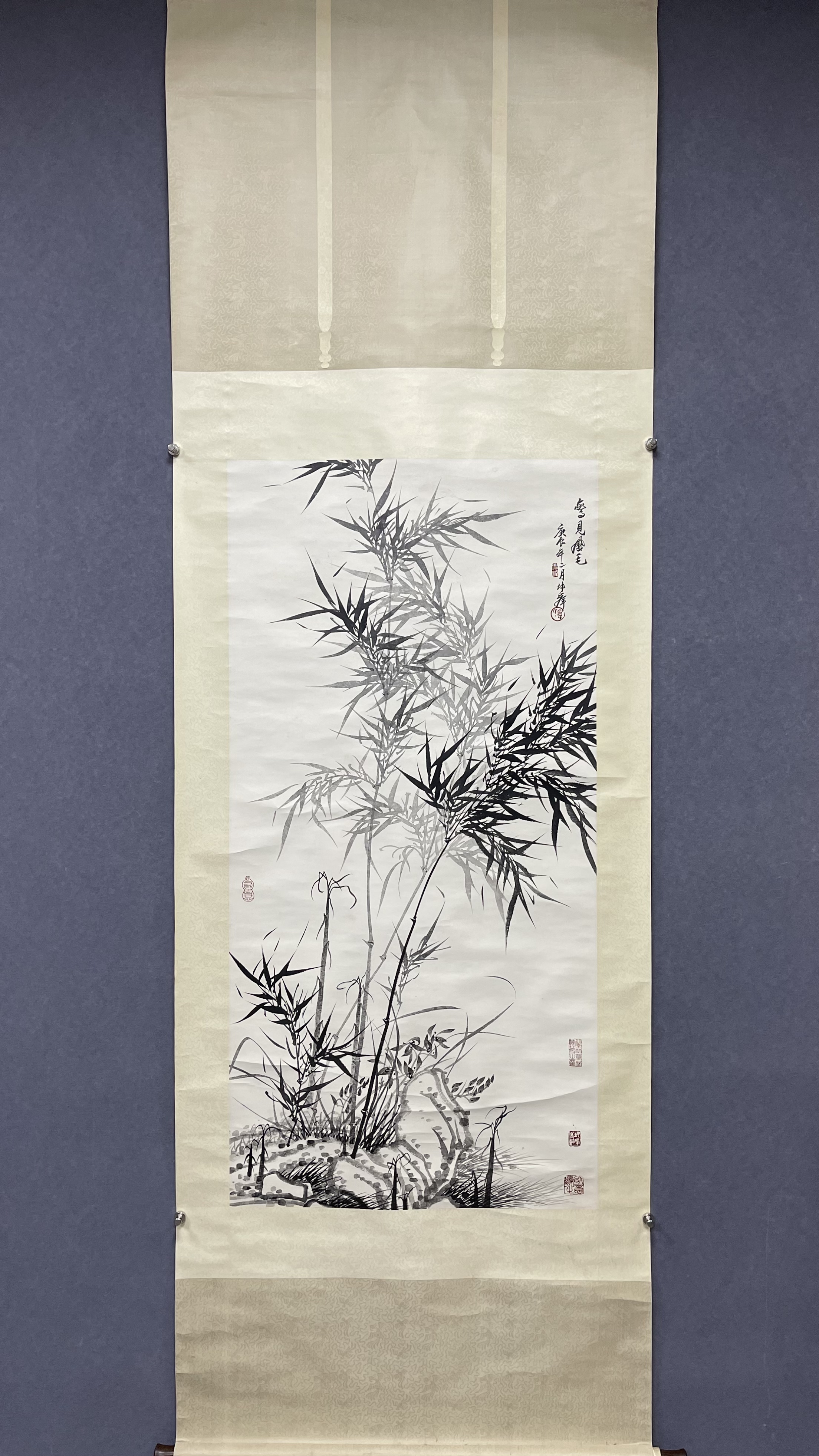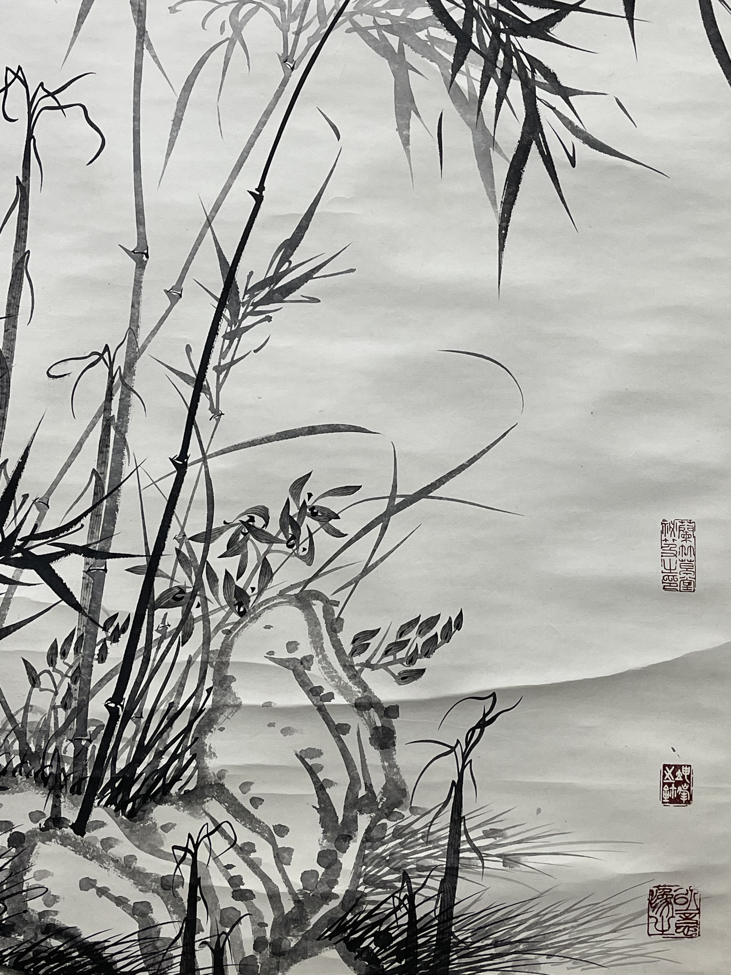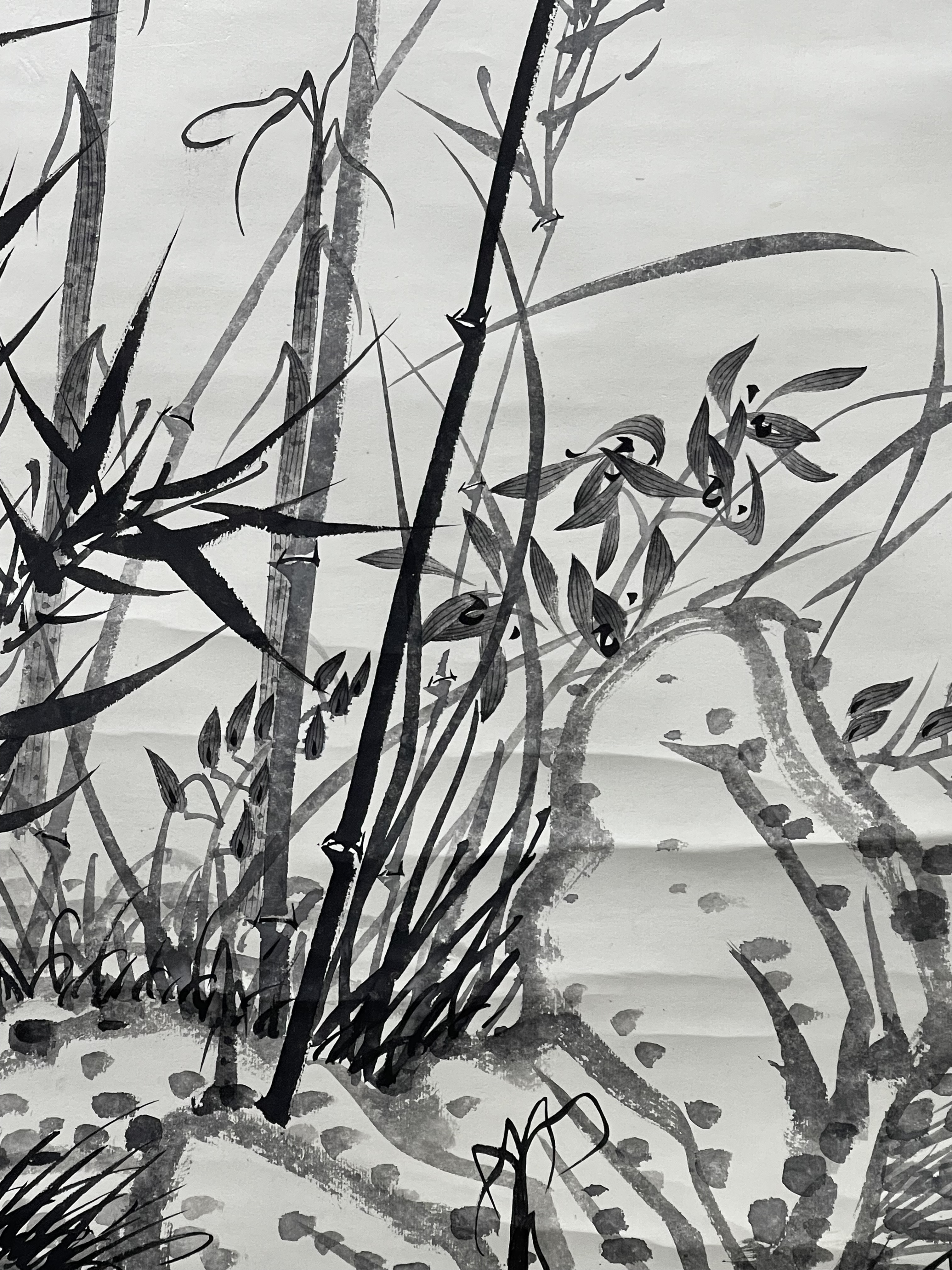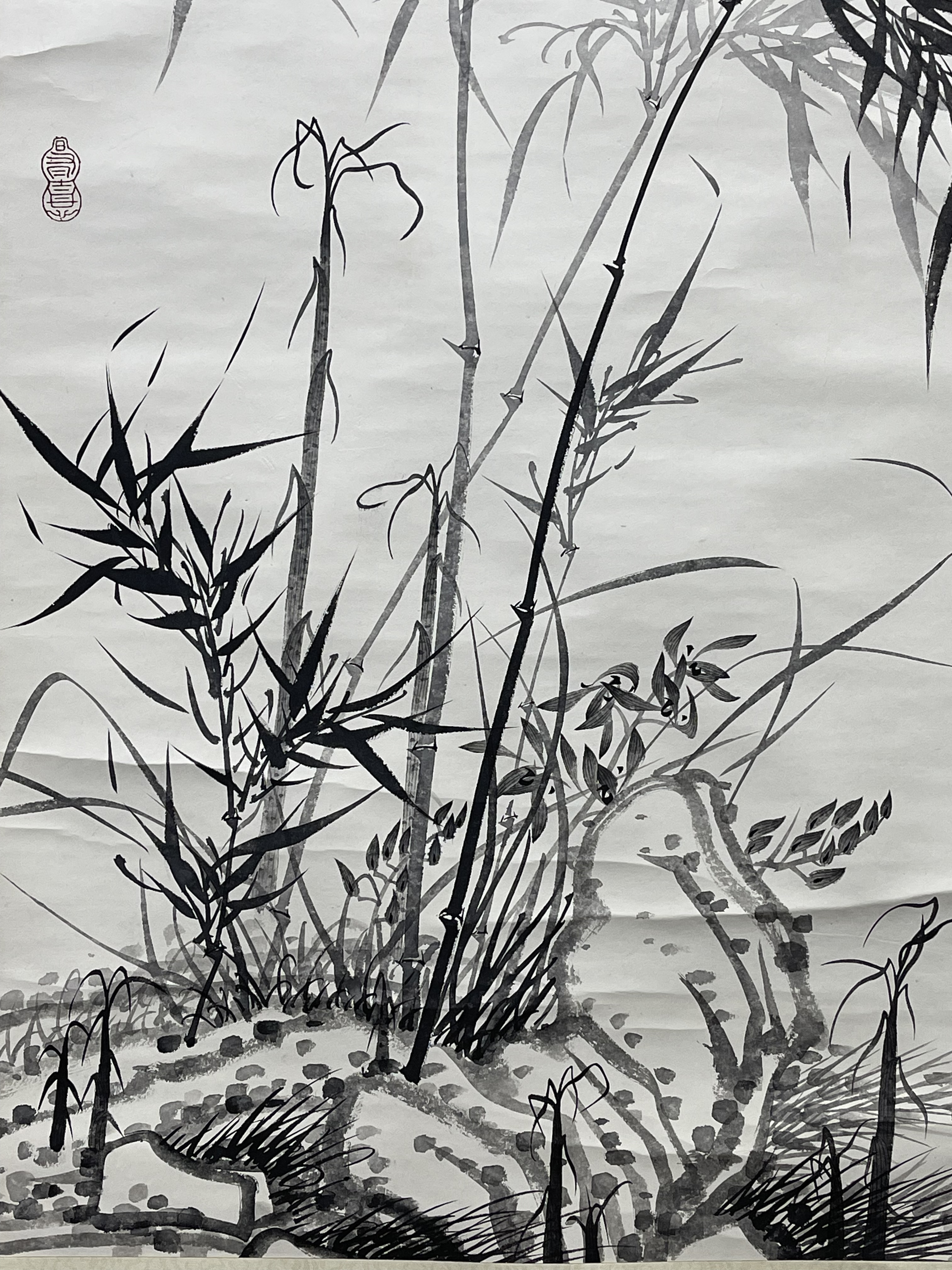 盧坤峰 竹石圖,構圖工整、筆墨生動流暢,個人風格特徵明顯,款識清晰,應為本人作品。