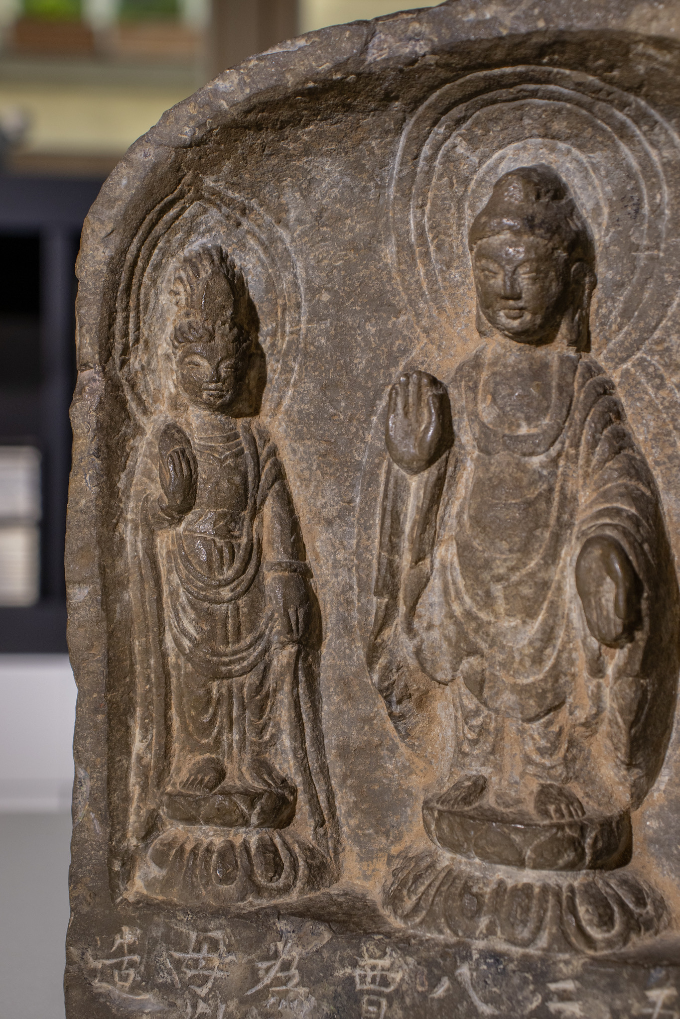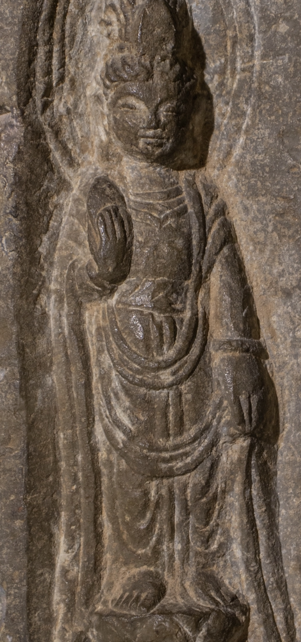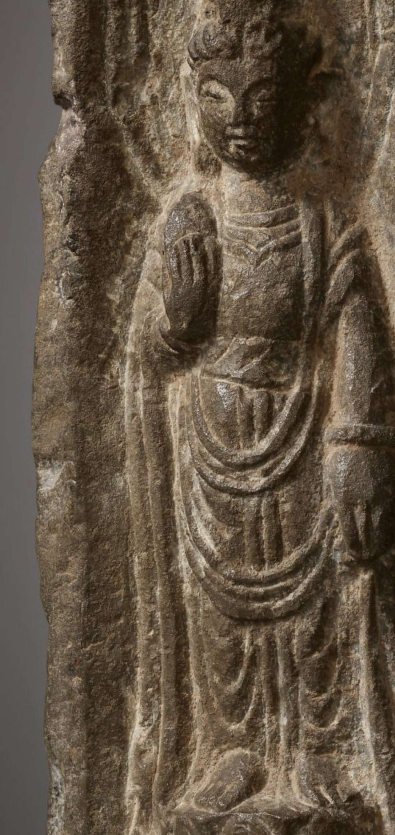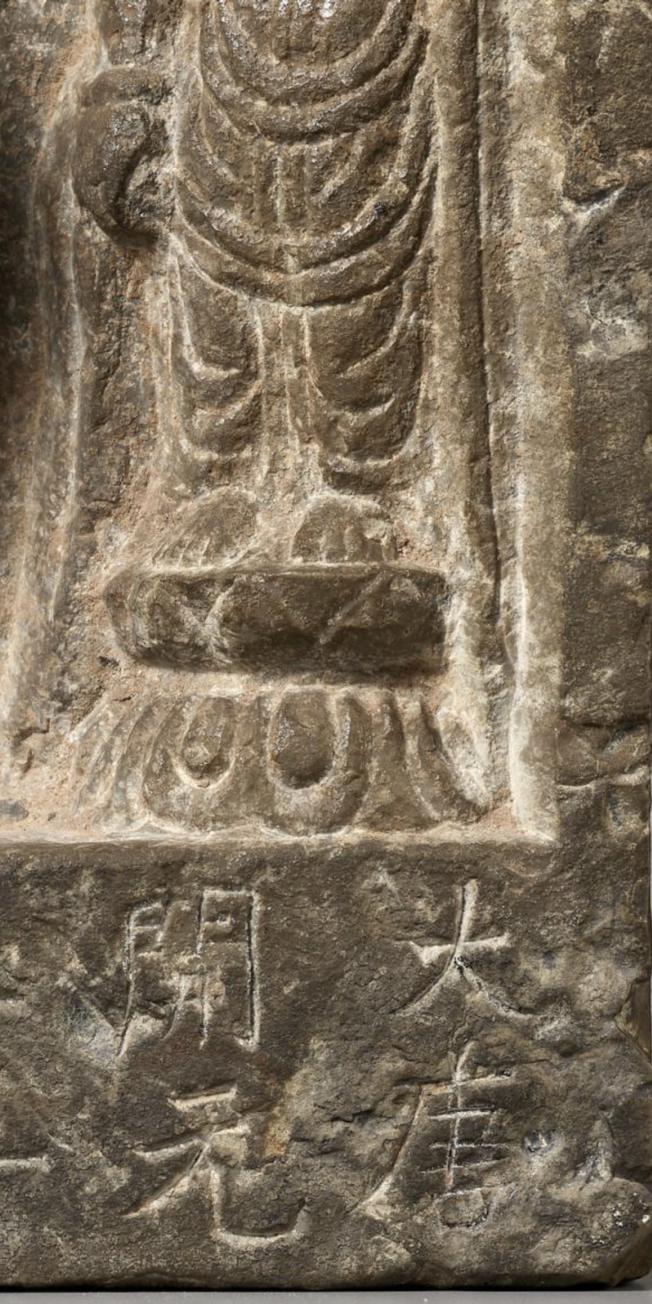 鉴真:唐:(民间石刻三佛像)、从石刻工艺上看,应该是民间工艺,石刻风化、皮壳正确。(大唐開元五年三月八日贾氏为父母敬造)。考证:字迹风化与佛造像一致。故鉴定为:唐代開元年间,民间石刻工艺佛造像。 鉴定师:于斌 鉴定於2022年10月3日。