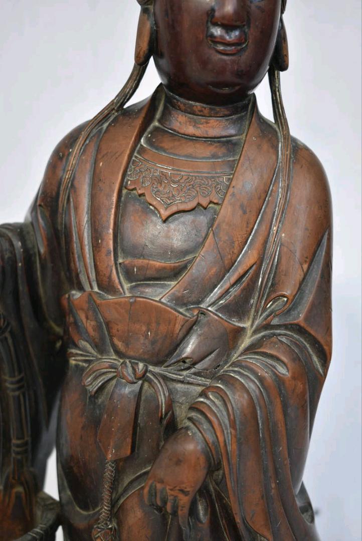 从图片看,服饰优美,人物比例协调,包浆自然,个人意见 看清代黄杨对观音。市场参考价2万左右