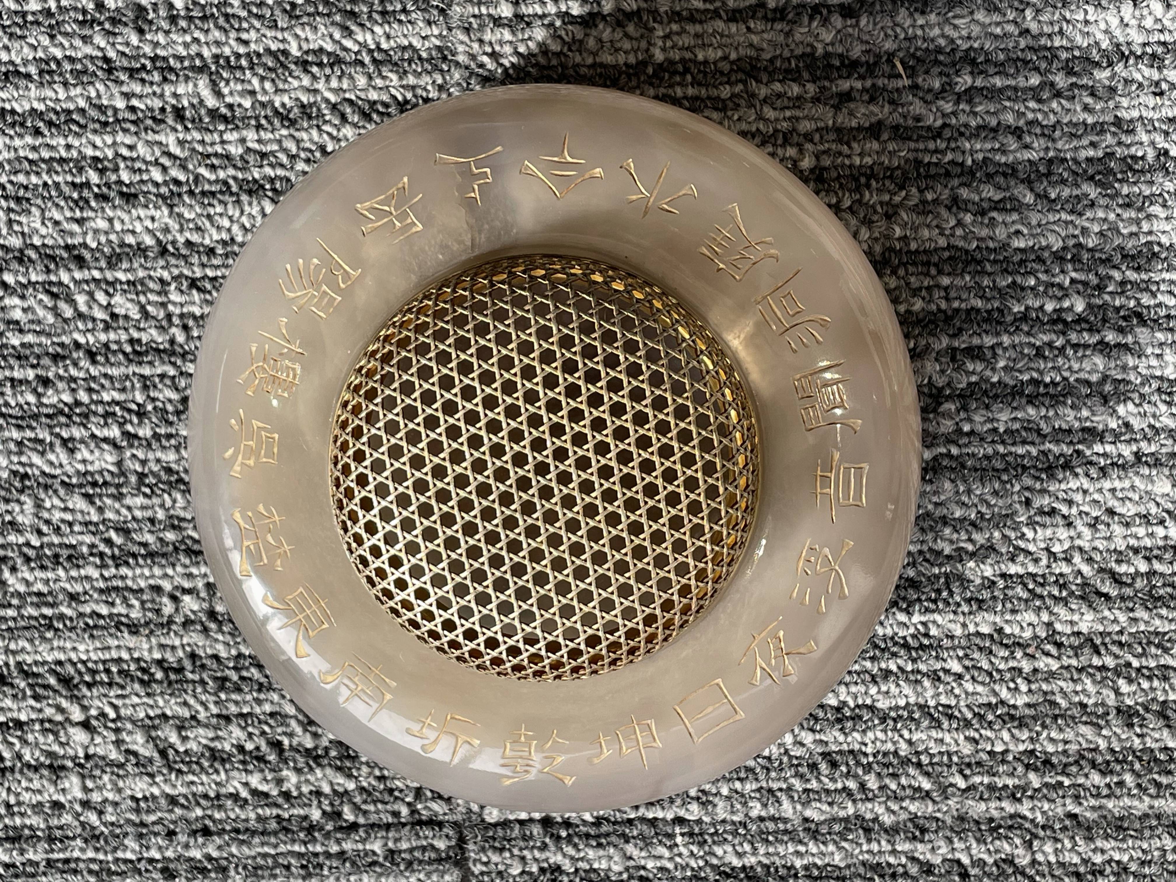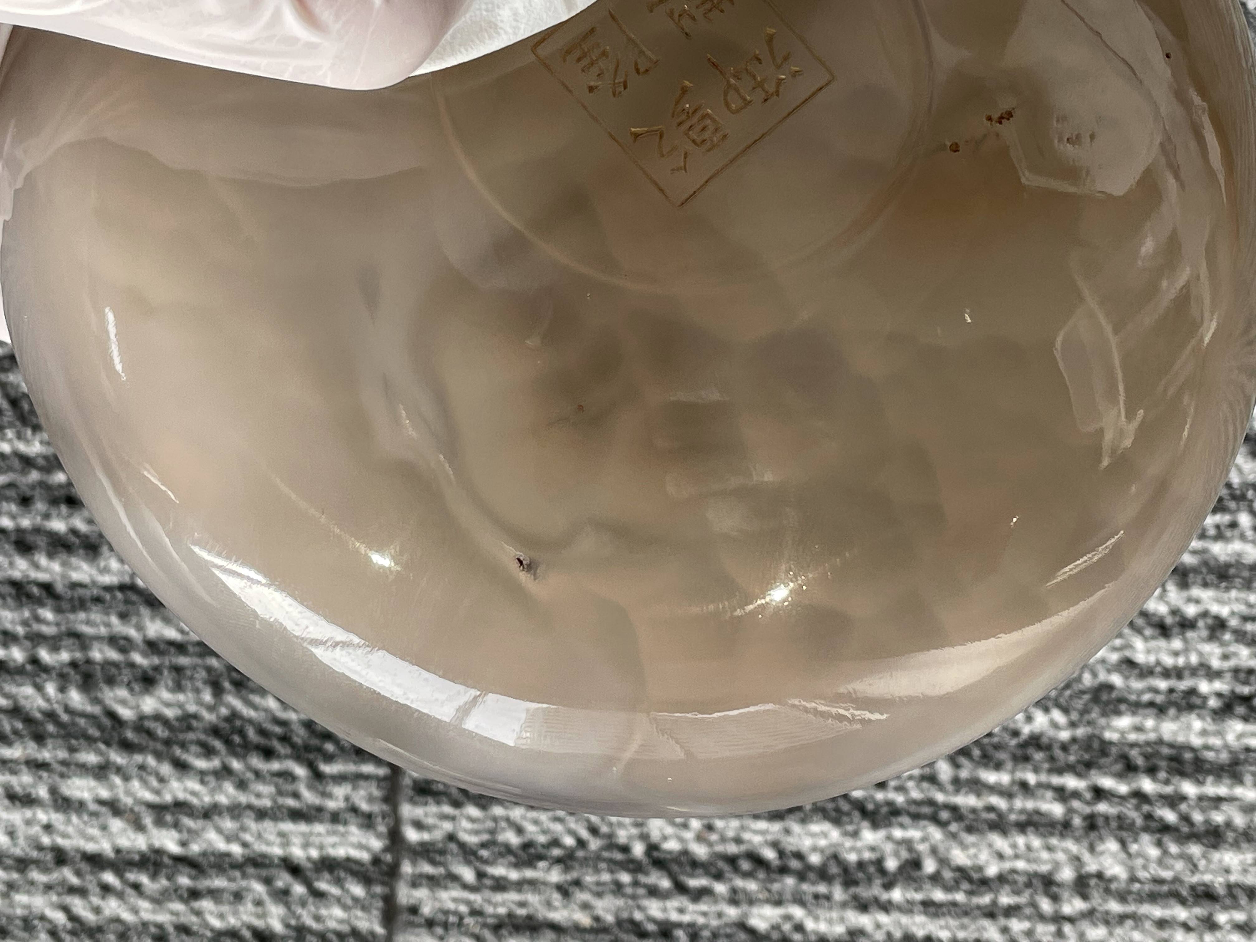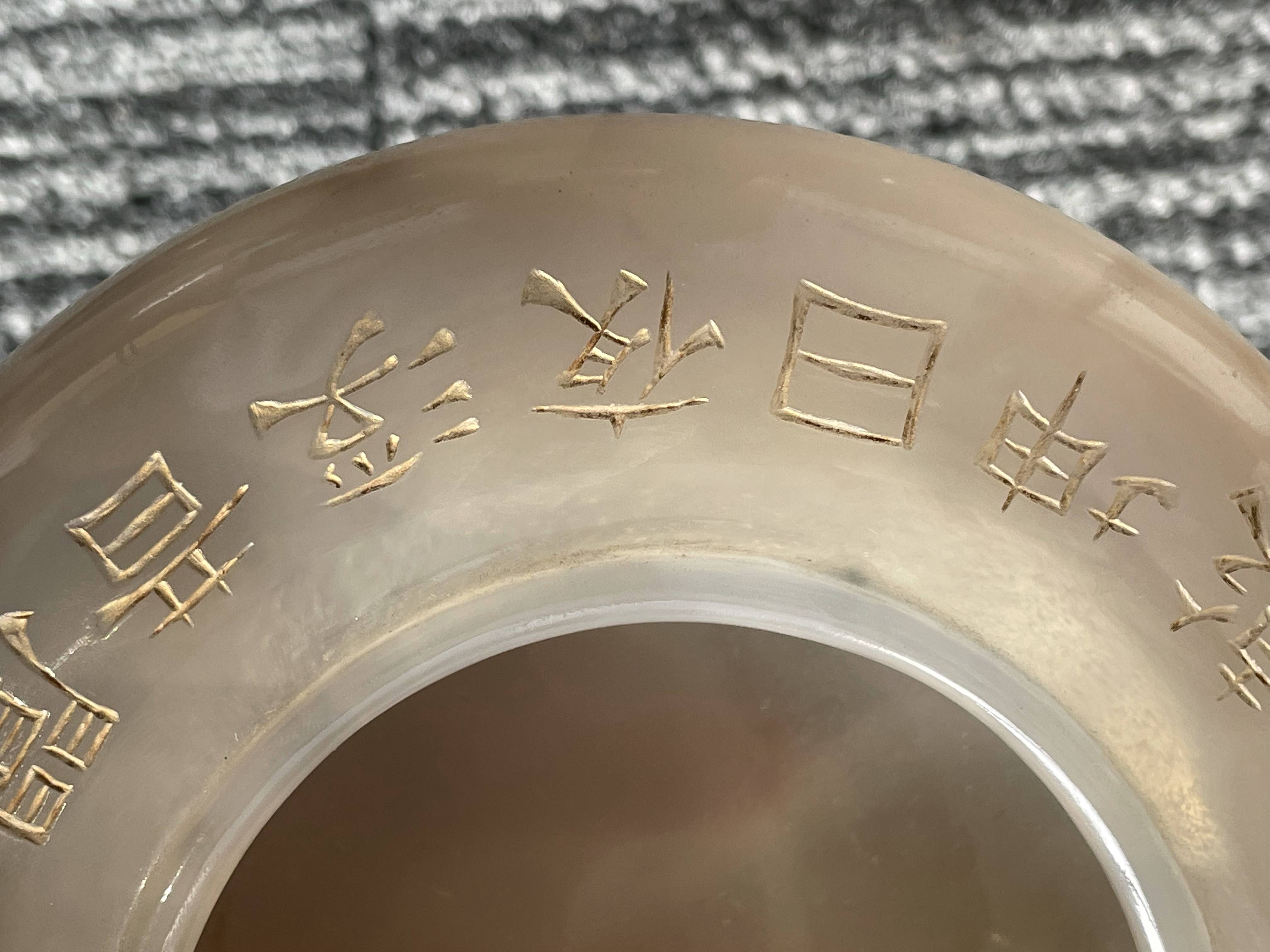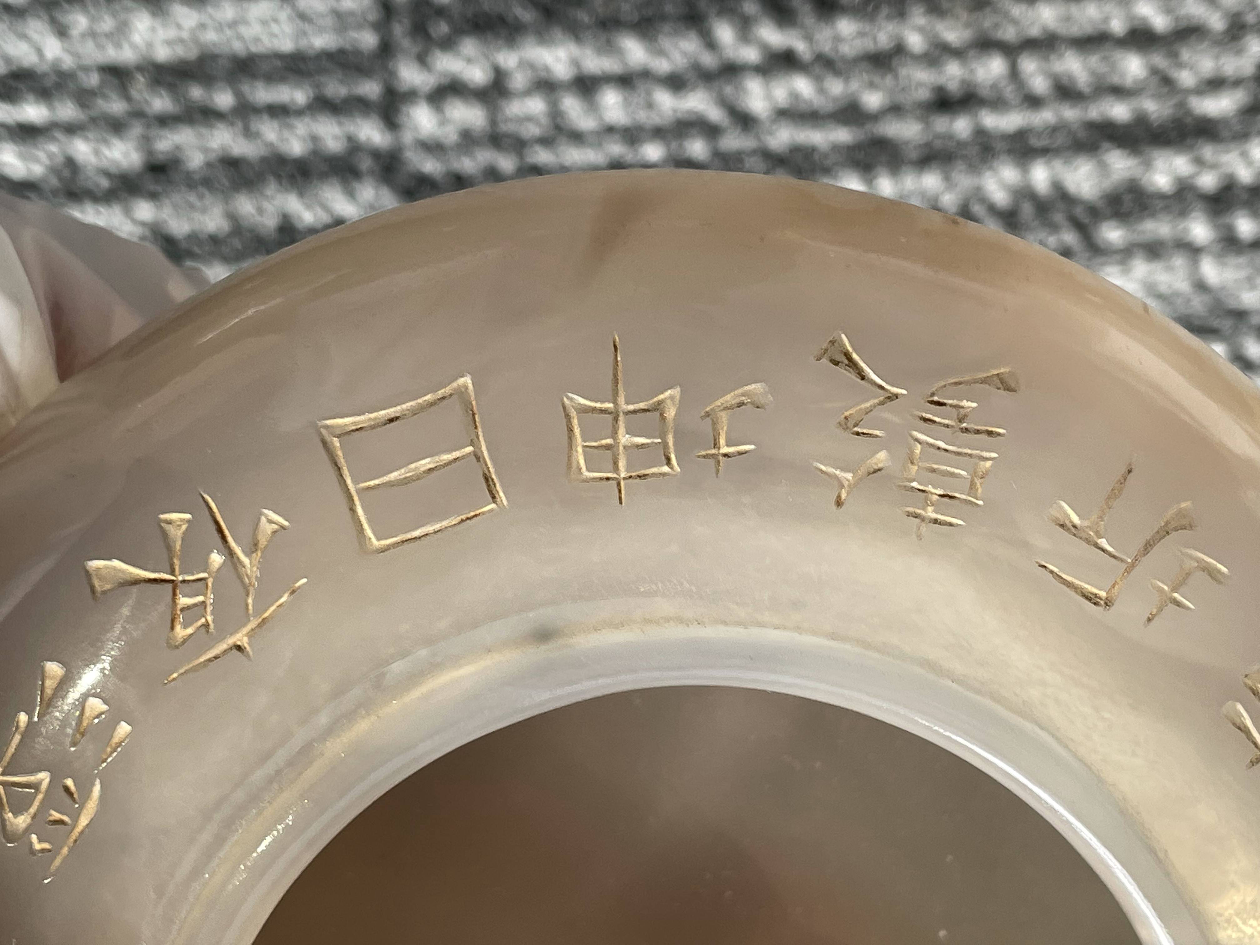 依据您提供的图片,这是一件玛瑙材质香炉,根据雕刻“乾隆御制”字体不是中国乾隆御制的字体,从玛瑙上面刻字看,手工篆刻,本人对日本文化不了解,从玛瑙整体光气看是有年份的器物,感谢您对我的信任和信任!