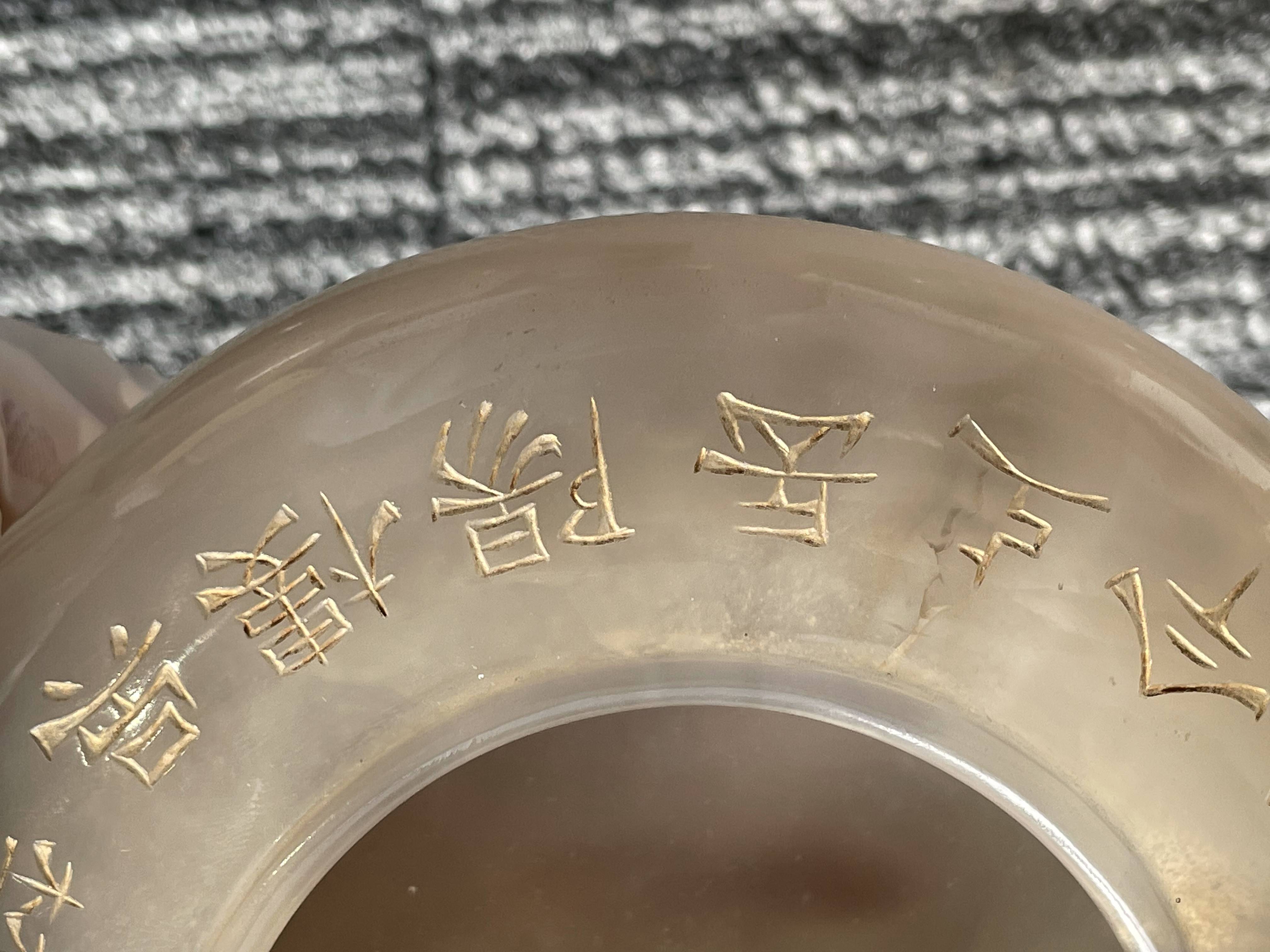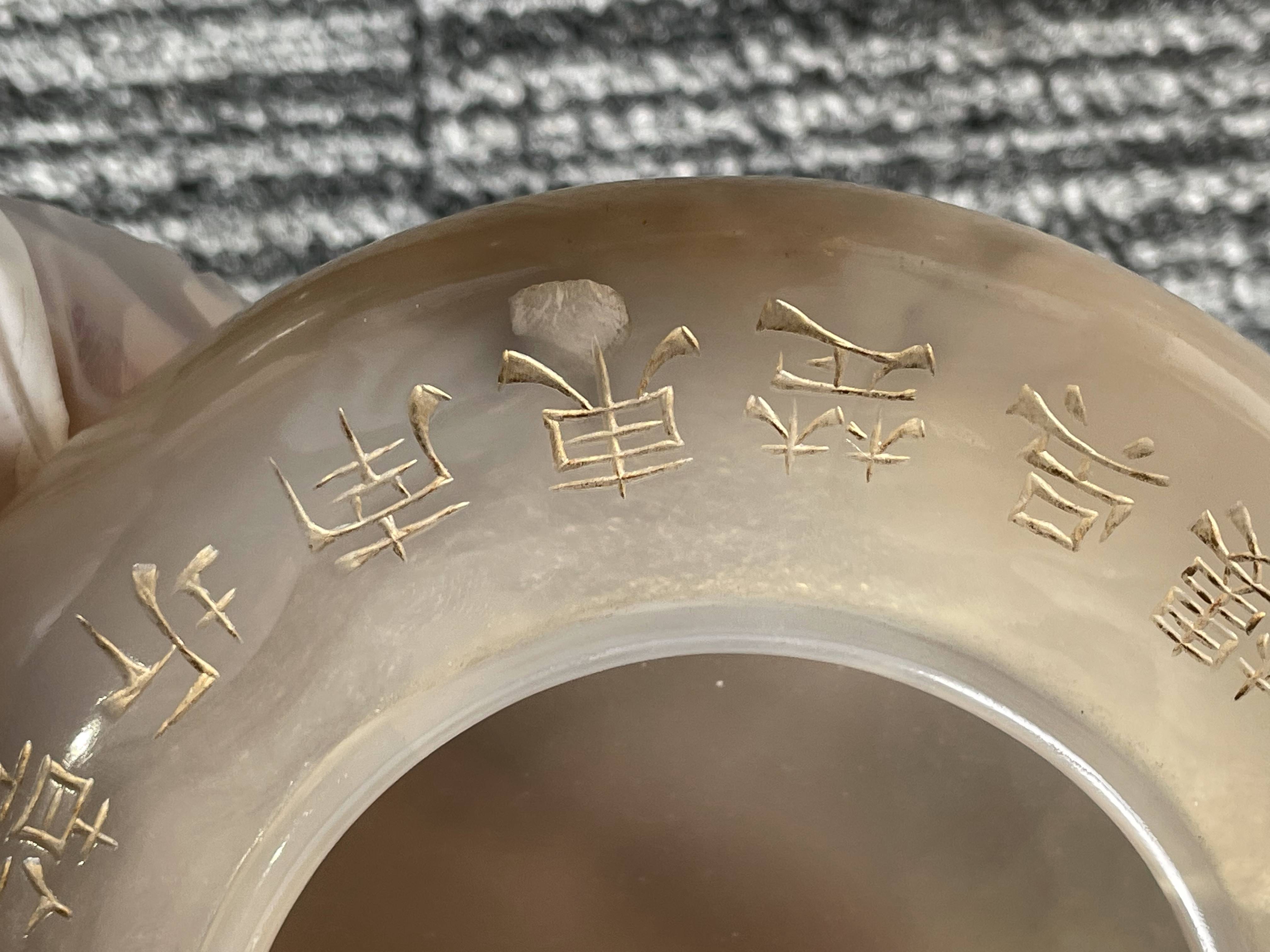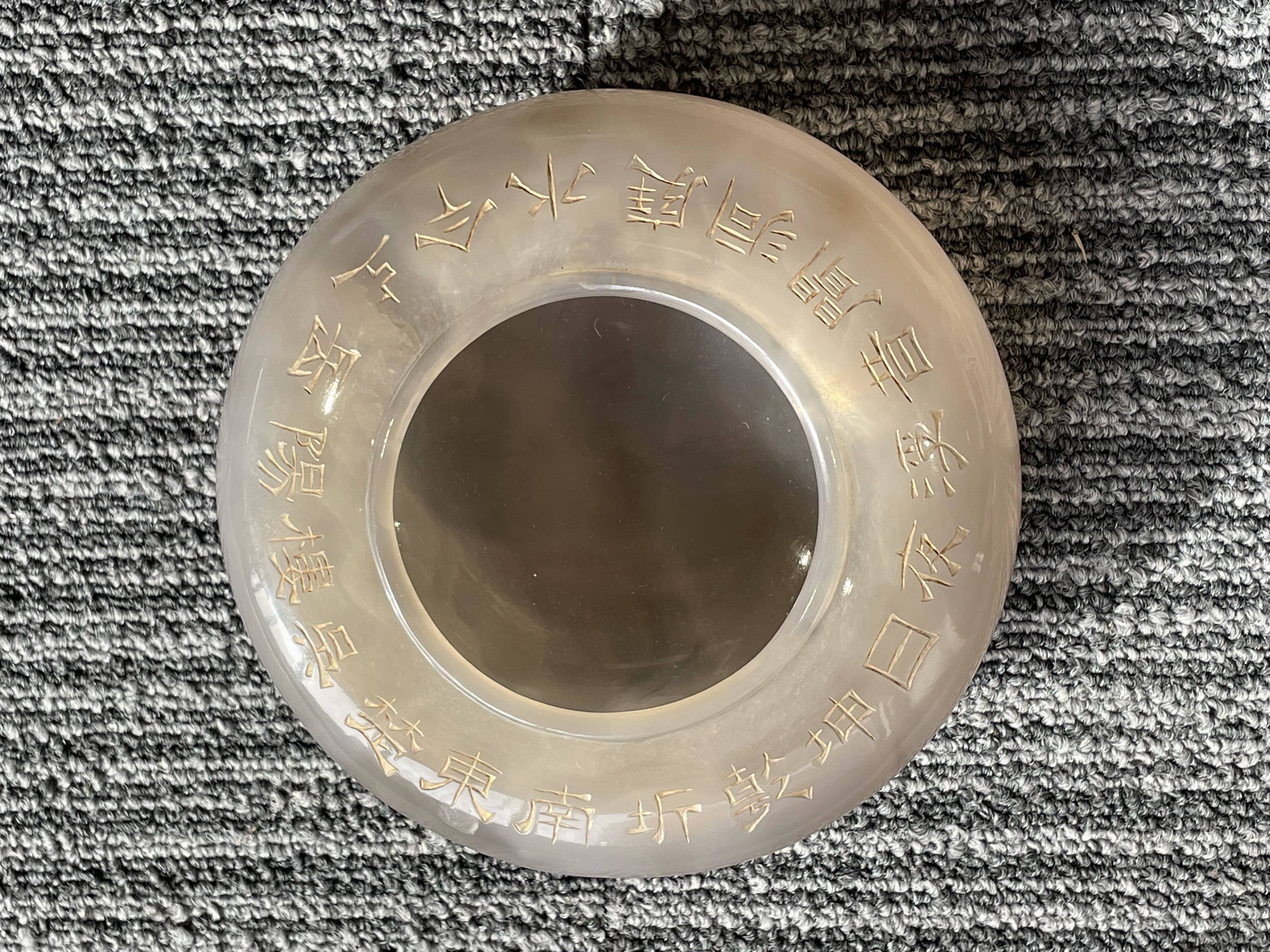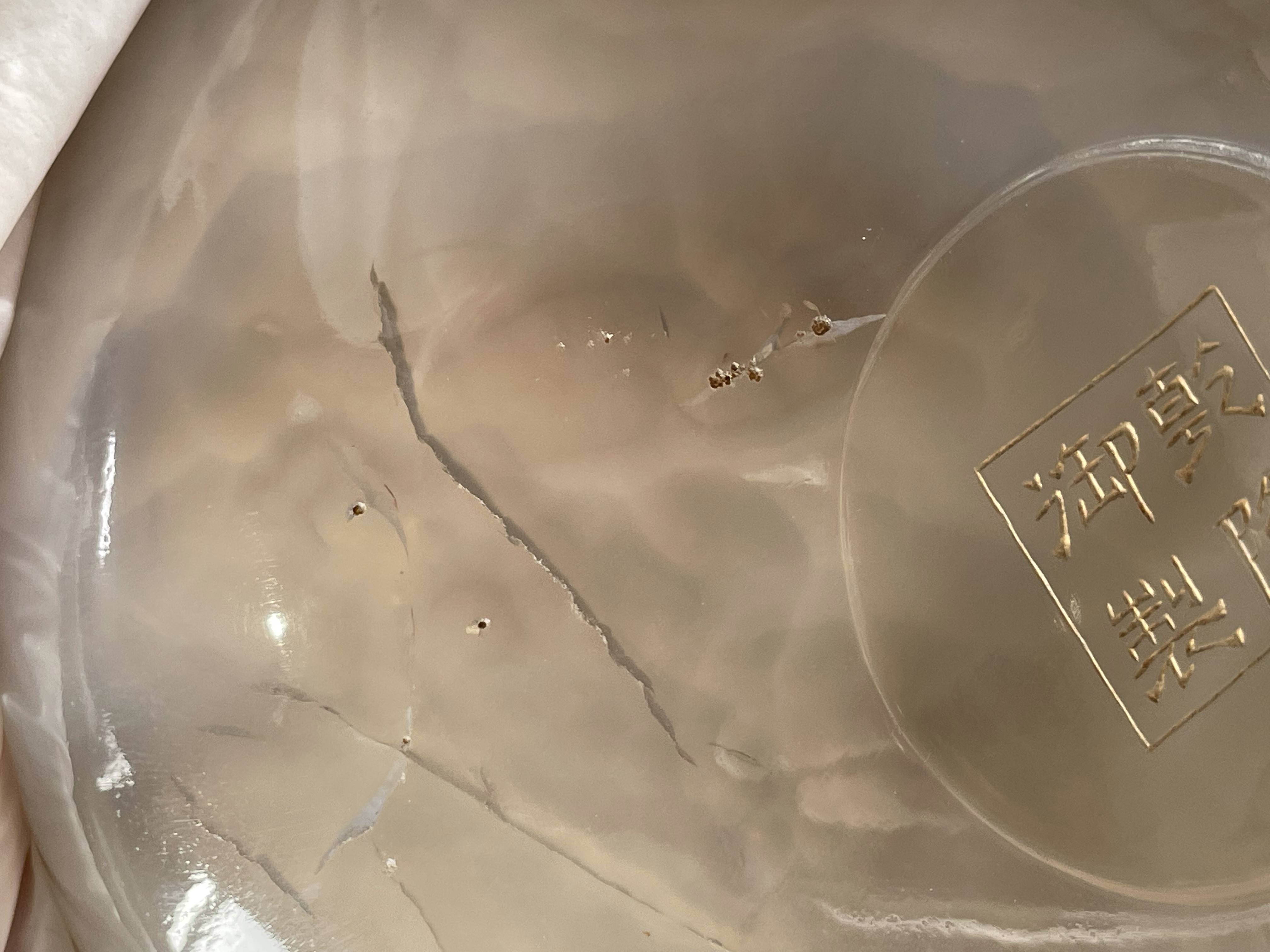 依据您提供的图片,这是一件玛瑙材质香炉,根据雕刻“乾隆御制”字体不是中国乾隆御制的字体,从玛瑙上面刻字看,手工篆刻,本人对日本文化不了解,从玛瑙整体光气看是有年份的器物,感谢您对我的信任和信任!