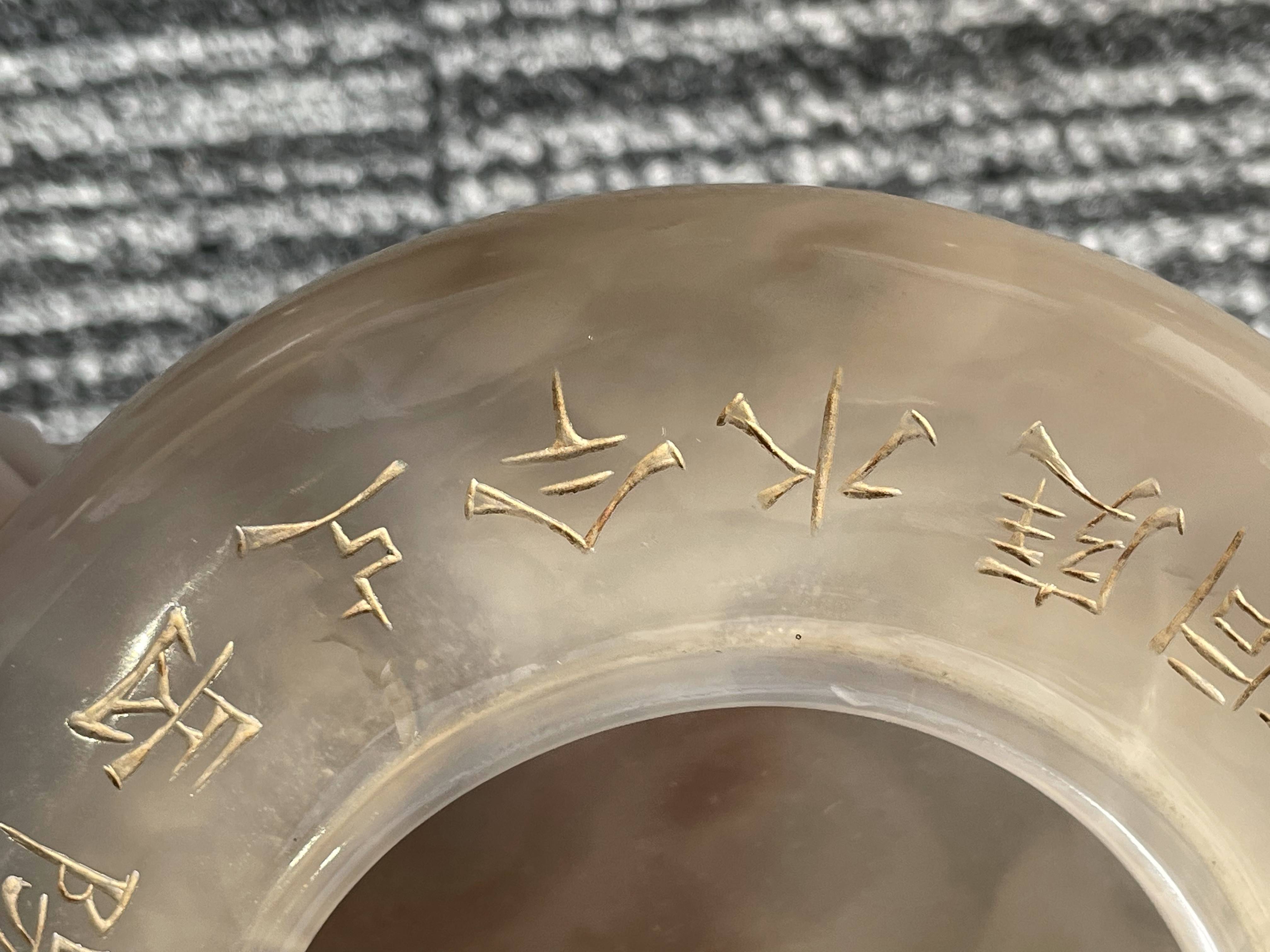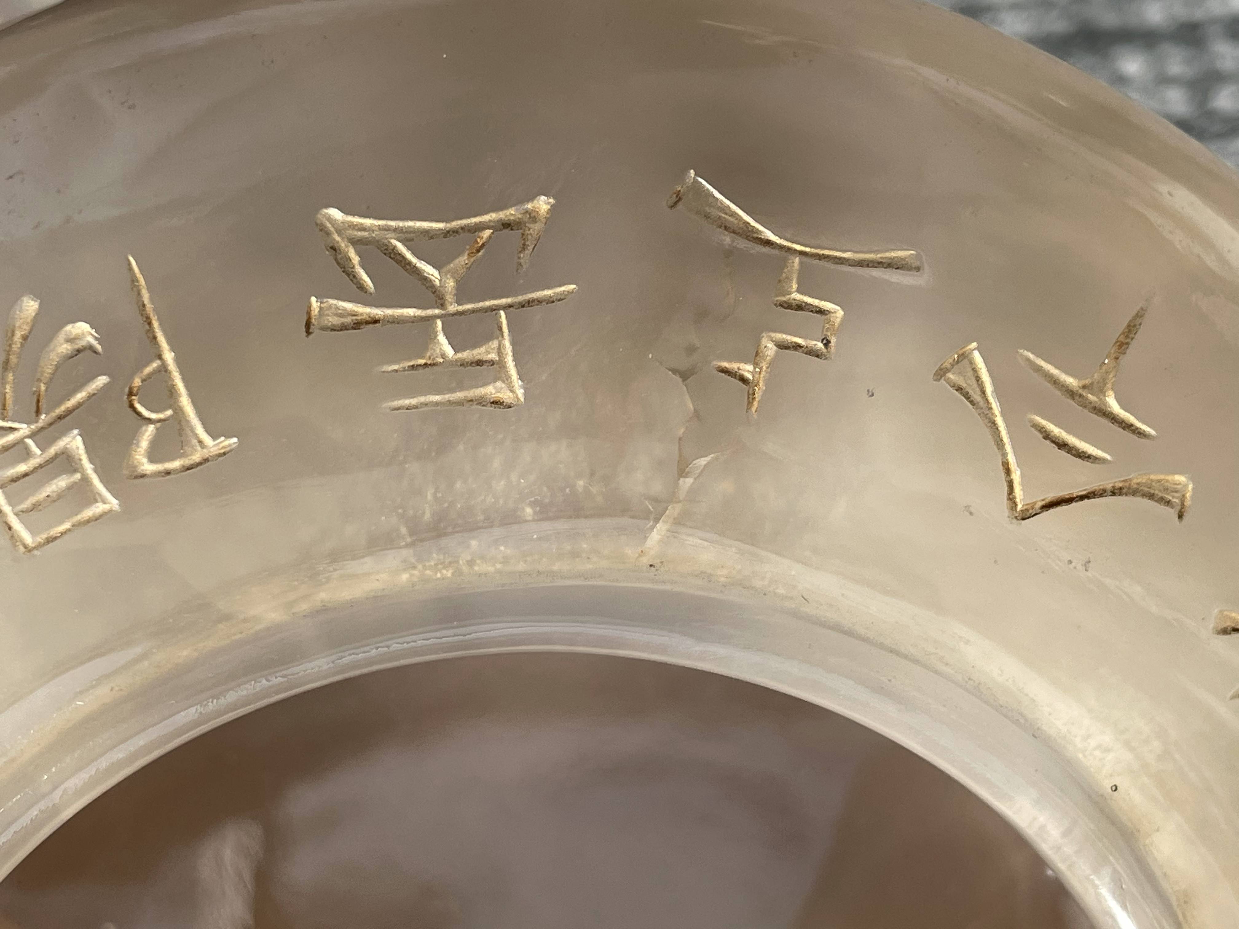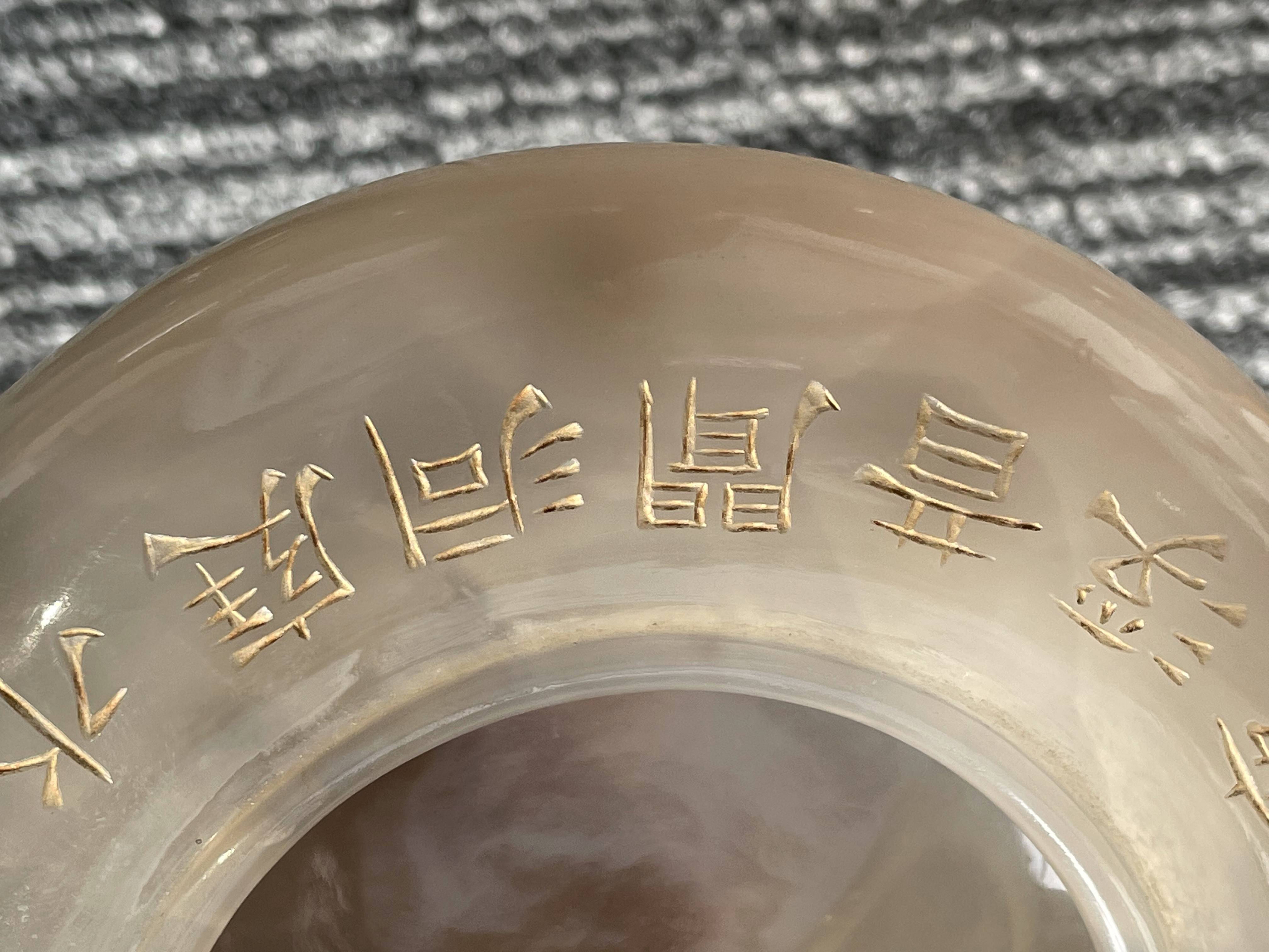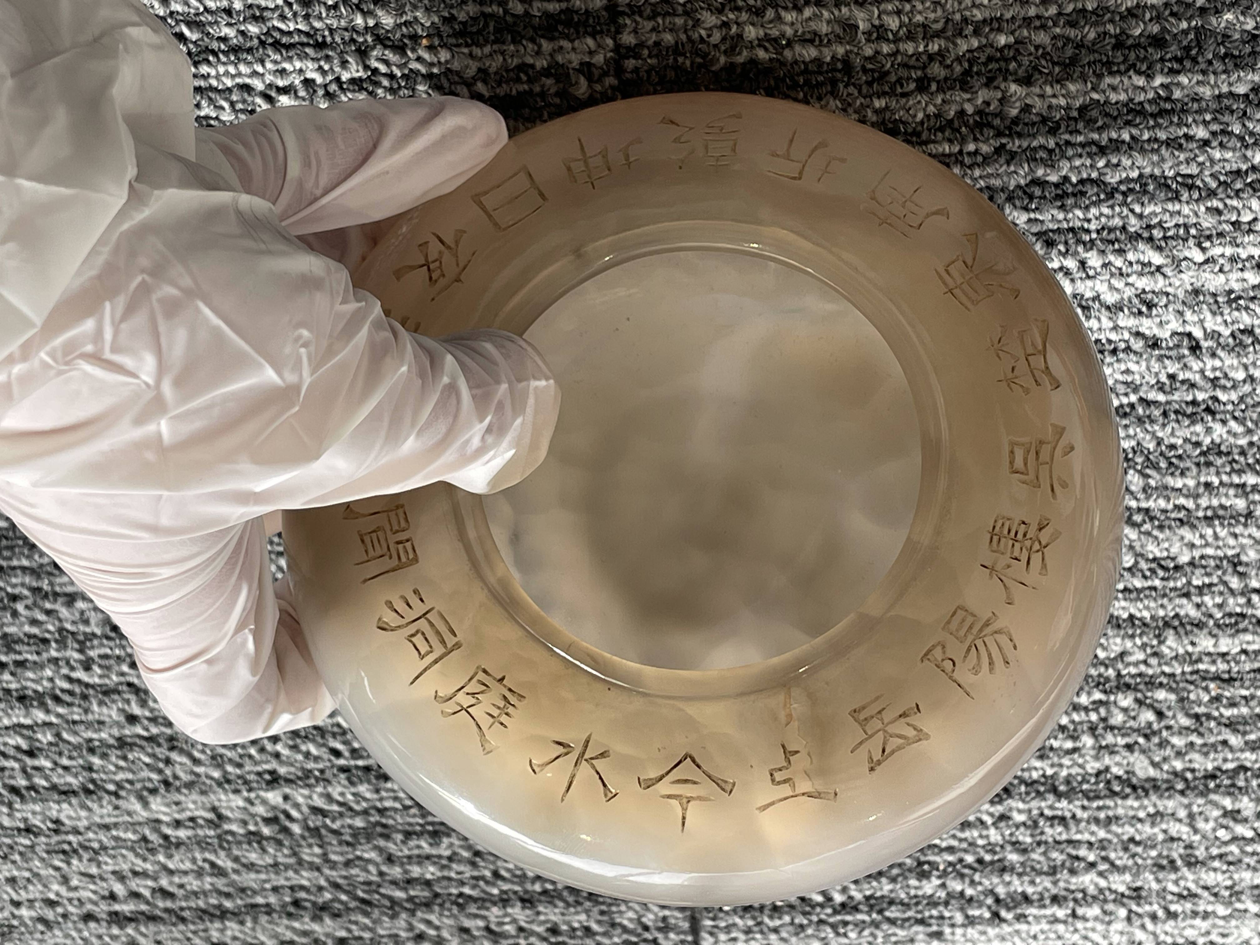 依据您提供的图片,这是一件玛瑙材质香炉,根据雕刻“乾隆御制”字体不是中国乾隆御制的字体,从玛瑙上面刻字看,手工篆刻,本人对日本文化不了解,从玛瑙整体光气看是有年份的器物,感谢您对我的信任和信任!