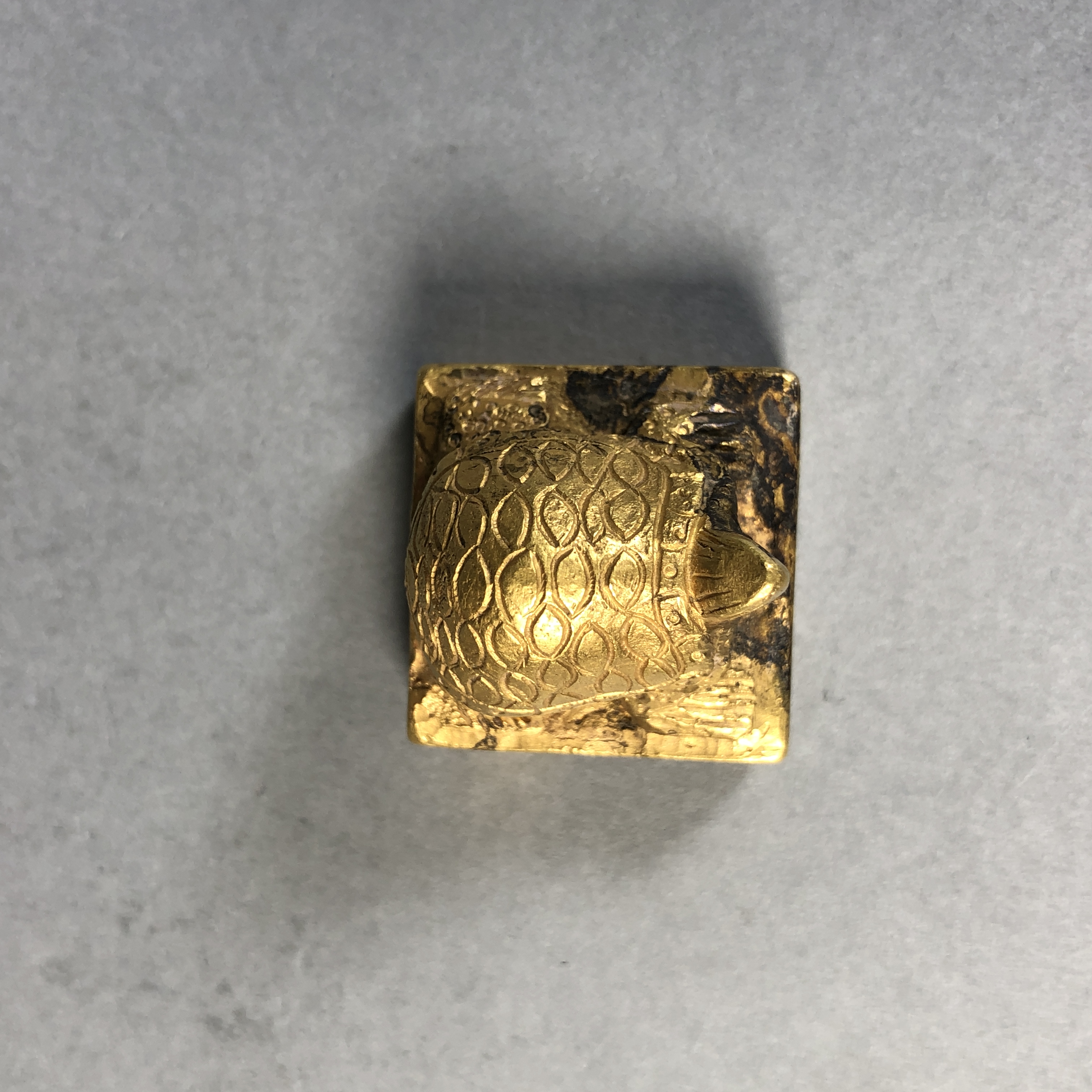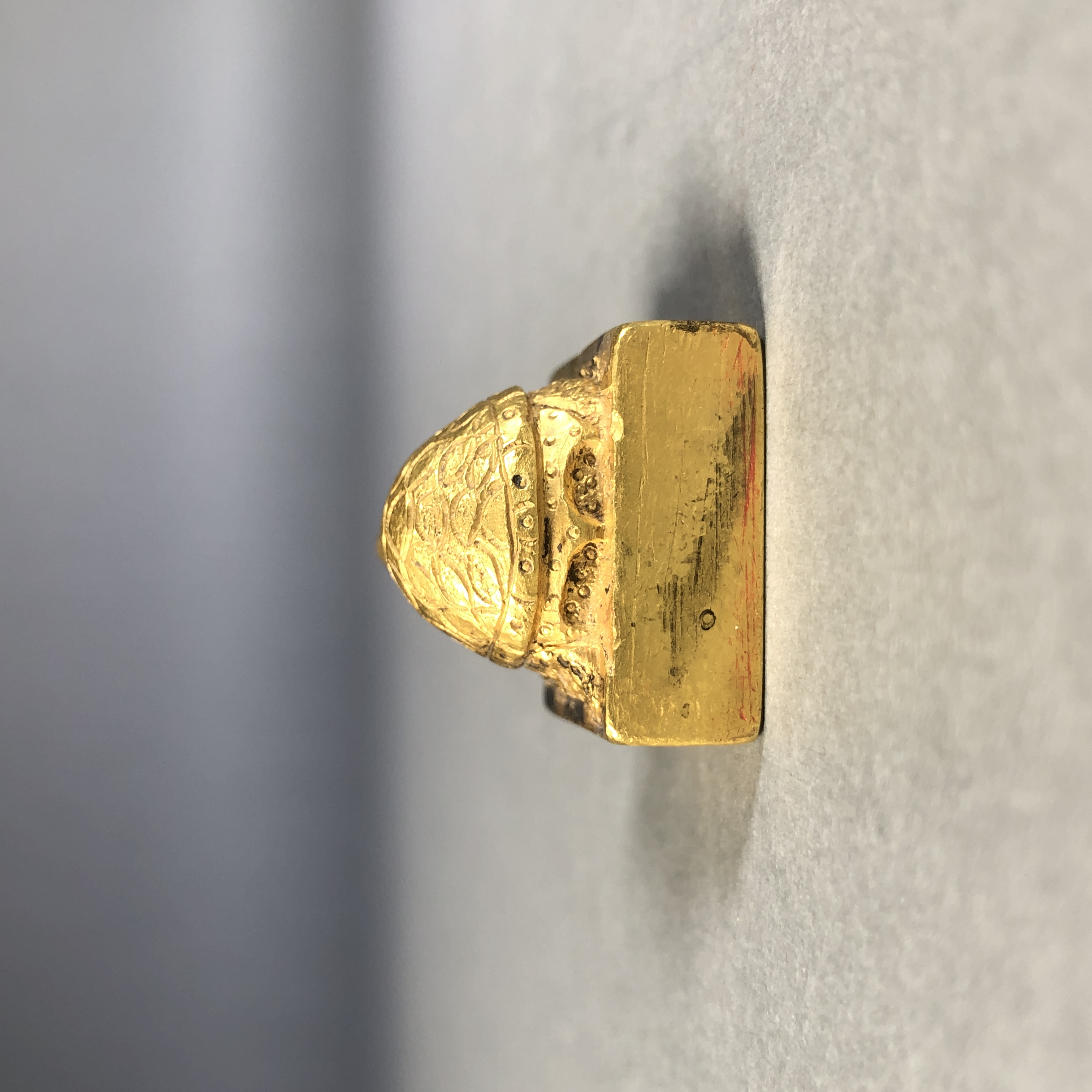 藏友您好!见图,此金印手工雕刻制作,工艺古拙,神韵俱佳,皮壳包浆磨损氧化自然,符合古代特征,应该为昭恩侯金印真品,感谢!