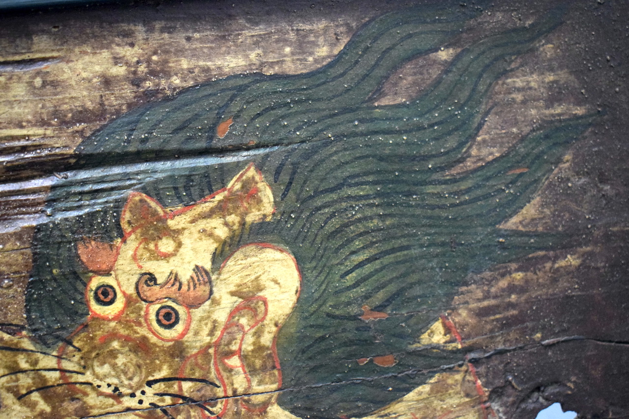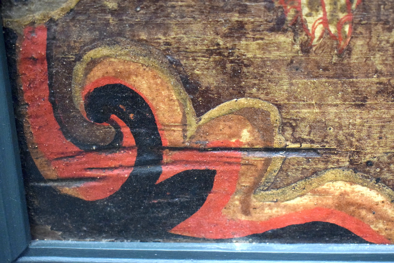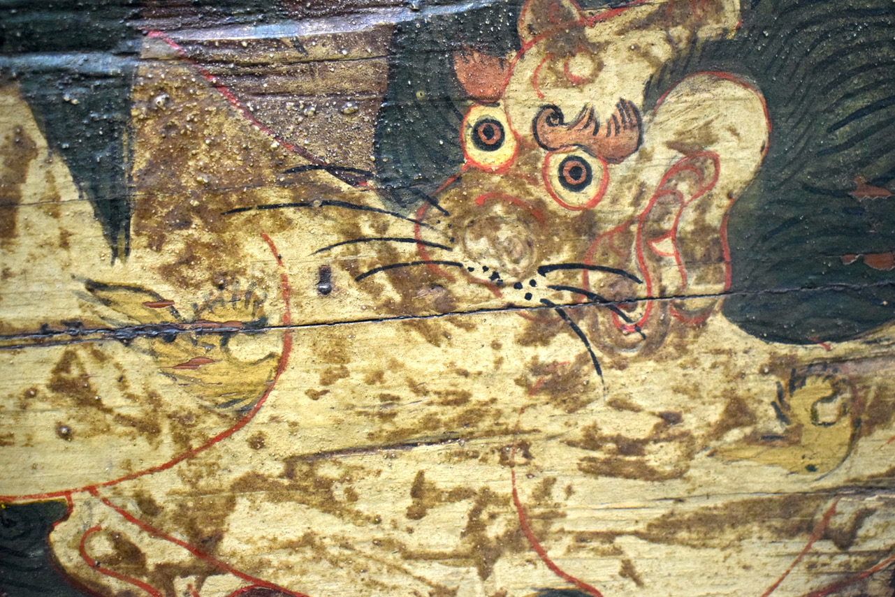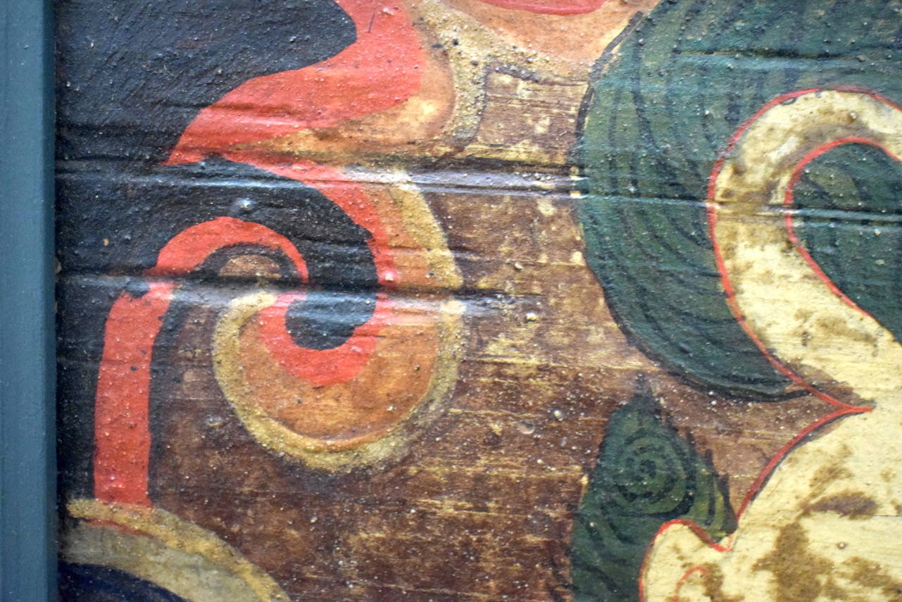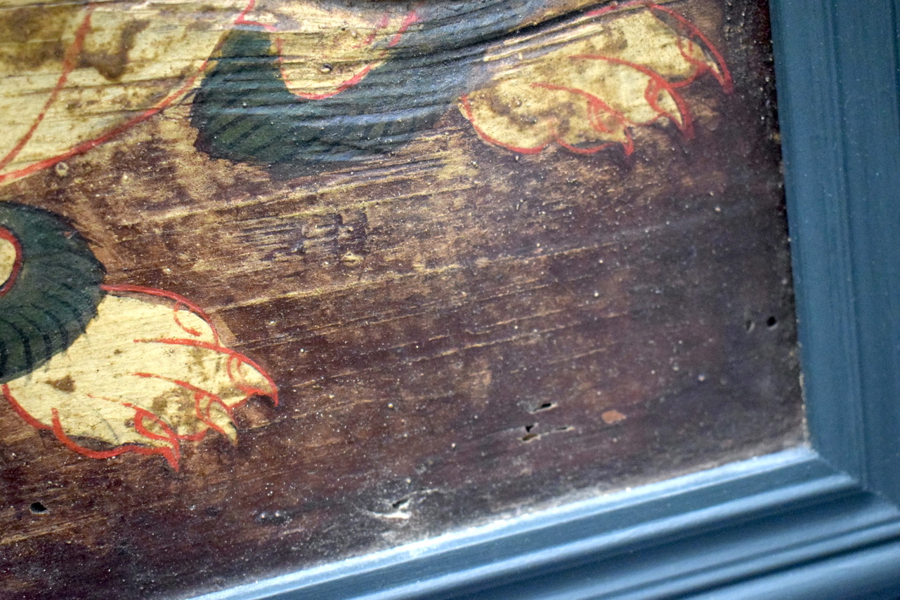 清代油彩漆画挂屏,油彩鲜艳,翼龙凶猛,清代时为建筑上镶嵌用,后人改做挂屏装饰,经过百年后品相依旧很好,是值得收藏观赏的一件藏品。