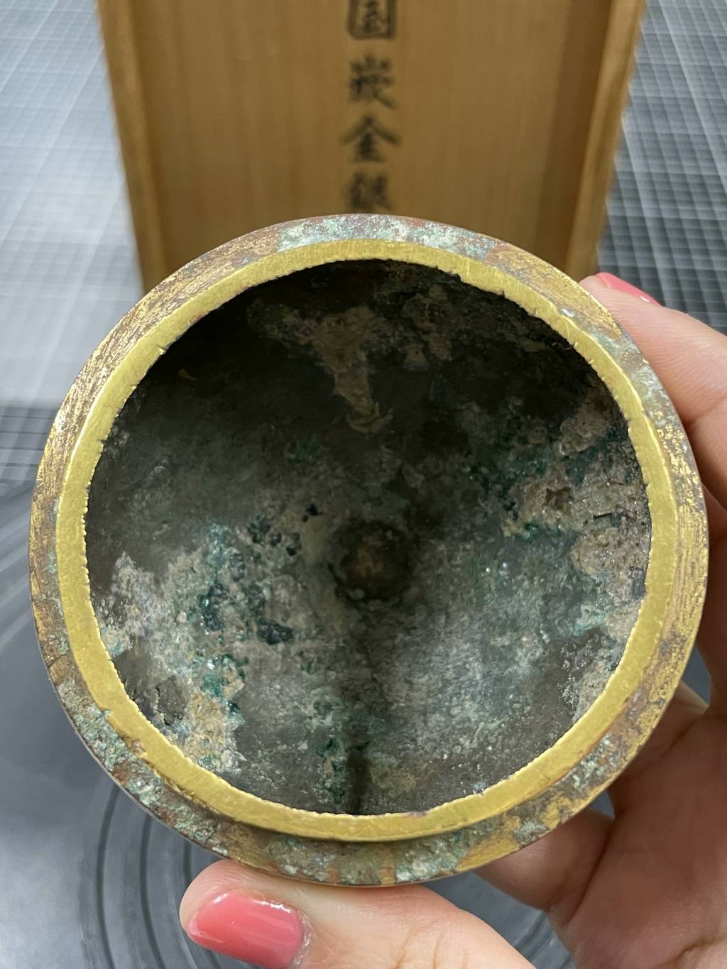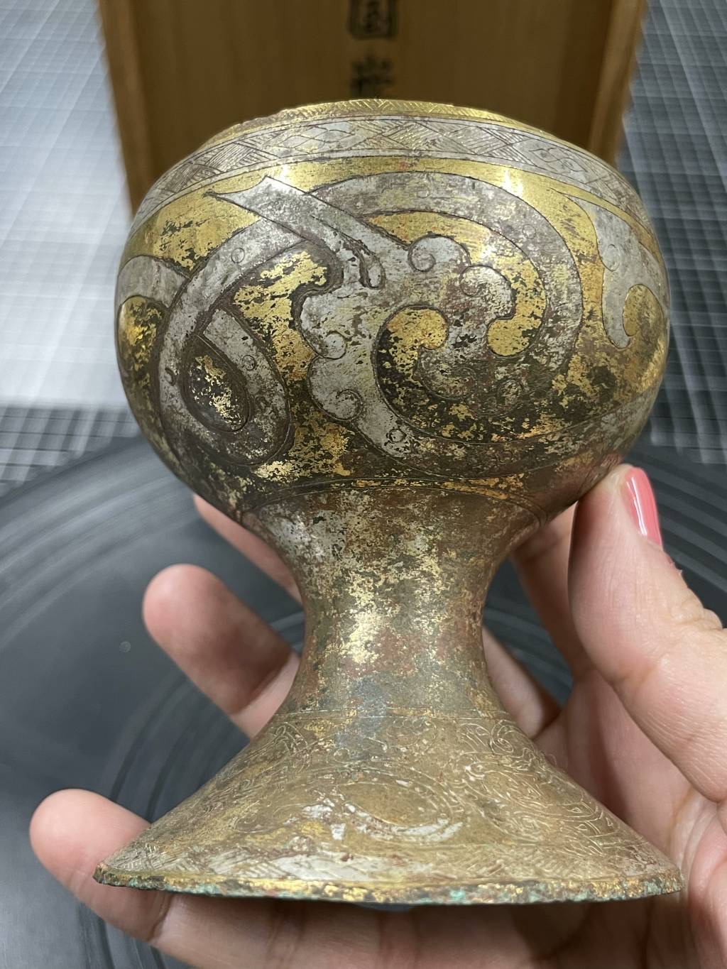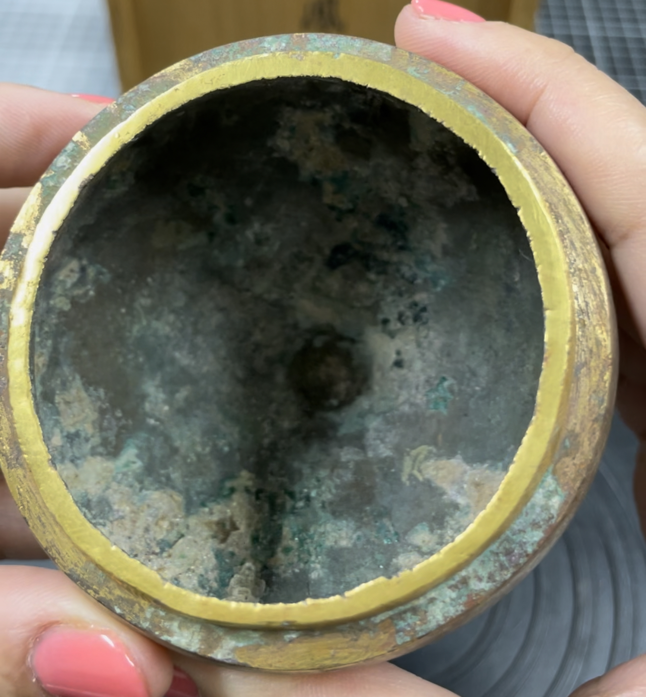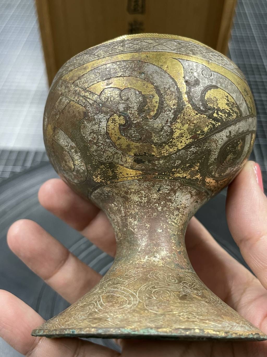 藏友好,这件器物一眼看上去是很舒服的古代艺术品,虽然表面没有锈蚀,但工艺是非常传统的古代艺术,符合西汉时期的工艺、艺术风格,干净是清理的结果。但从底部和盖内的原始锈蚀状态来看是原生态的土壤环境生成的结果,是当下仿品做不像的自然锈蚀。你所说的错金错银是错误的,仔细看其实是鎏金鎏银,和错金错银是两个不同的概念和结果。一件器物上同时鎏金和鎏银是比较难得,所以这是件不错的古代艺术品,值得收藏。以上是我个人观点、仅做参考。