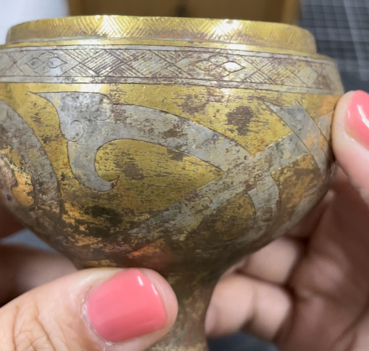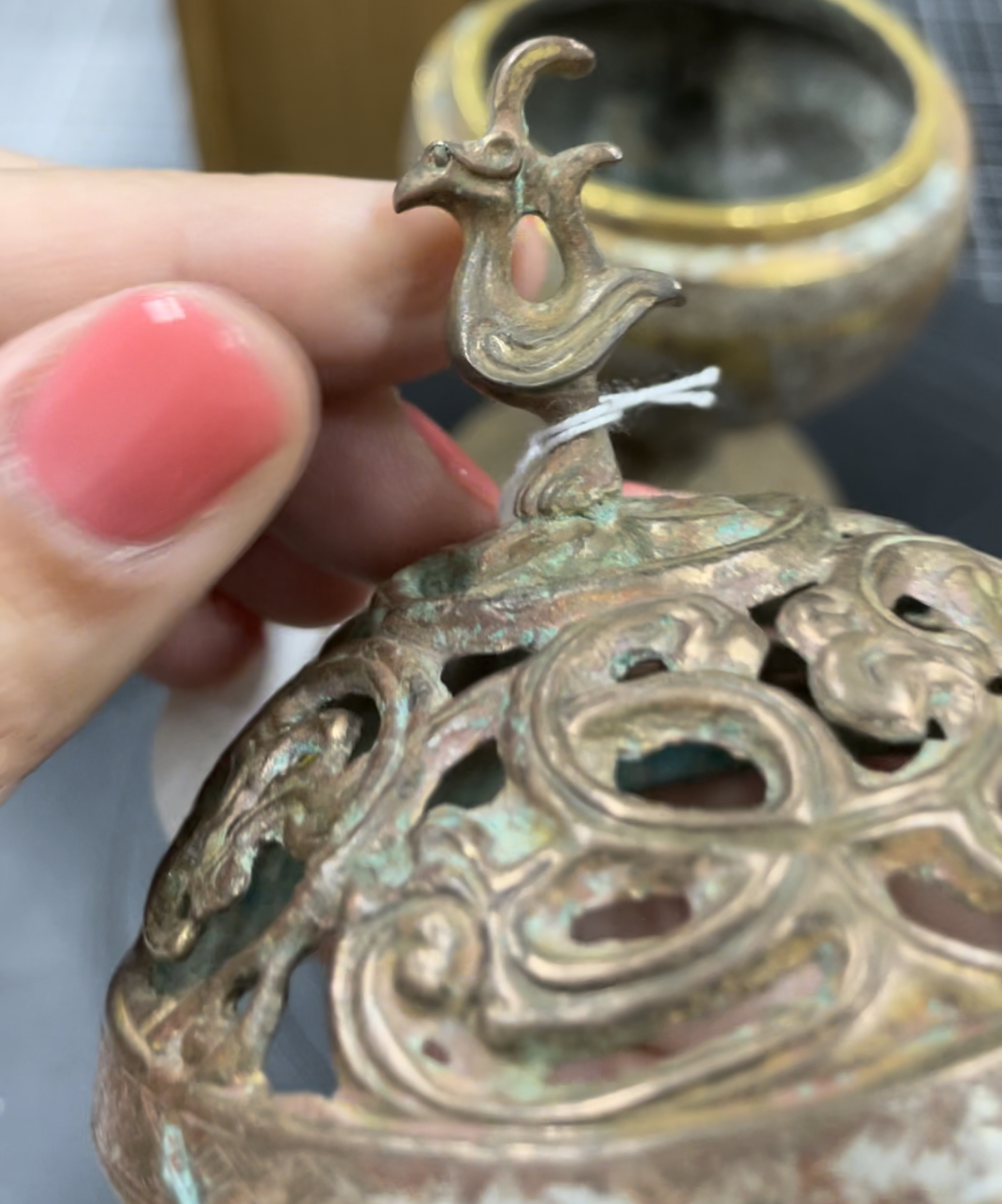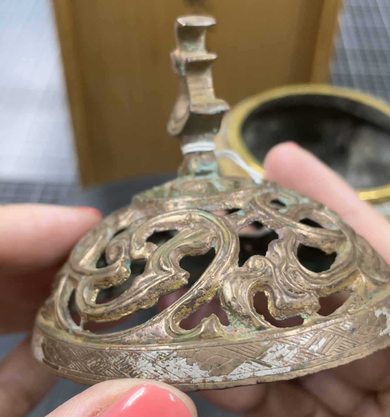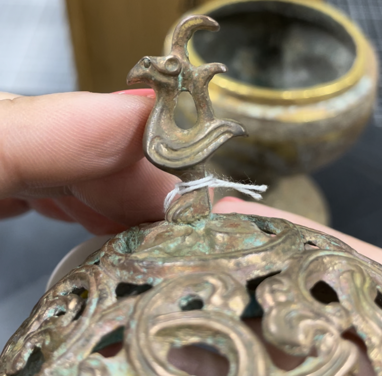 藏友好,这件器物一眼看上去是很舒服的古代艺术品,虽然表面没有锈蚀,但工艺是非常传统的古代艺术,符合西汉时期的工艺、艺术风格,干净是清理的结果。但从底部和盖内的原始锈蚀状态来看是原生态的土壤环境生成的结果,是当下仿品做不像的自然锈蚀。你所说的错金错银是错误的,仔细看其实是鎏金鎏银,和错金错银是两个不同的概念和结果。一件器物上同时鎏金和鎏银是比较难得,所以这是件不错的古代艺术品,值得收藏。以上是我个人观点、仅做参考。