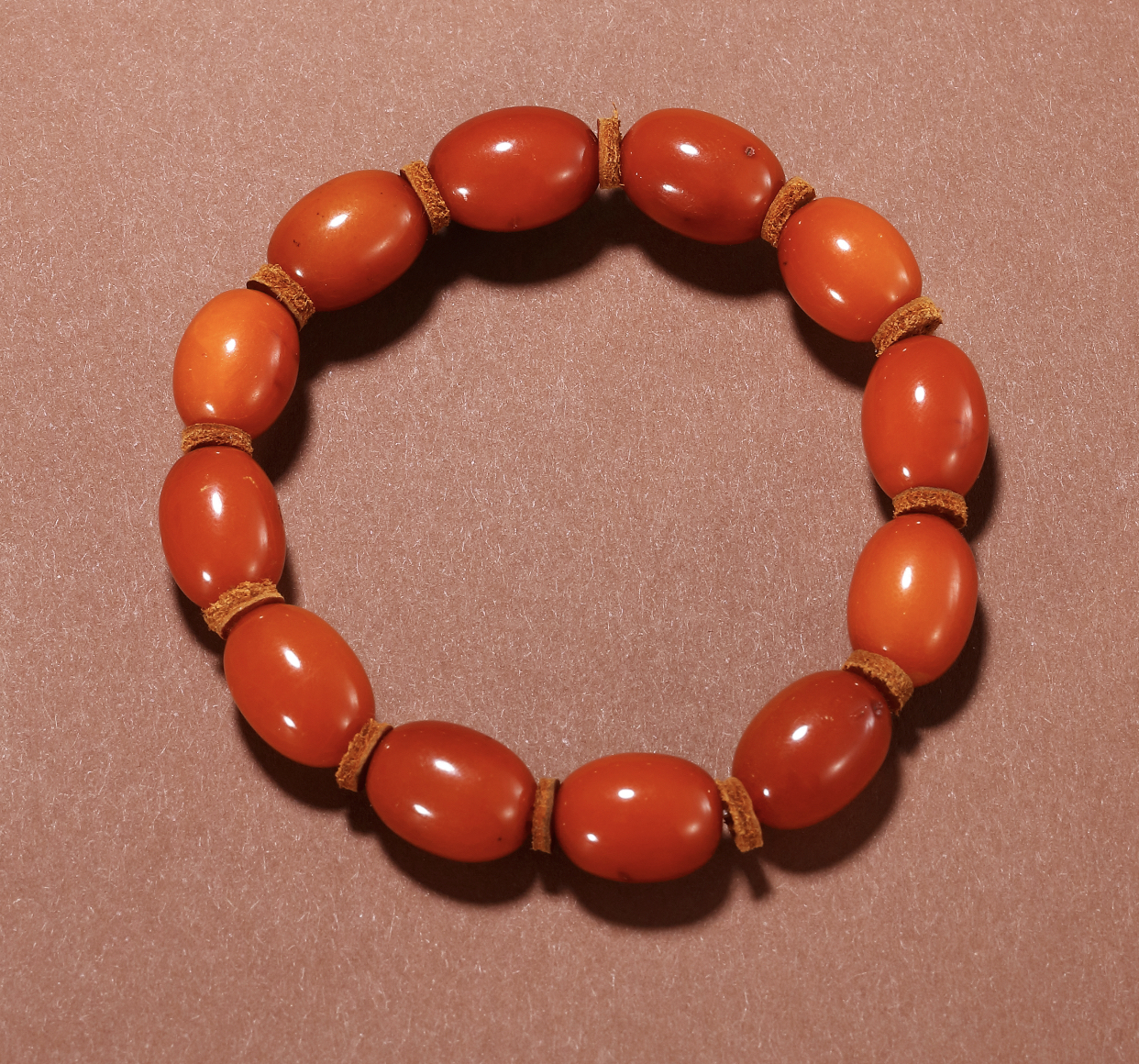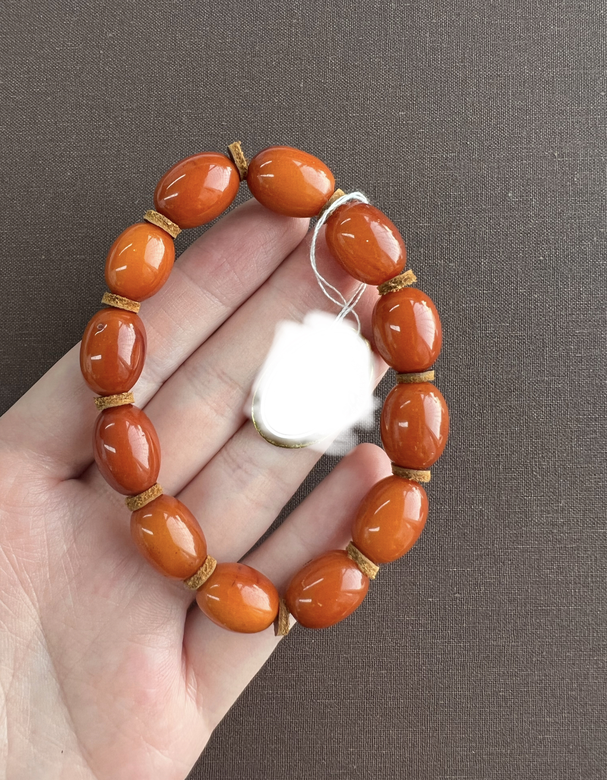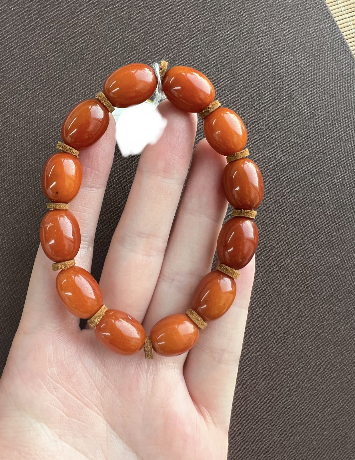 依据您提供的图片,这是一串欧洲枣型天然蜜蜡手串,年份约100年左右。