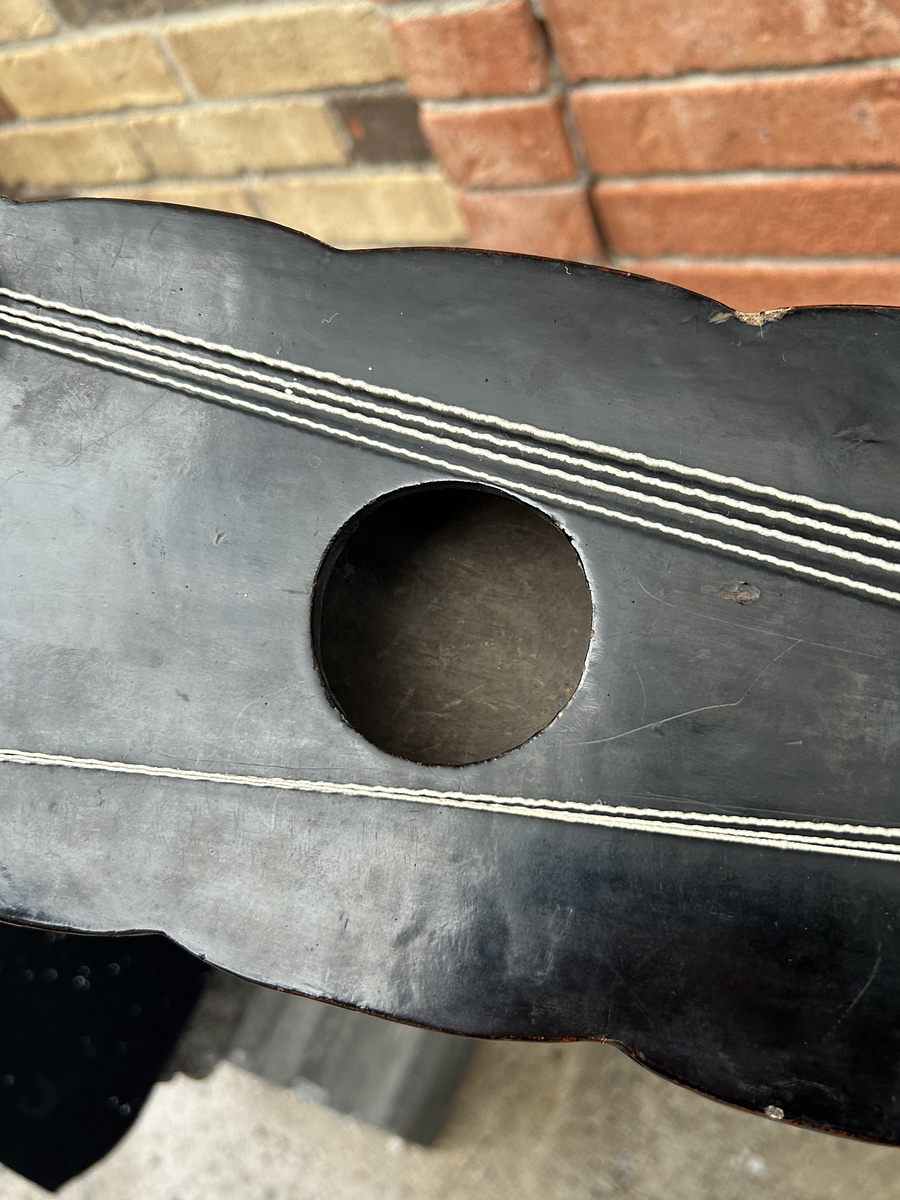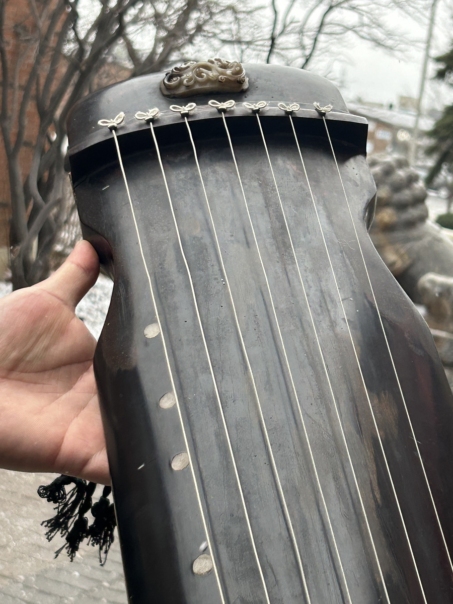 清代桐木珠帘式古琴,漆面用运八宝漆灰打底,表面黑大漆修饰,品相完美,造型流畅,是一件很好的藏品,具有很高的收藏价值