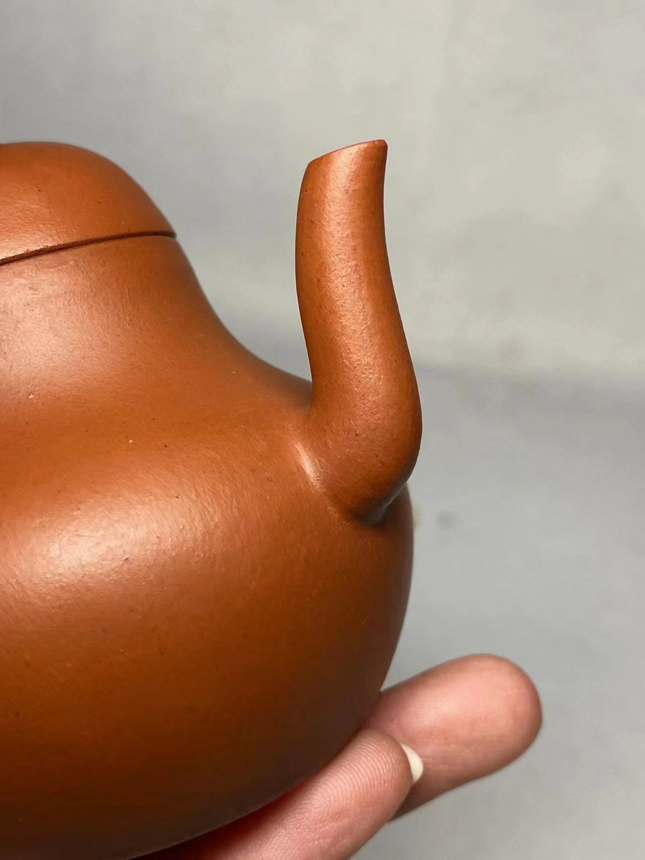 此壶是真品。思亭做朱泥小壶。历史上三位大家。第一位明代惠孟臣,清三代二位~惠逸公,思亭。后二位传世作品转少。故对他们介绍也不多。苏富比国际拍卖公司1998年在台北古壶拍卖会成绩184000台币。现在拍卖的朱泥很多都不是朱泥,真朱泥红而不艳,传世很少,因为加工工艺很复杂。但现在所为朱泥都红的太光亮,实际就是在壶身涂了层红泥浆而且。望切切注意。