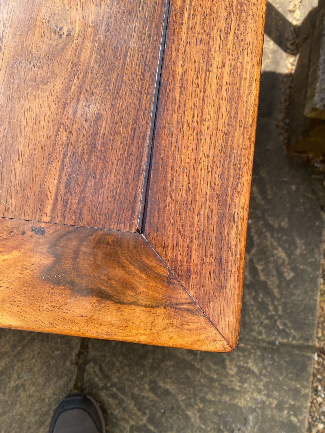清晚民国初期、酸枝木 广式罗汉床上福寿双喜炕几、图上那(所谓的凤眼只是一般树都会有树枝眼)桌面上展现红黄颜色早期翻新打水磨刷油漆效果!近期巿场价4000~6000左右
