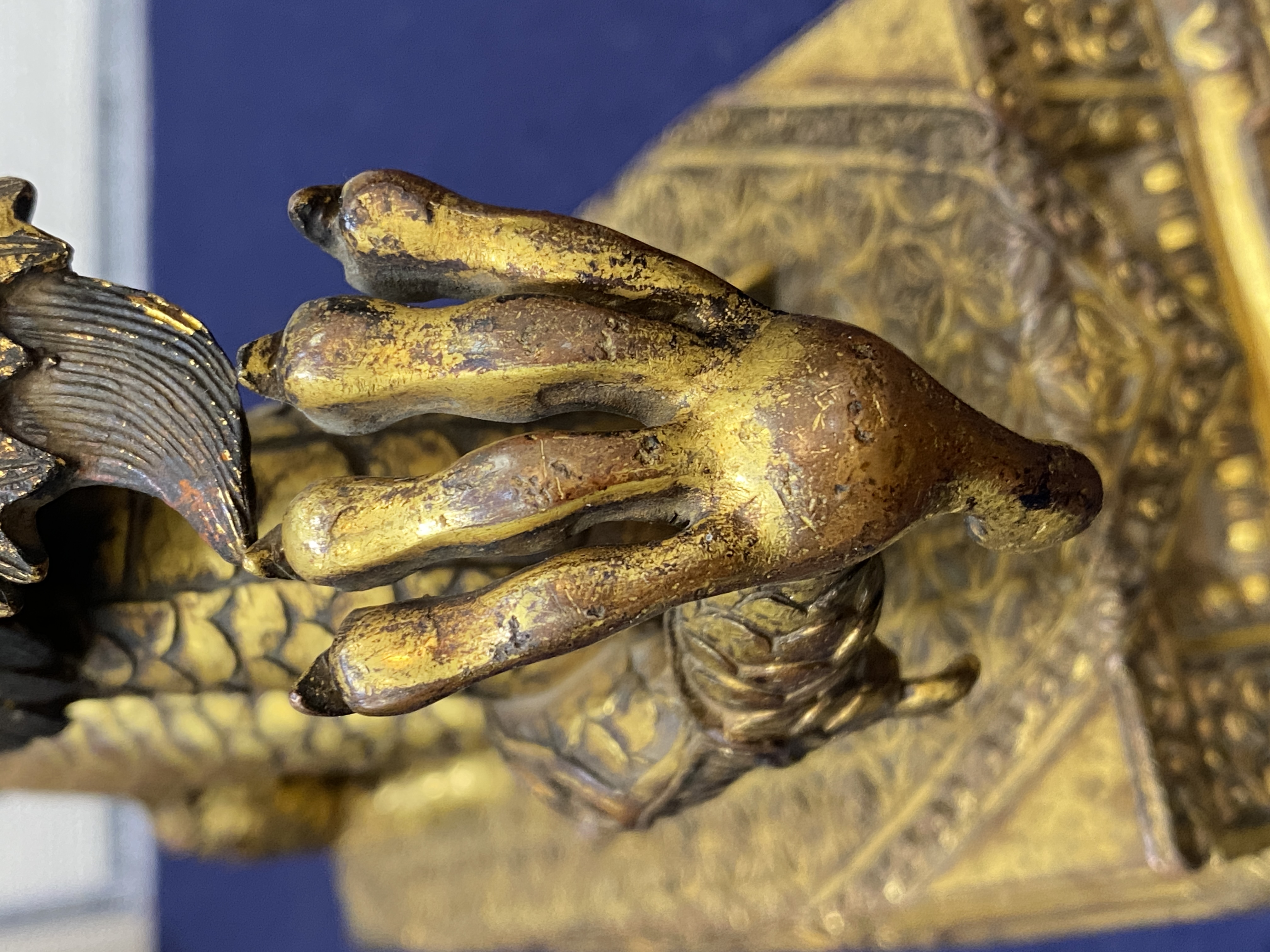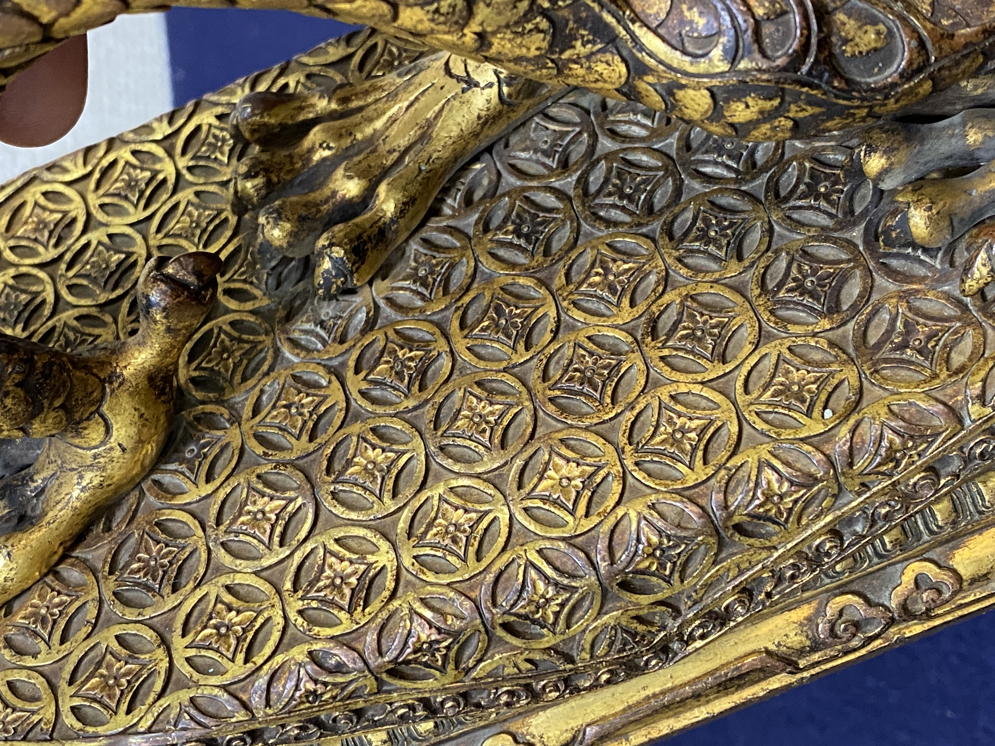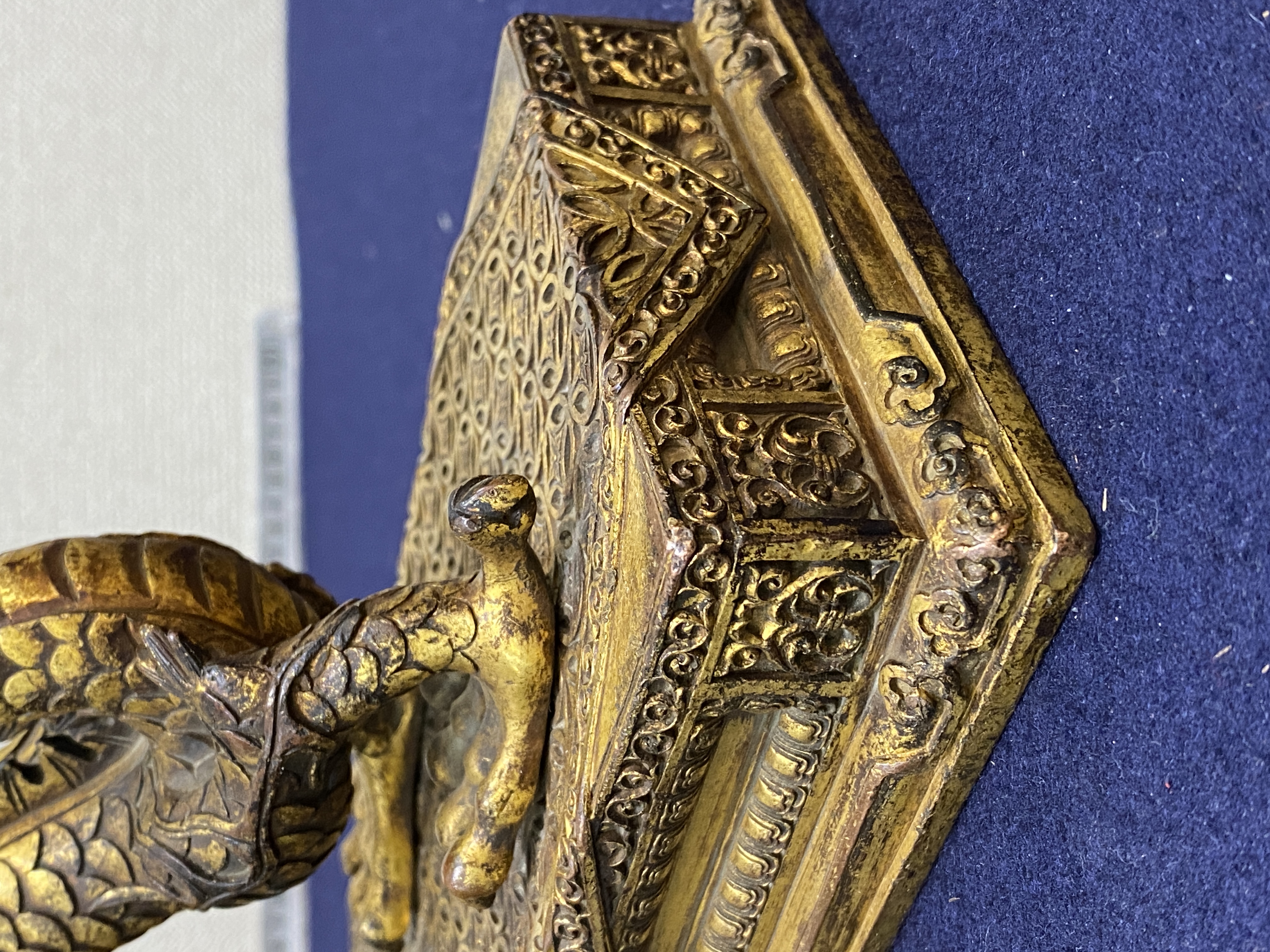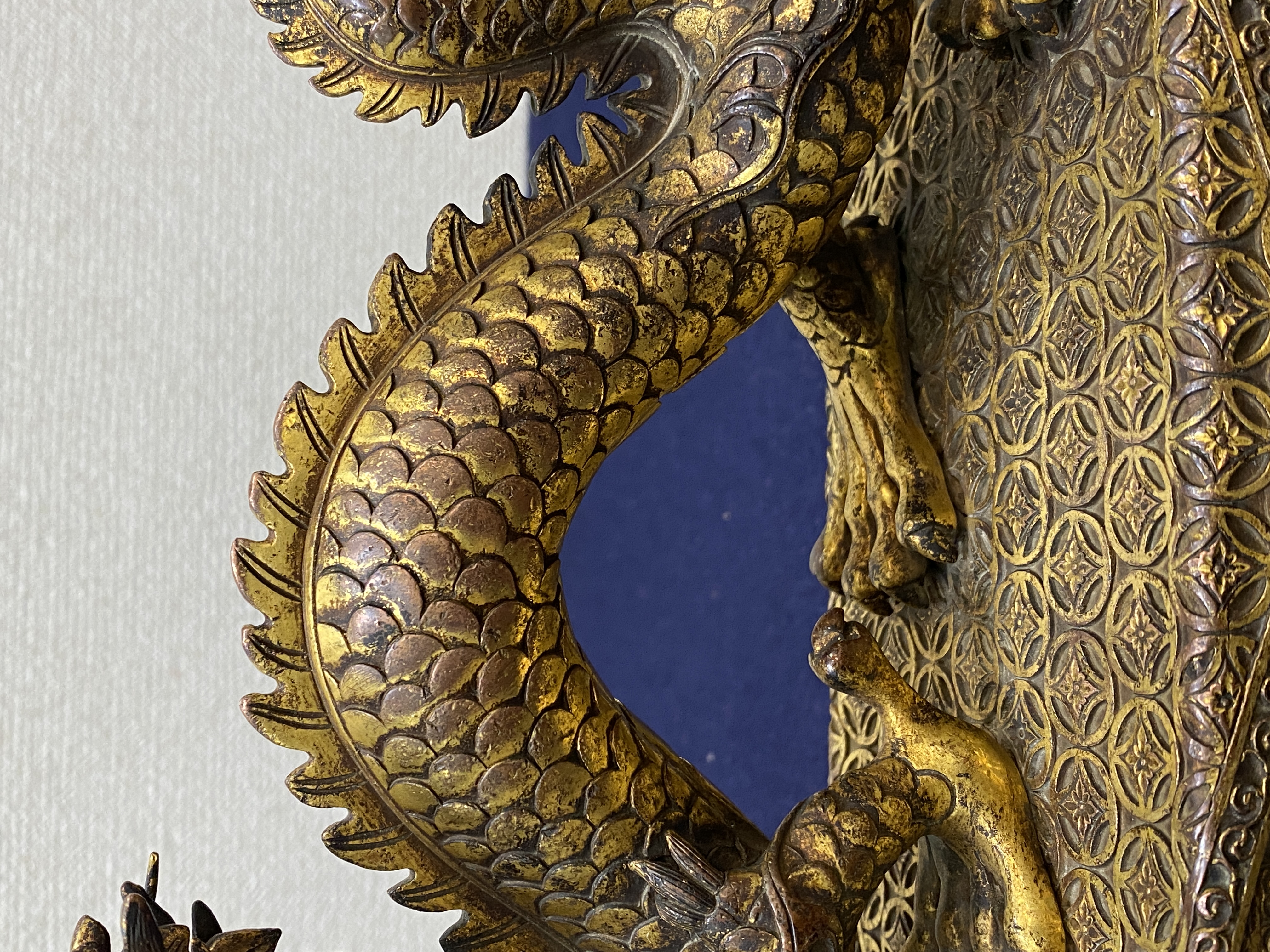 照片上这件藏品作工厚重,纹饰清晰,特别是龙下面的须弥坐作工细致,皮壳自然老旧,局部有磨损,与故宫或圆明园里的铜摆件十分接近,底部封底也是淸中风格,款錾刻工整,照片看东西对,是清代乾隆.