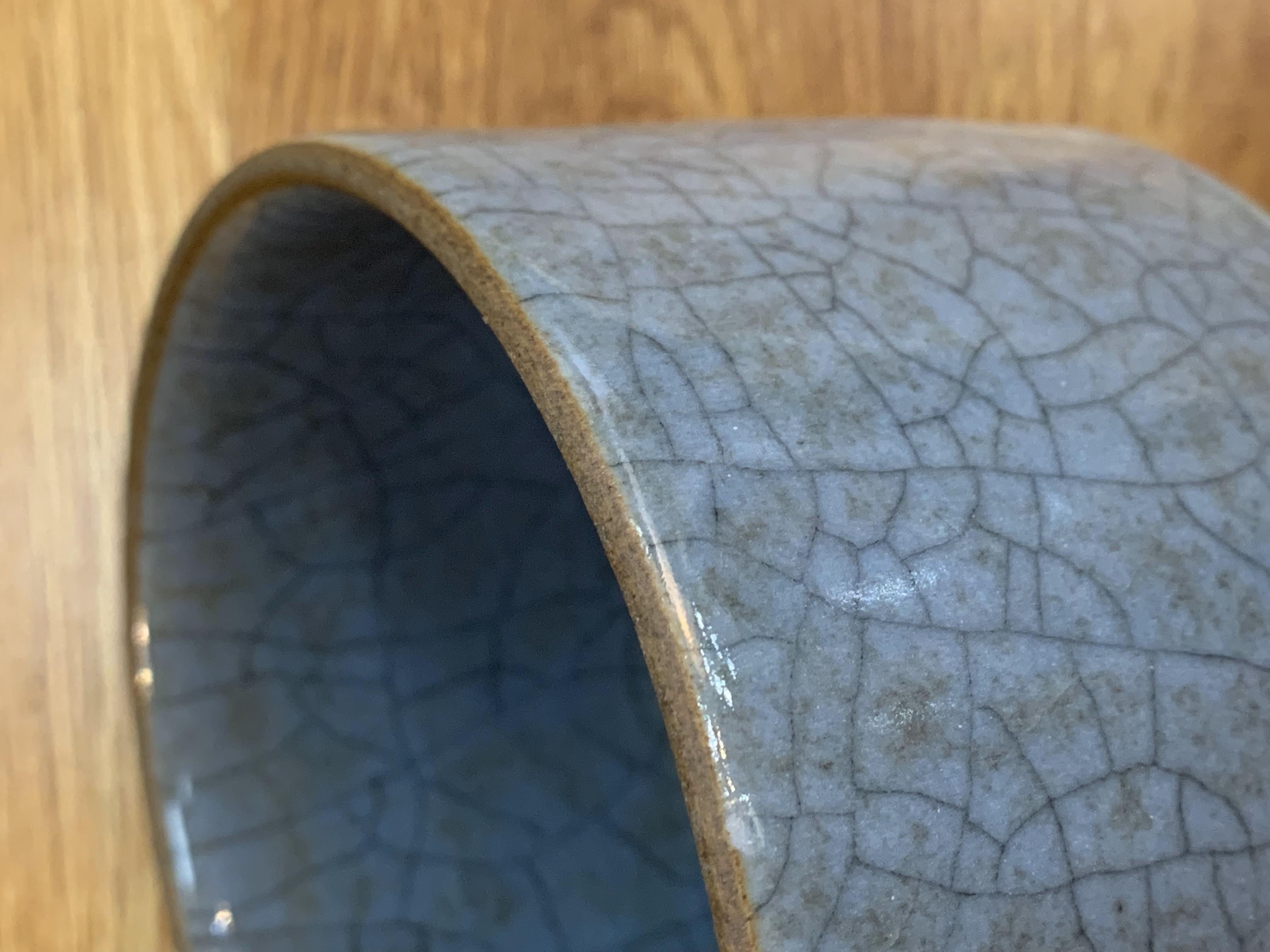 这是一件仿哥窑的产品,正确的年代就是清早期的,清早期时候景德镇仿的哥窑也不错。