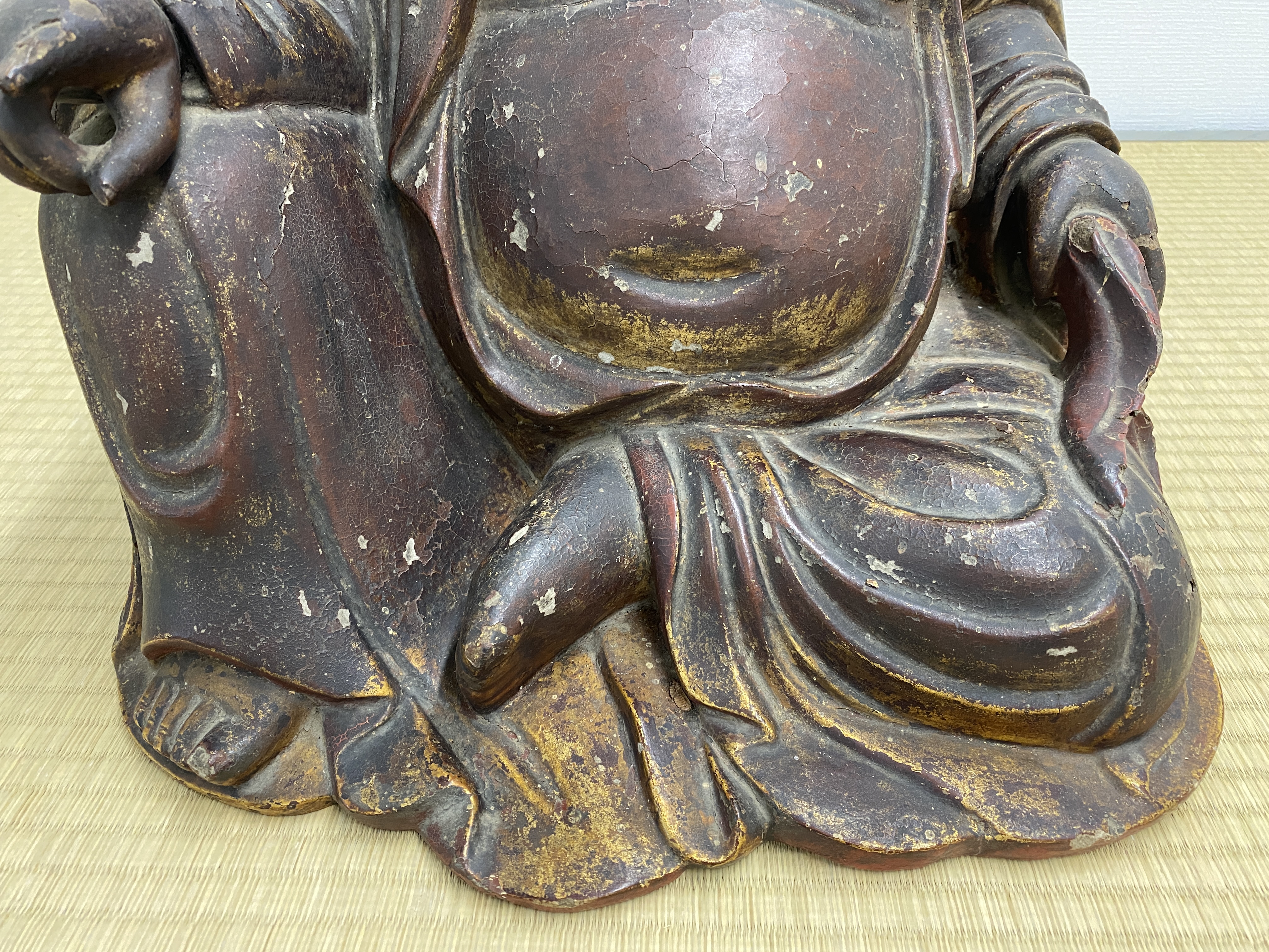 从图片看,个人认为此件弥勒造像在清中晚期,造像刻画、衣纹等不够精致,应该不是官造,有点偏民俗。市场价格不会太高,个人建议在2万左右,供参考。