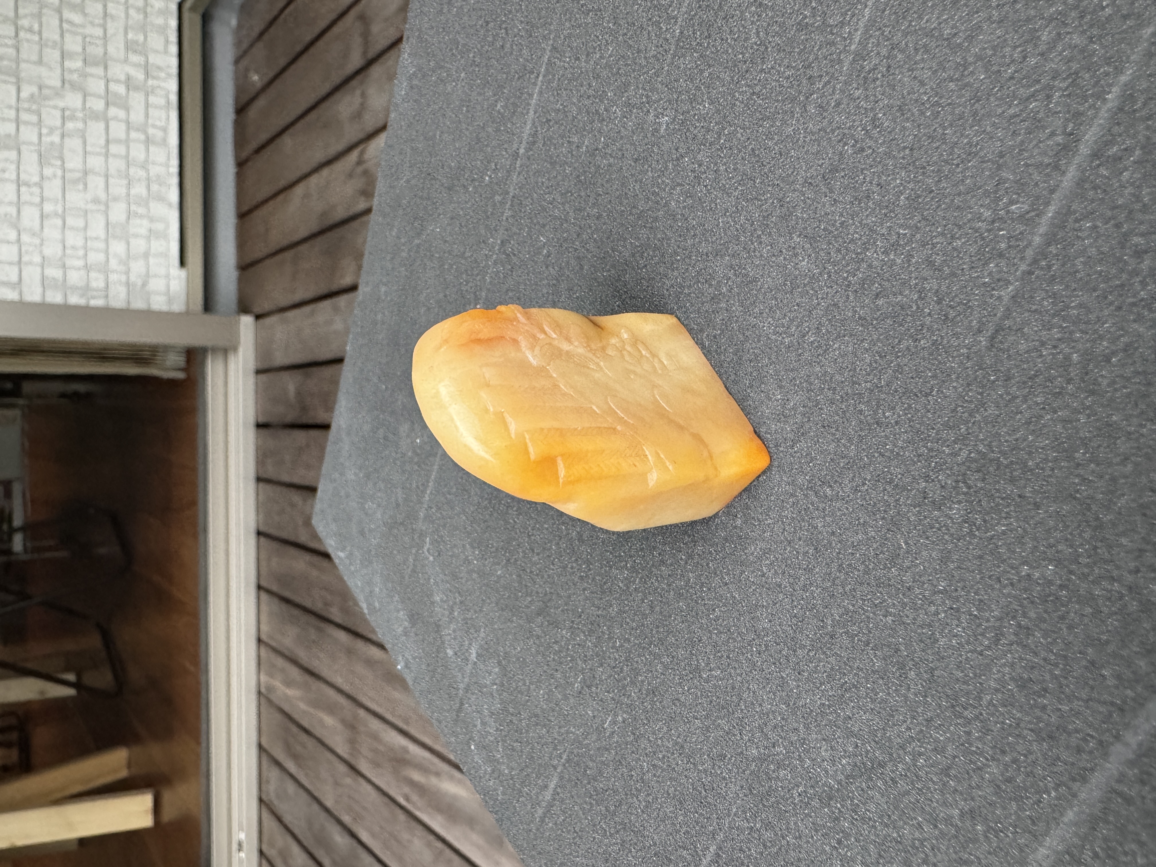 芙蓉石山水薄意雕印章,尺寸:2.7×0.9×4.6 厘米。其石质温润细腻,纯净通透。雕工古朴厚重,布局构图合理得当,展现出雕刻者的精湛技艺与深厚艺术素养。包浆开门,民国时期雕刻风格,篆刻白文“醉墨”,为印章增添了独特的文化内涵。此印章观赏价值与收藏价值。