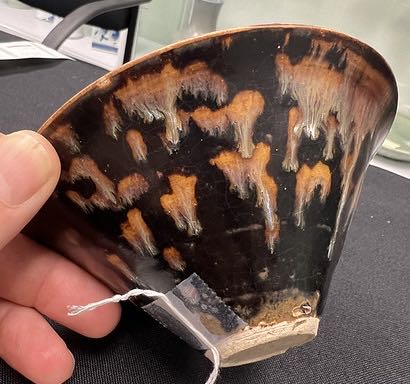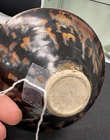 藏友好,这件藏品器型古朴端庄,釉光温润,内外的窑变很灵动自然,修足干净利落,胎色深沉,整体看符合古代特征,是宋代吉州窑,如品相完好,市价十万以上。