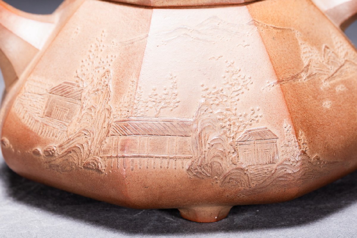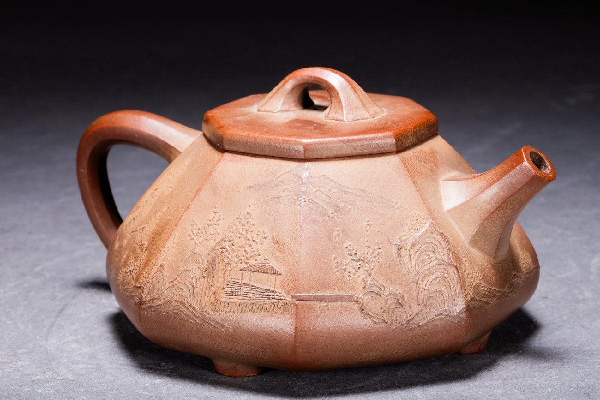 朱泥水平壶。我认为是孟臣。晚清,民国时期作者。理由。1。朱泥壶明代是薄胎。2。落款是书法刻出来的。3。胎骨太厚是晚清,民国初期作品。4。落款是印章。