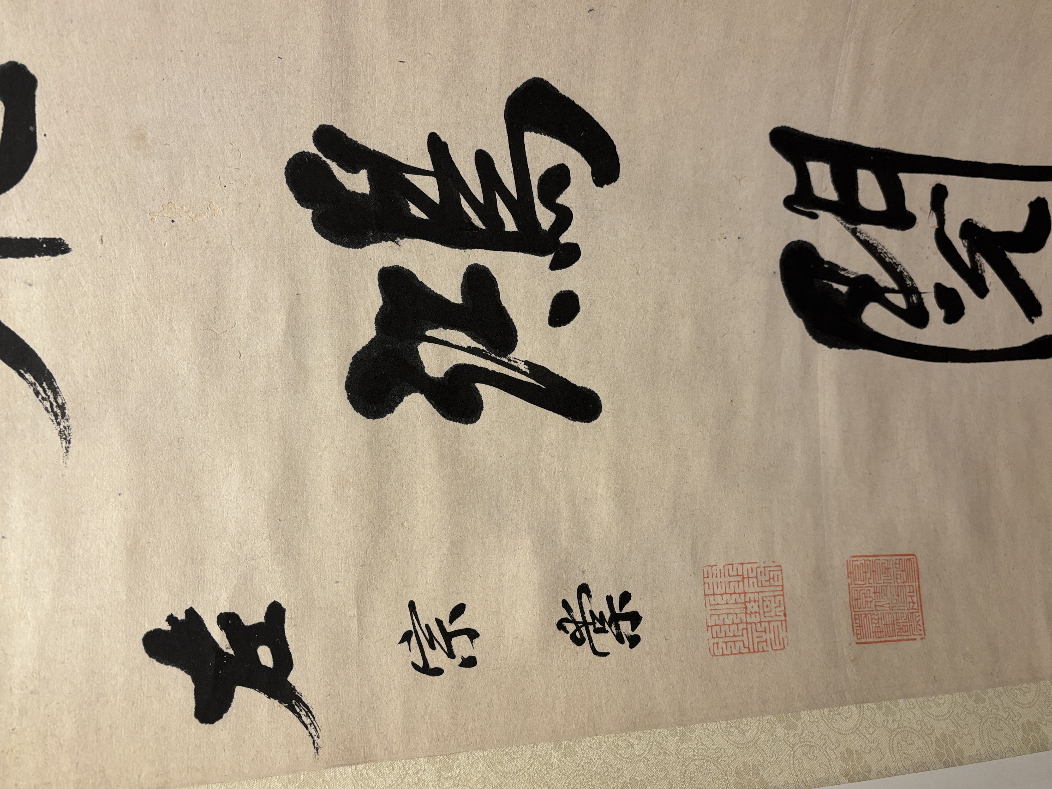 根據傳來《左宗棠-行楷七言联》,經目鑒為真跡。左宗棠(1812—1885),字季高,一字樸存,號湘上農人,湖南湘陰人。晚清著名湘軍將領、洋務派代表人物、中興名臣,官至東閣大學士、軍機大臣,封二等恪靖侯,收復新疆功莫大焉。馬宗霍評價:“文襄公行書出清臣(顏真卿)、誠懸(柳公權),而稍參率更,北碑亦時湊筆端,故蕭然森立、勁中見厚。”康有為《廣藝舟雙楫》稱:“左文襄筆法如董宣強項,雖為令長,故自不凡。”此“自提、直踏”聯為左恪靖侯之標準法書,原裝老裱。可以入藏。