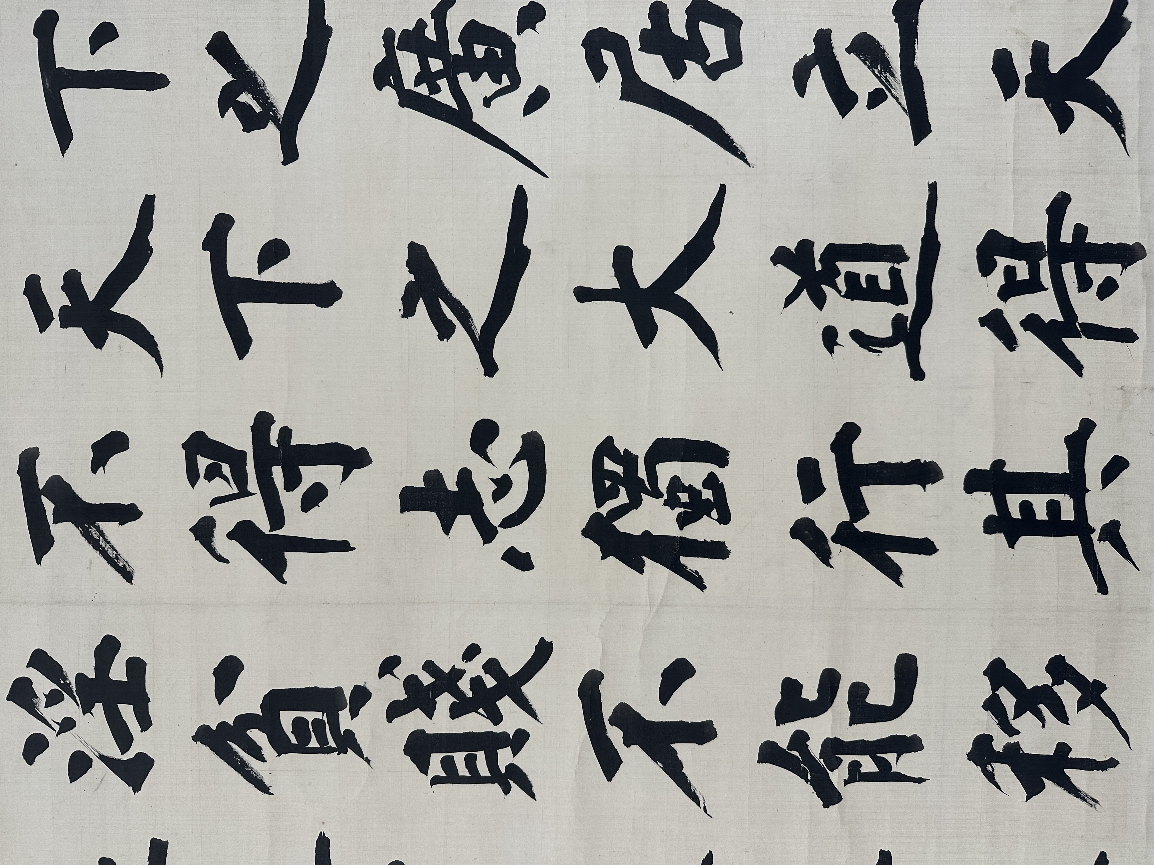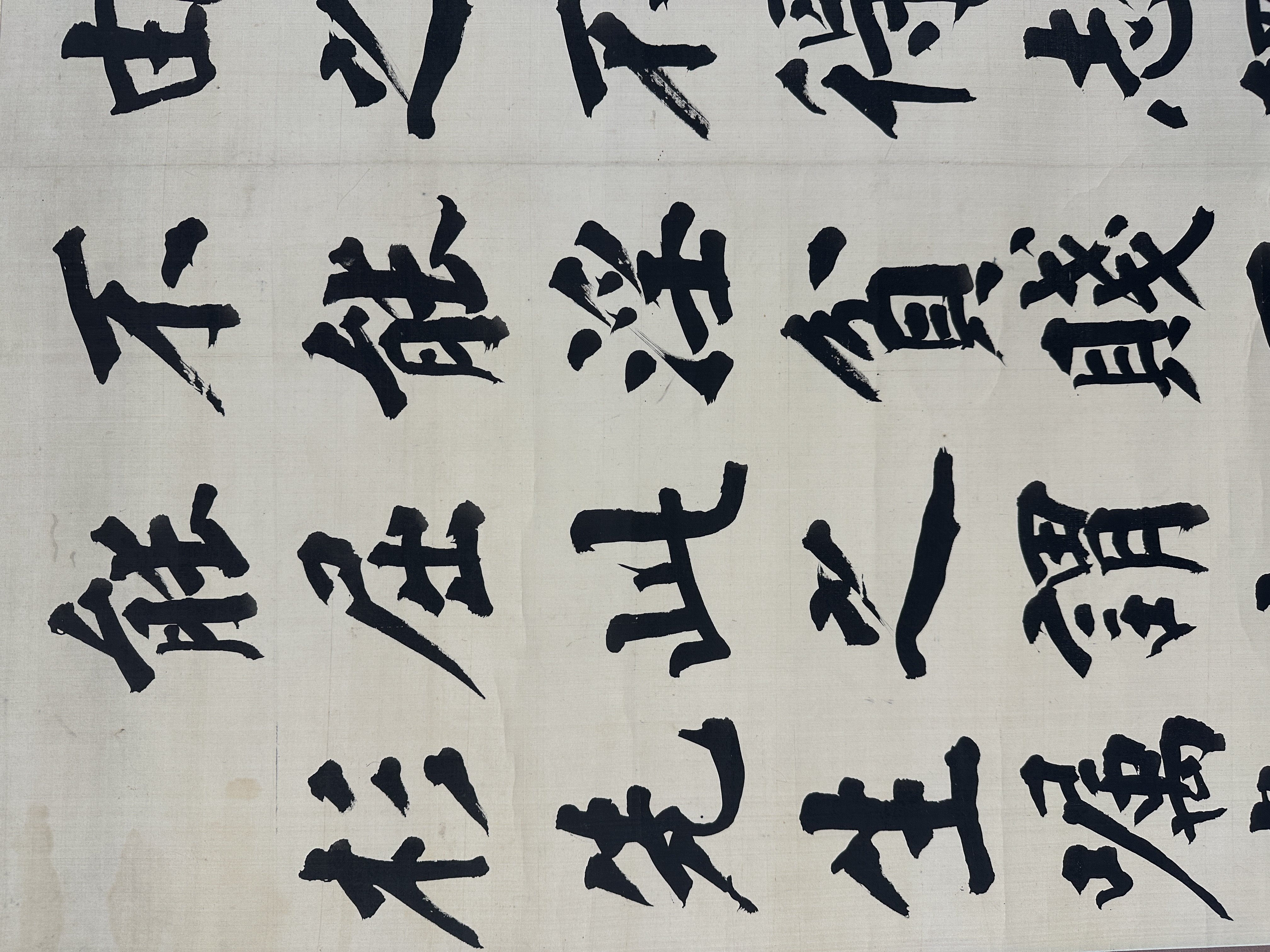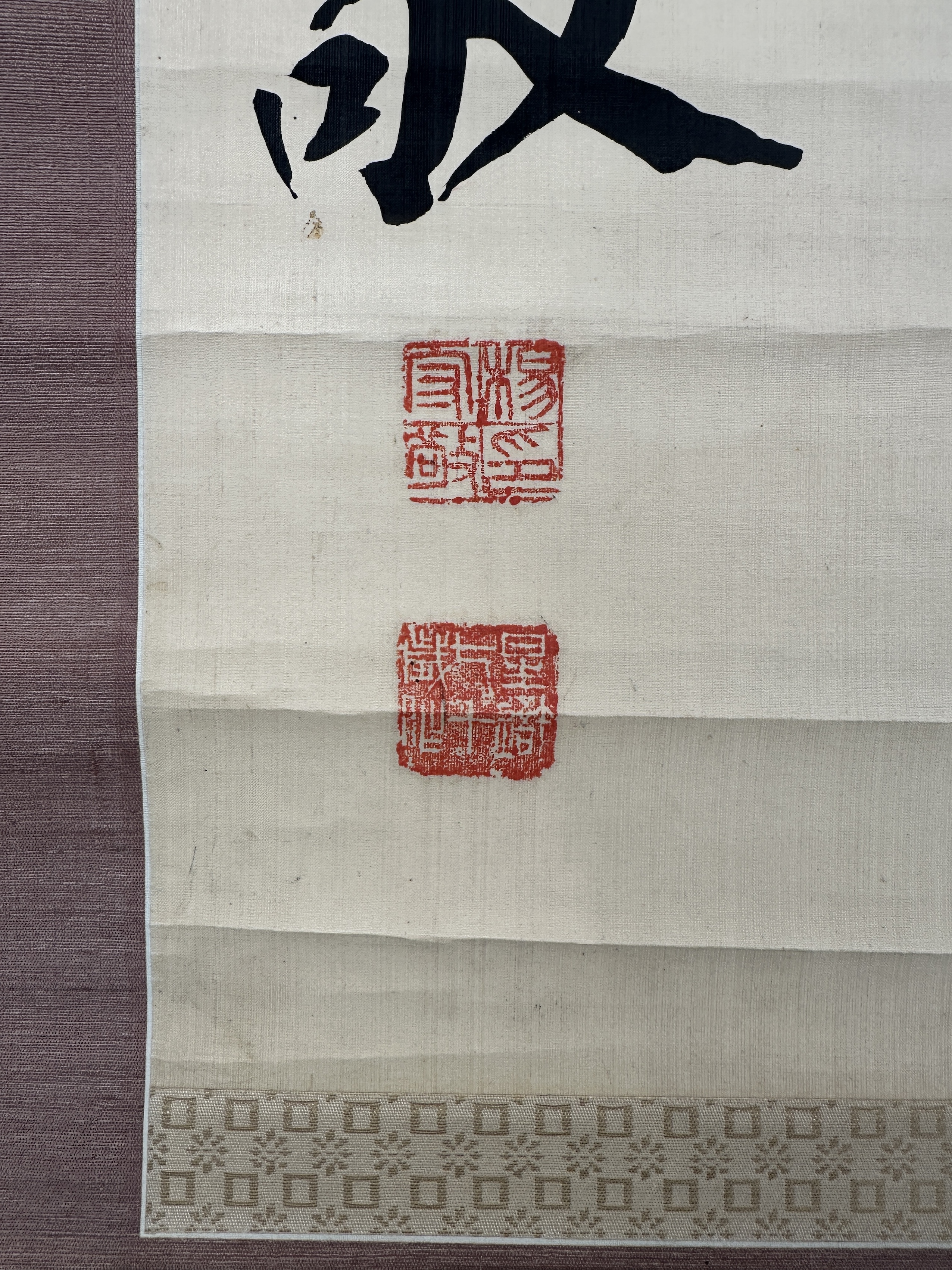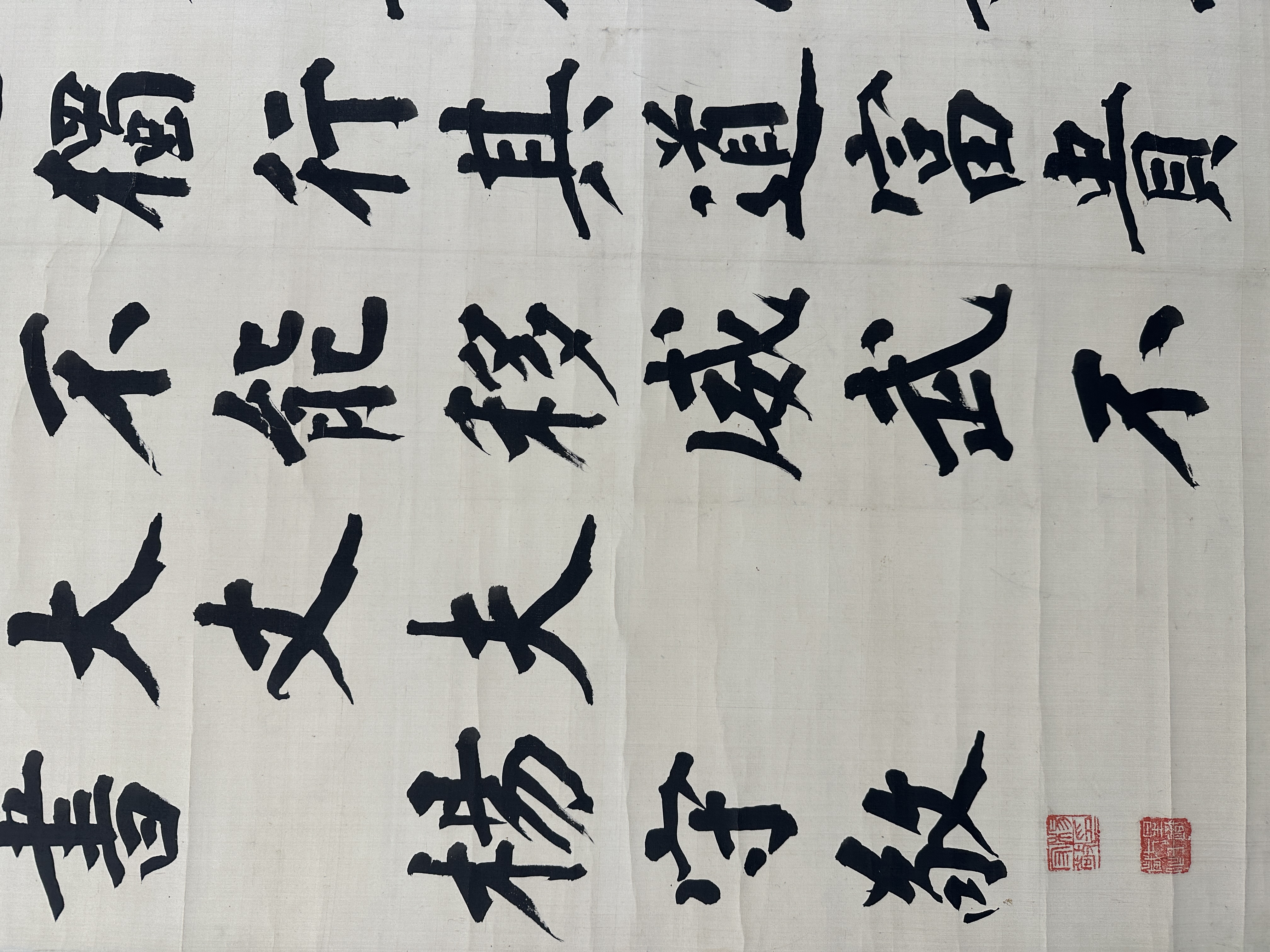 清末民初的书法家杨守敬,行、草、楷书皆擅,行书传世较多,其楷书市场价值相对颇高,他曾著述《楷法溯源》主张书法要“变”,变即是创新。并且明确指出:后人的书法与前贤的书法“笔笔求肖,字字求合,终门外汉也”。此书法中堂结体方整严谨,笔画布势均匀横细竖粗,捺尾饱满。通篇结布局整密,重心平稳,是他书法作品中的上品,且是名人上款,值得收藏。
