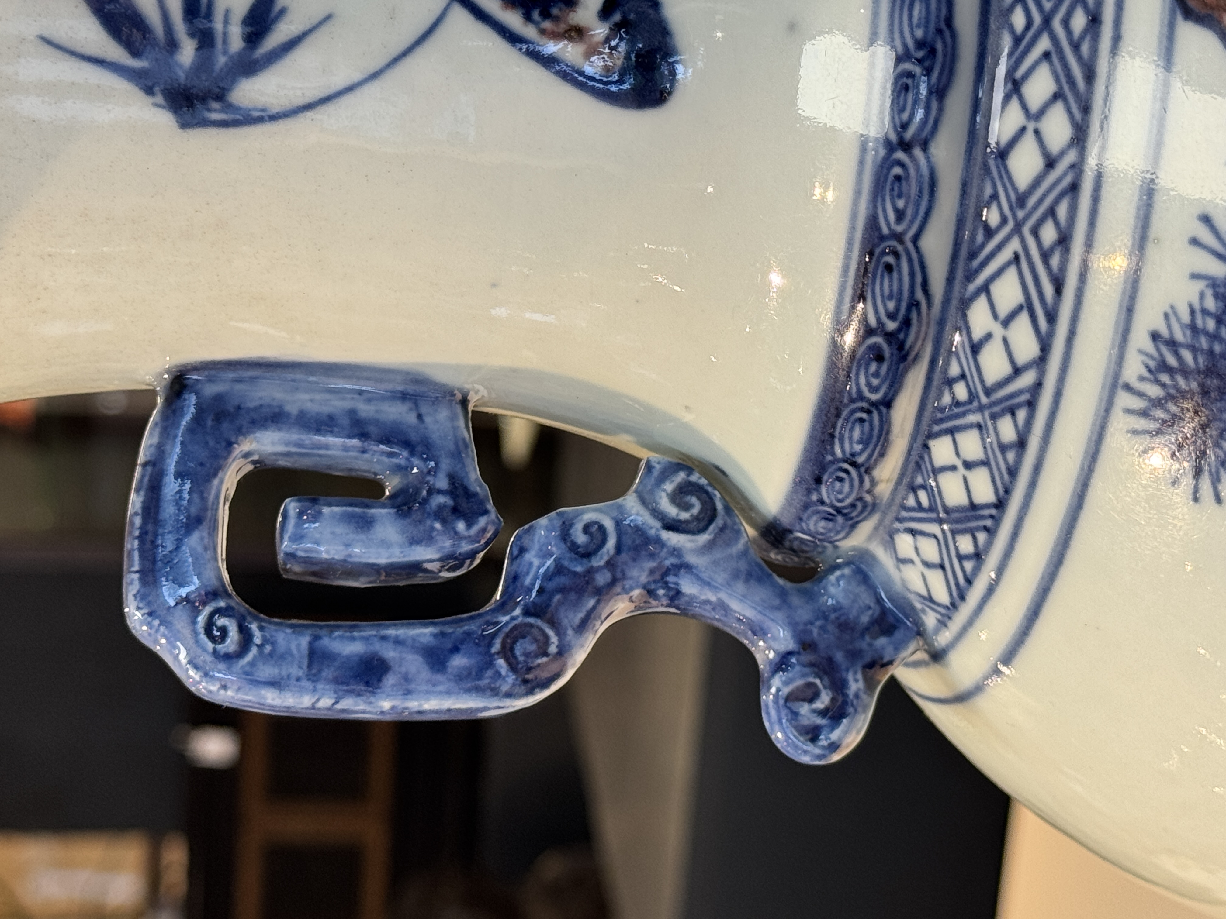 藏友您好,您送鉴的这件青花釉里红松鹿图双耳尊器型周正青花发色沉稳装饰图案布局合理,我们都知道青花和釉里红两种的成色温度是不一样的青花烧正了釉里红很容易烧飞,此件作品的青花烧的很正釉里红也烧出来了实属难得。看它的画工十分流畅写实可以说绘制的非常潇洒,釉面光泽温润胎质洁白修足干净利索包浆及胎釉结合处黄溢现象自然,此件藏品体型硕大品相完惠较为难得。综上所述,我认为这是一件清乾隆时期的作品值得收藏。