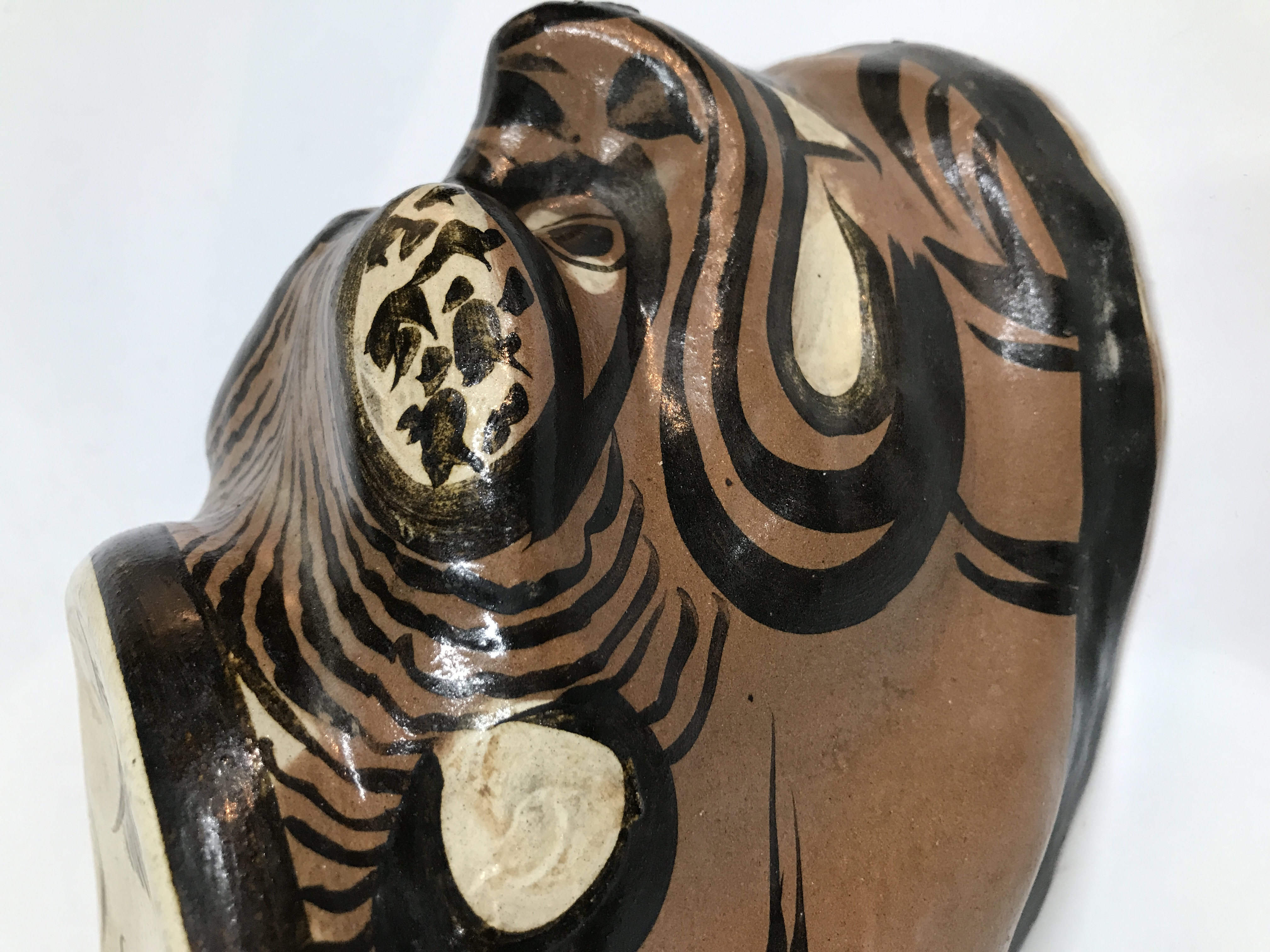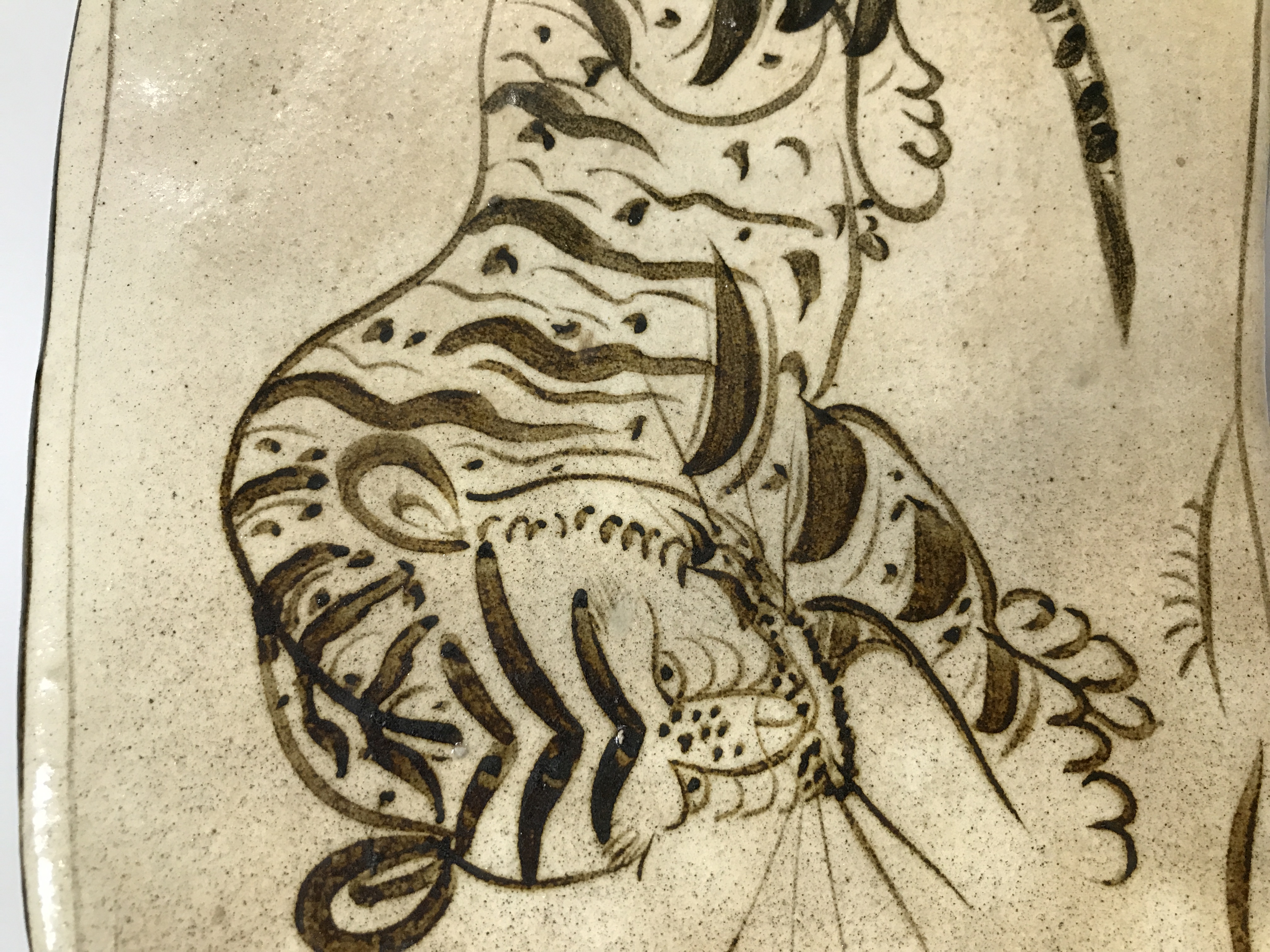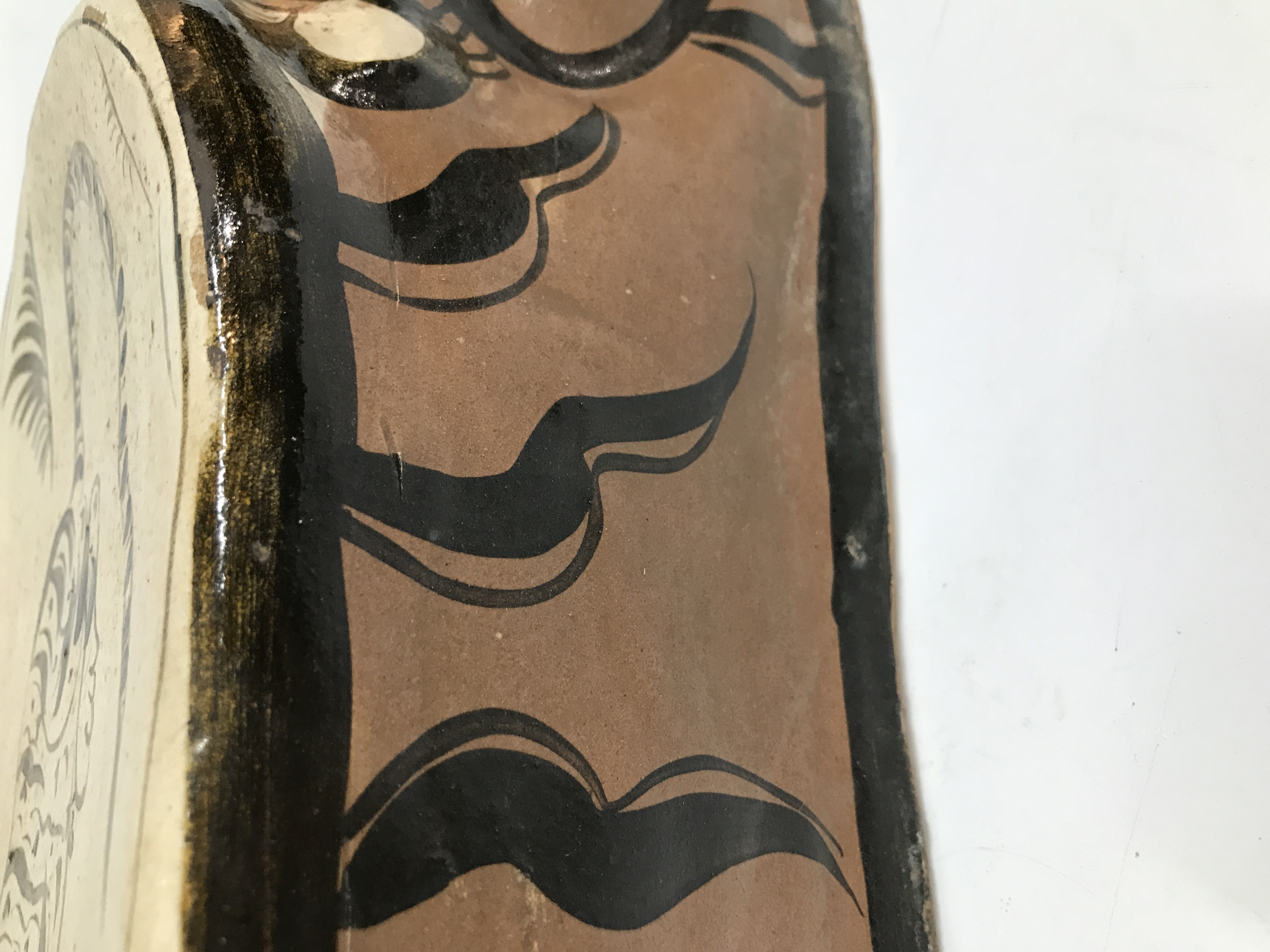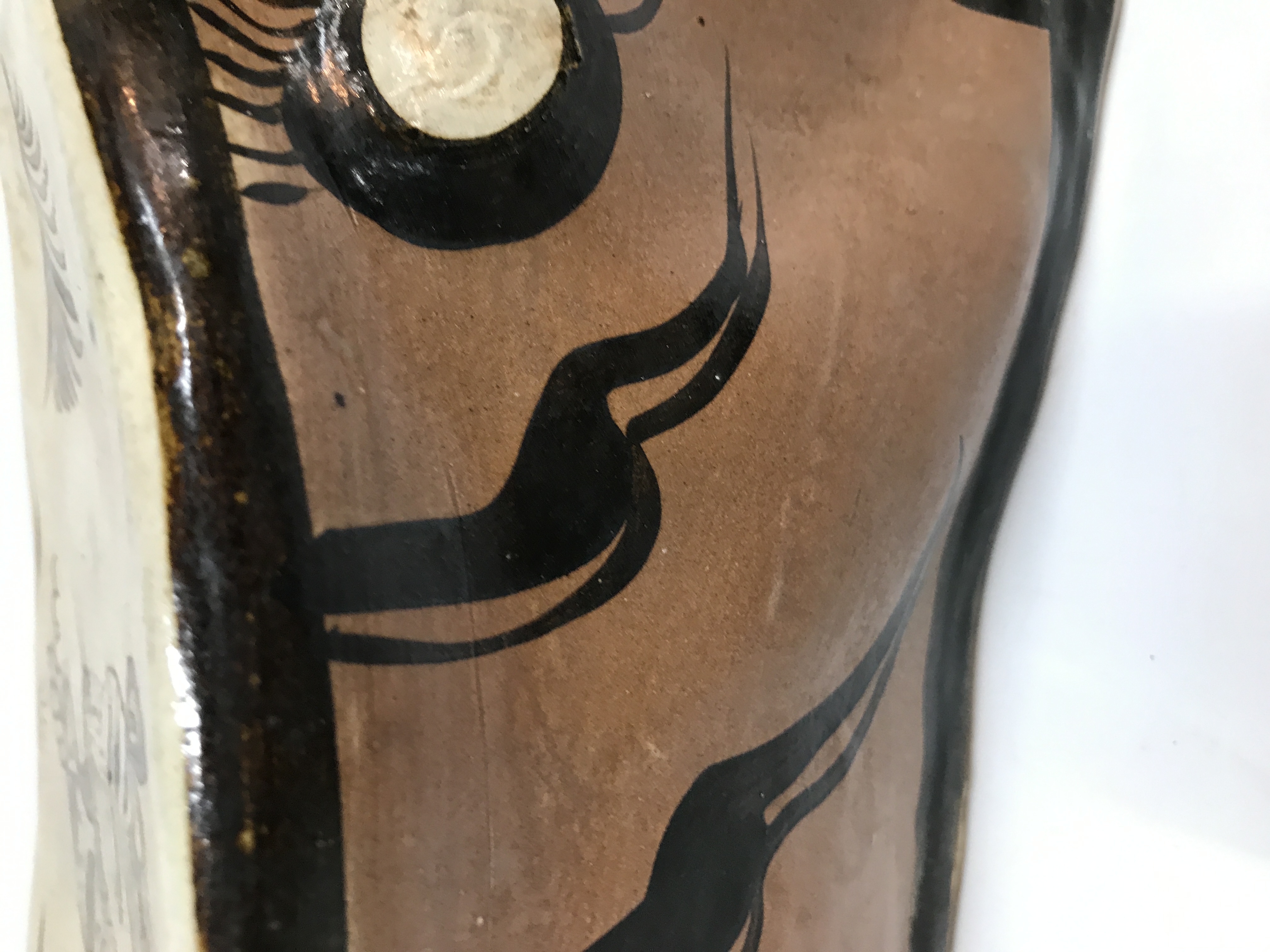 由所提供的图片来看,此磁州窑虎纹瓷枕有类似于宋代时期风格,如果到代且品相完好,则有较高的收藏价值。但是其底胎显湿,用彩新嫩缺乏老气,通体上的包浆缺乏自然的岁月老化迹象,据现有图片来看此藏品不老,为现代仿古工艺品。如果尚未购藏建议慎重对待,作为现代的仿古工艺品价格不高几百元,个人观点,供你参考。