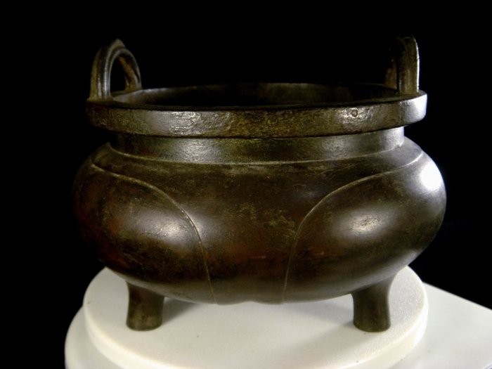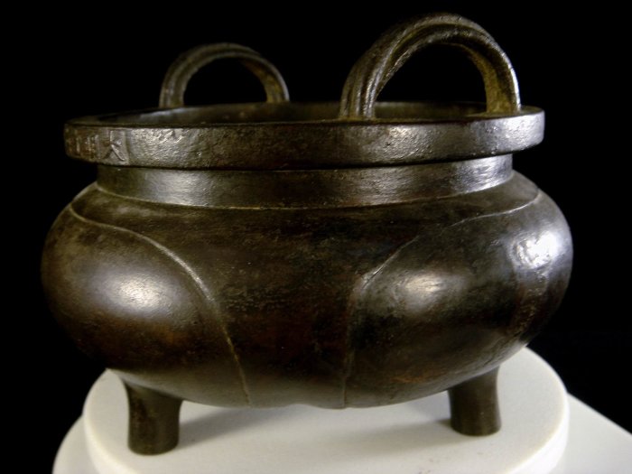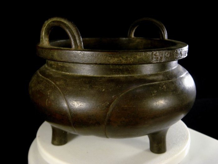 您好,感谢您的信任~ 这是开门的清中期的宣炉,口沿的“大明宣德年造”款识配底部蟠龙纹样是个固定搭配定式,并不是很少见,而且这类炉子大都手头偏轻,都是800多克,存世量还是挺多的,而且口沿部分的文字力度也差了一点点,请酌情考虑一下吧~