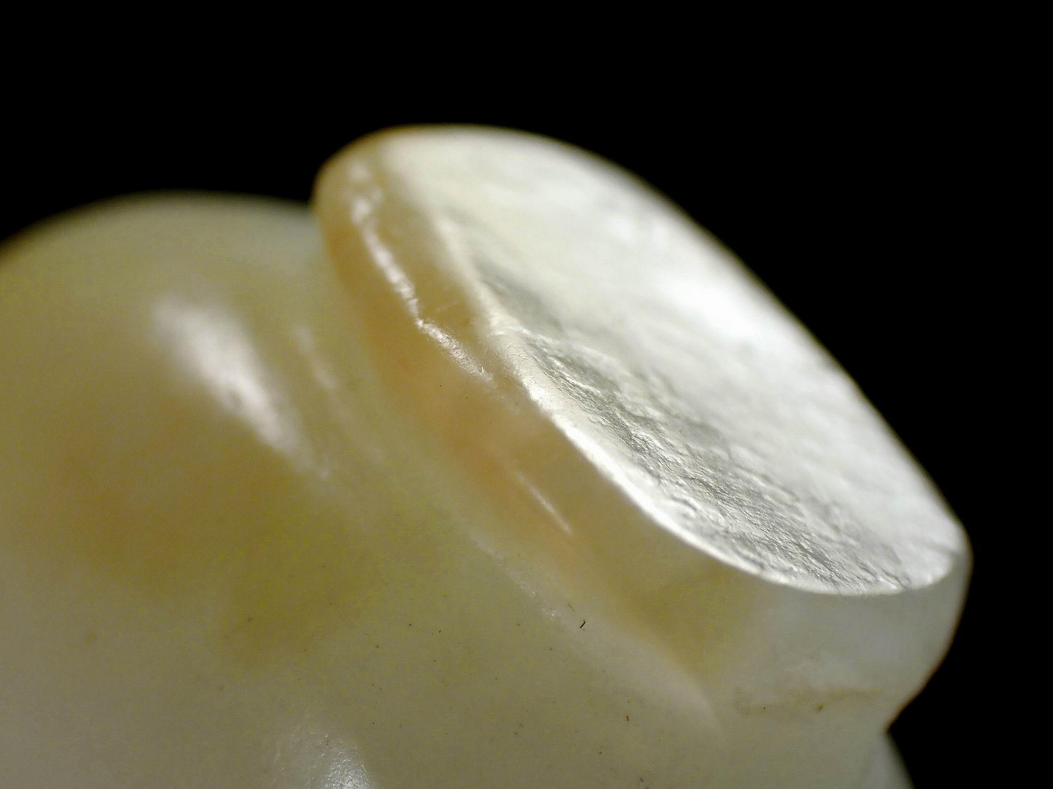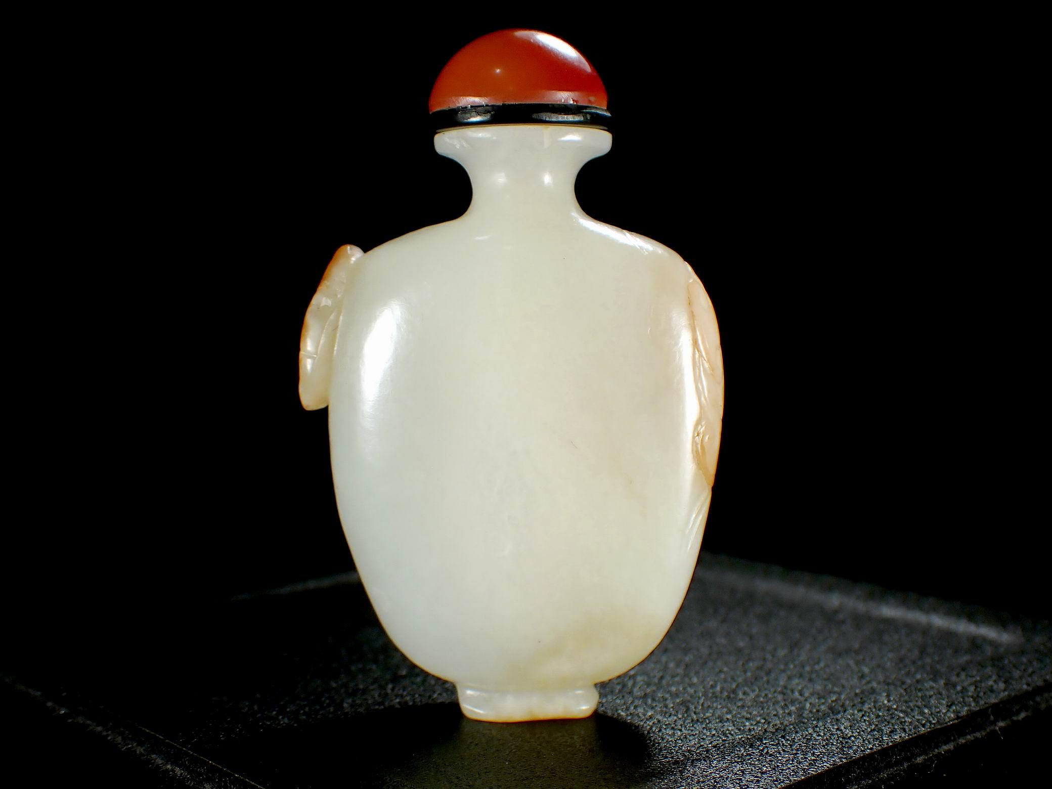 藏友您好!您的这件白玉鼻烟壶从质地看为和田白玉,但它不老。①从工痕看,铊痕明显不是老铊工痕,工痕中的砂粒痕不属老工工艺。②阴刻线条软,光气不足。缺乏老玉古旧的光润度,这是它很重要的识别老新的关键。③玉器器身润度也不够,没有老玉柔和润滑的油质感。