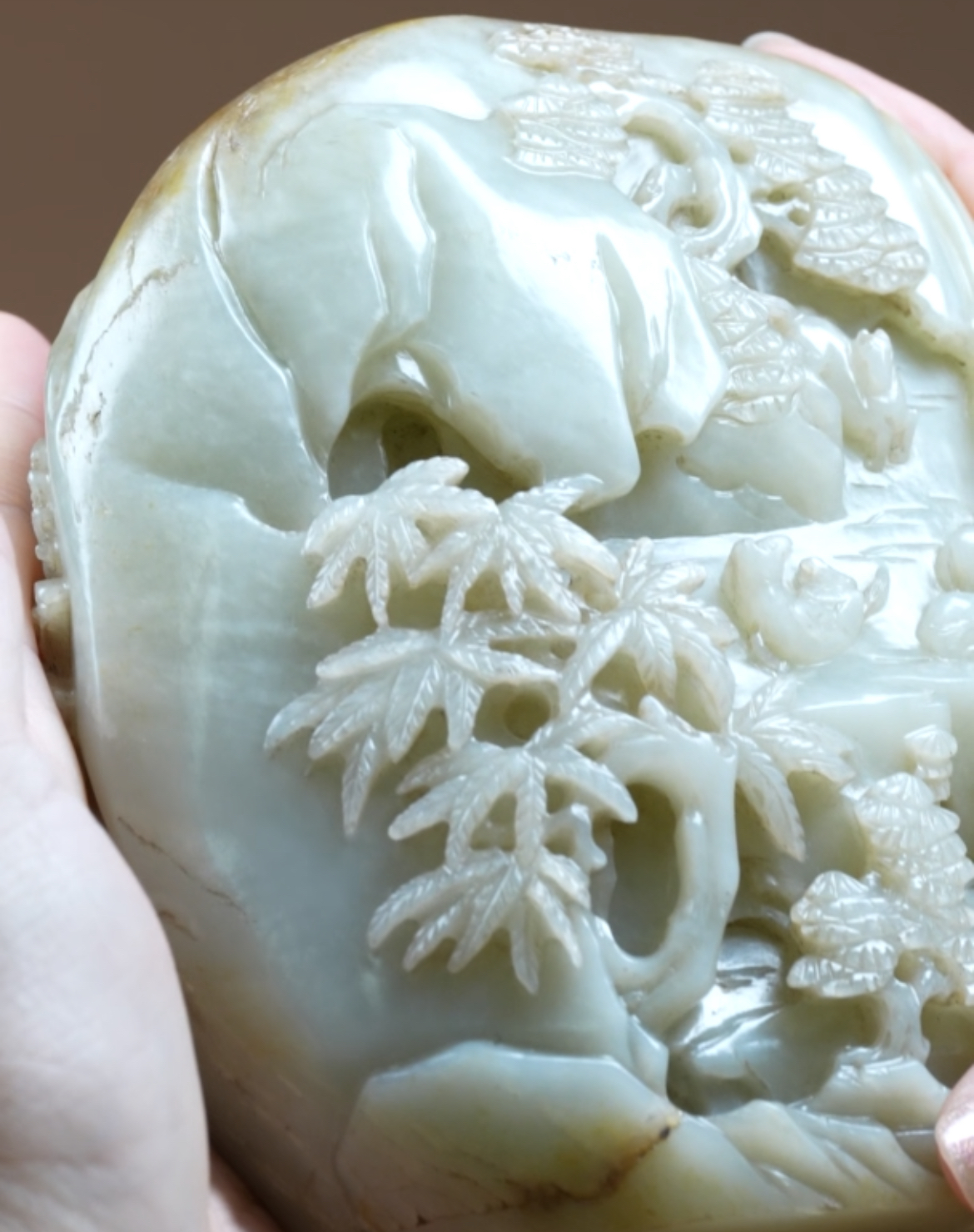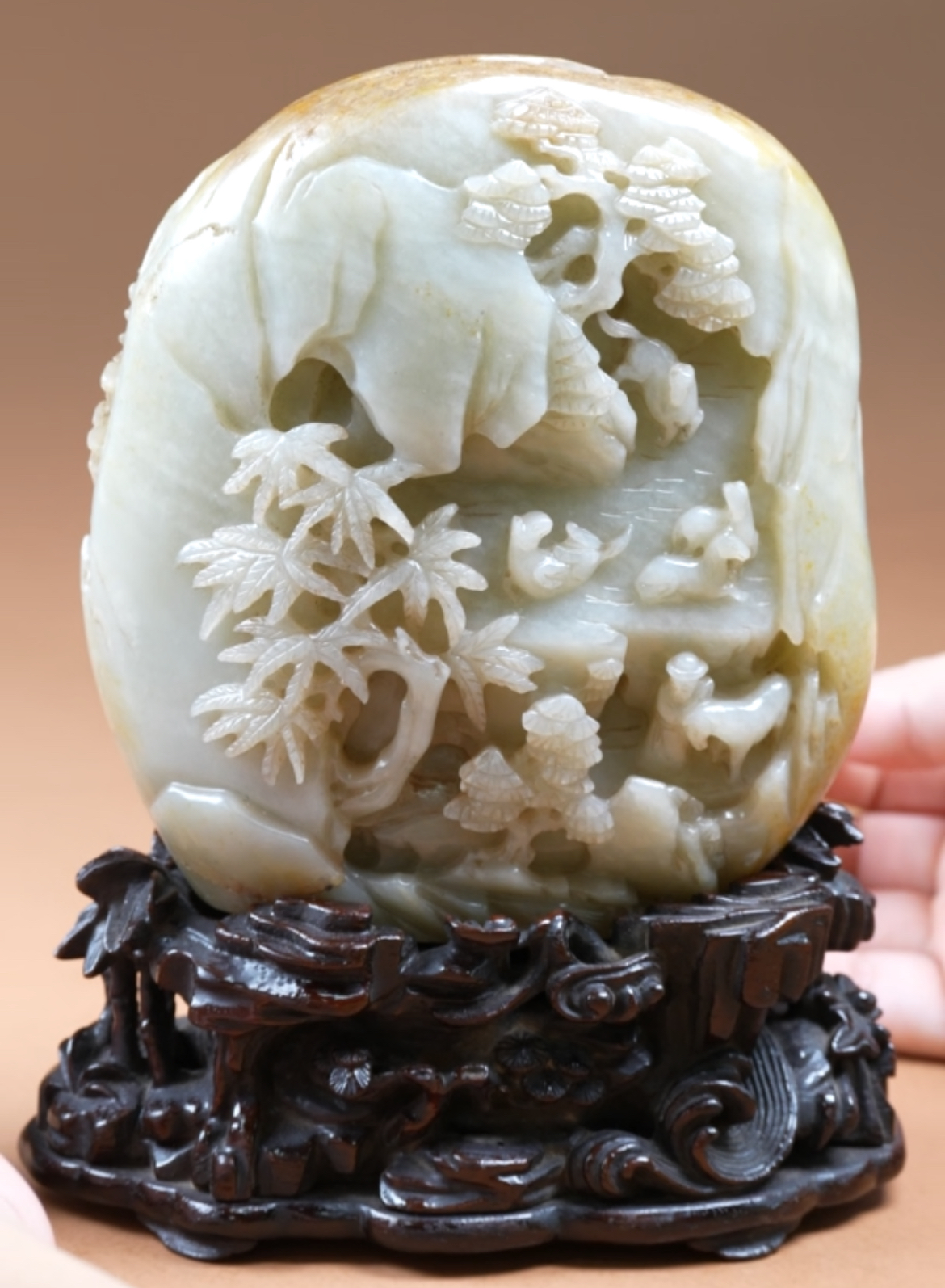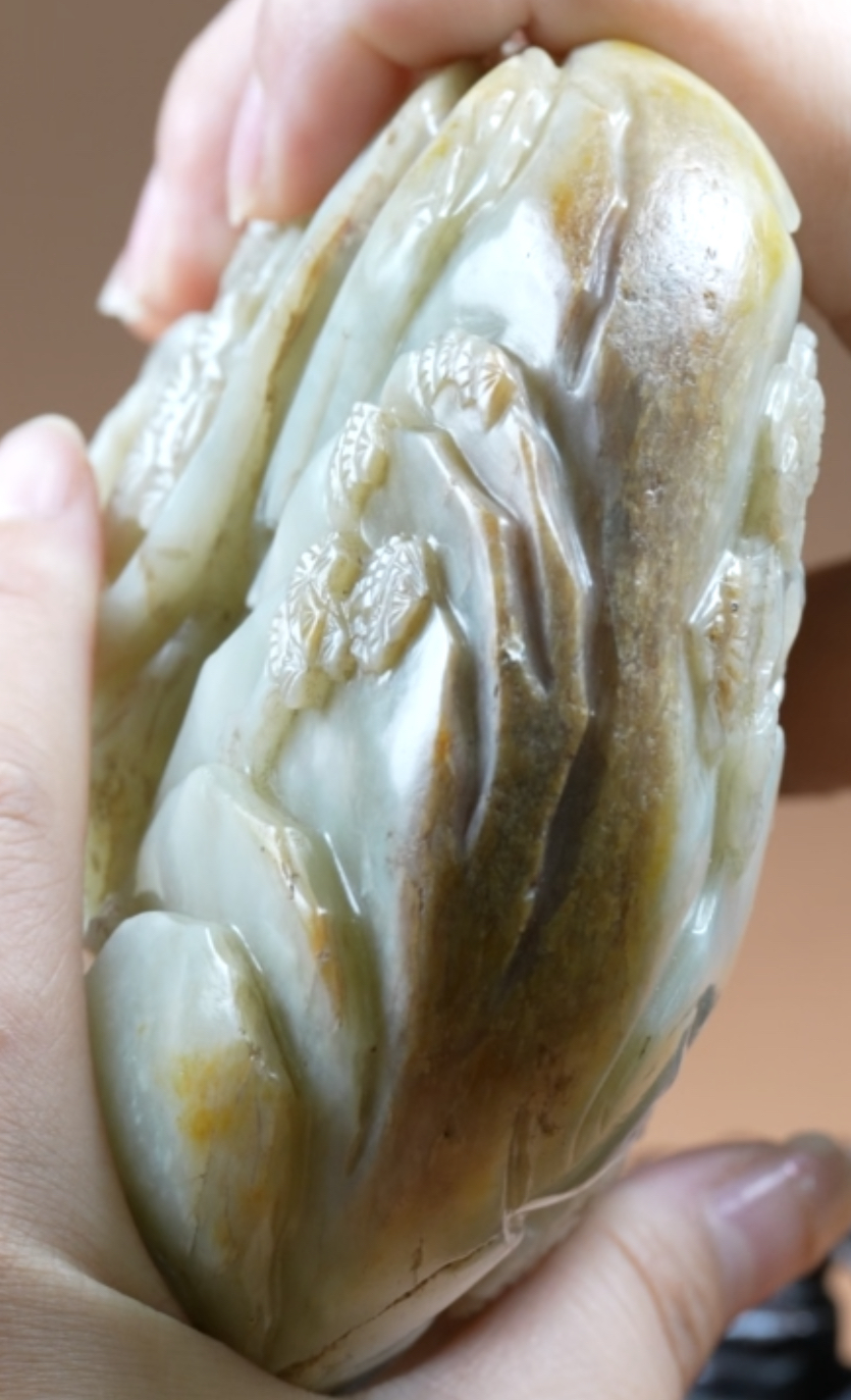 藏友你好,你发来的这个山子摆件,属于典型清代风格,传统题材,使用的青白玉籽料雕刻,雕刻工艺相对清代砣机活儿少了一些硬朗,各个角度稍微软弱,表面光气一般,不够清代老熟,应该是近几十年雕刻而成,料子一般,市场价格一般,请酌情考虑。就图而言仅代表个人观点。