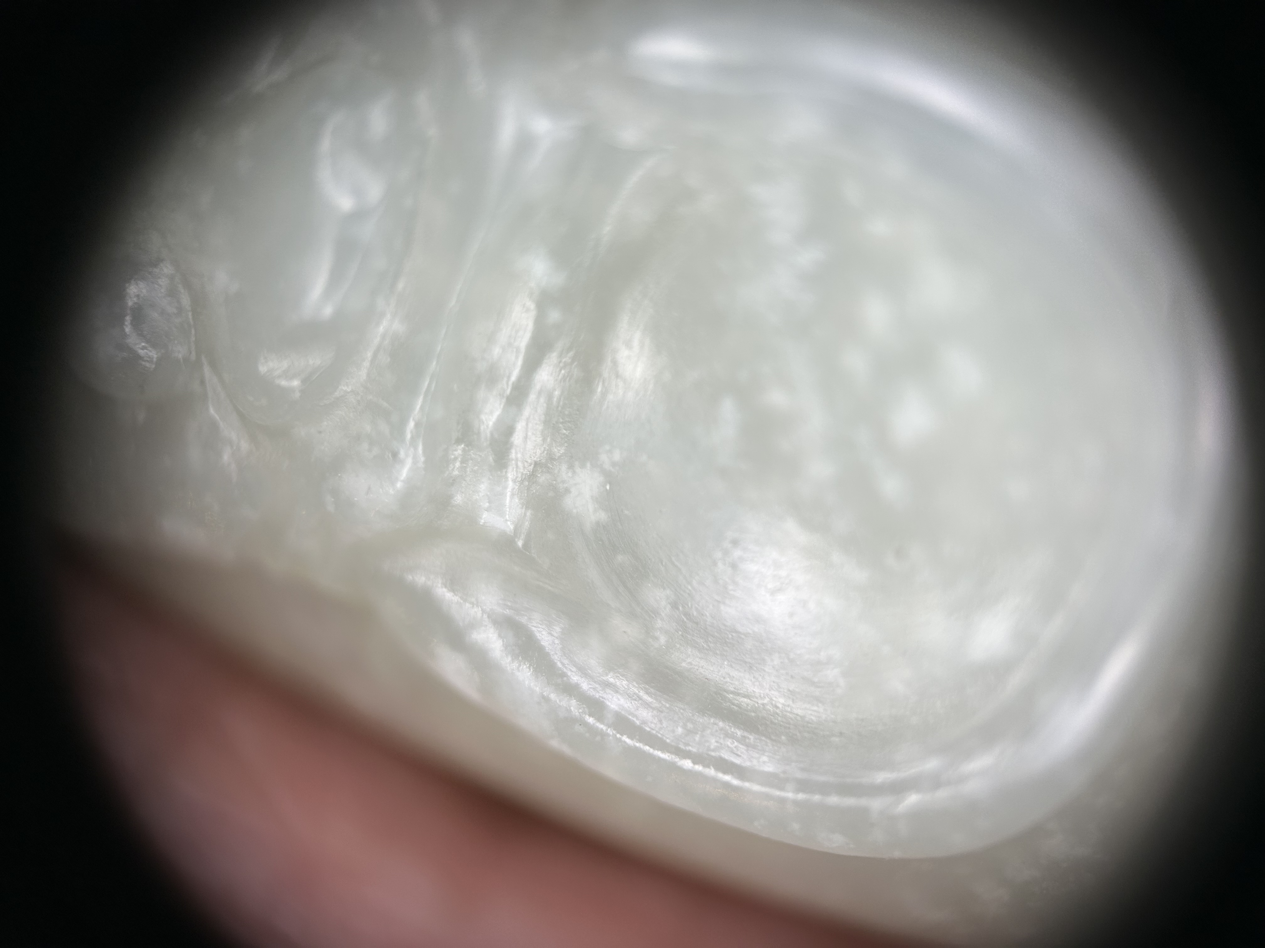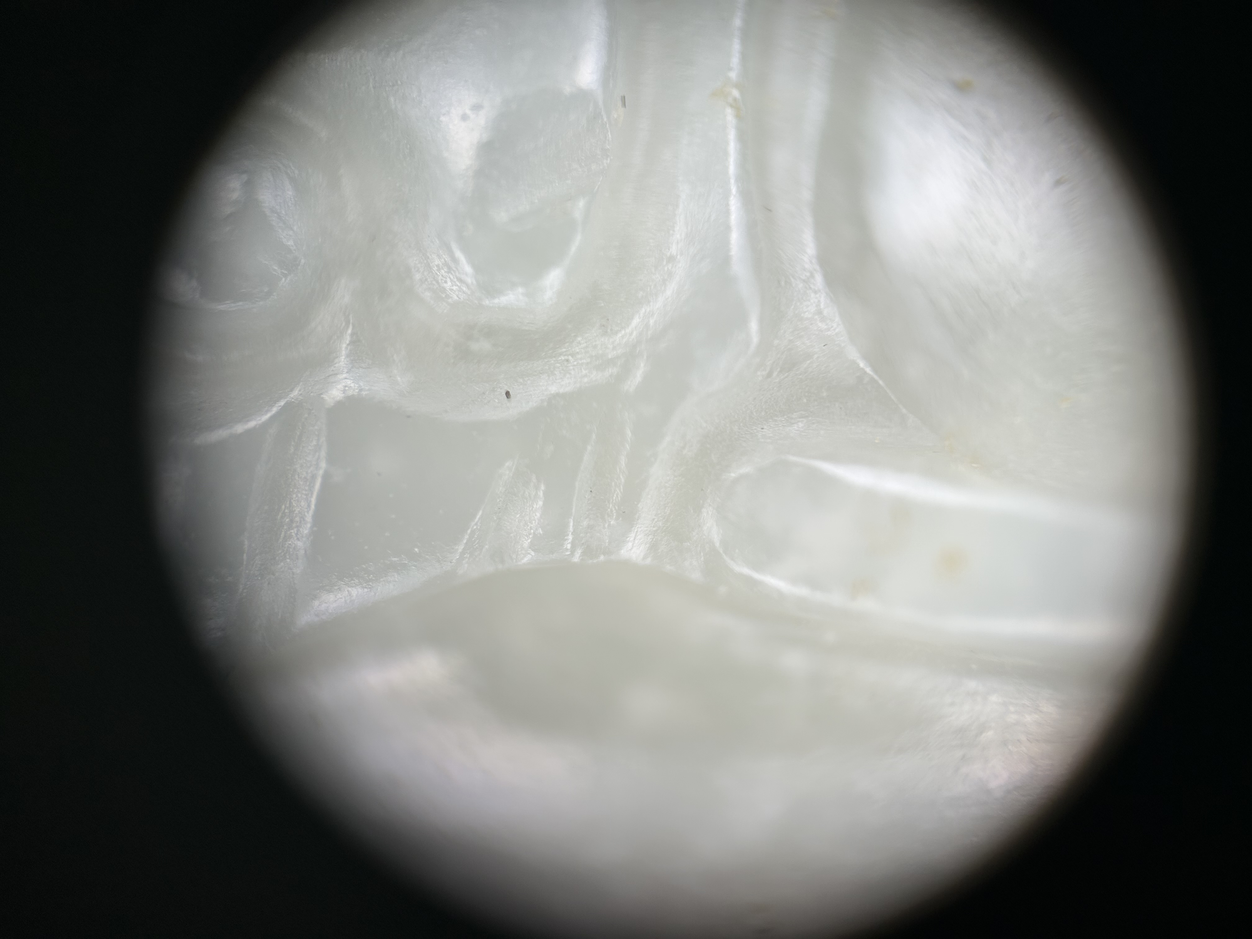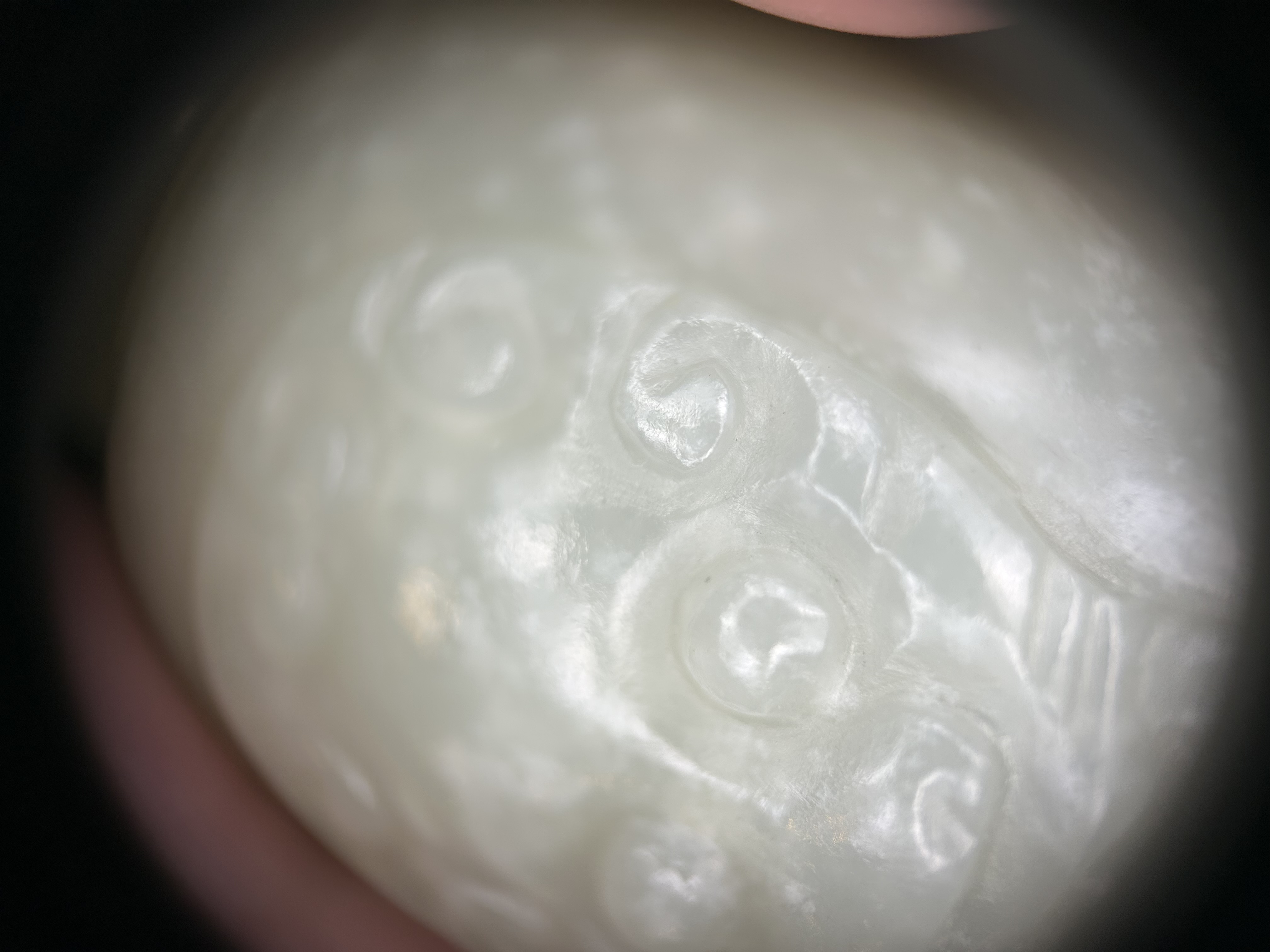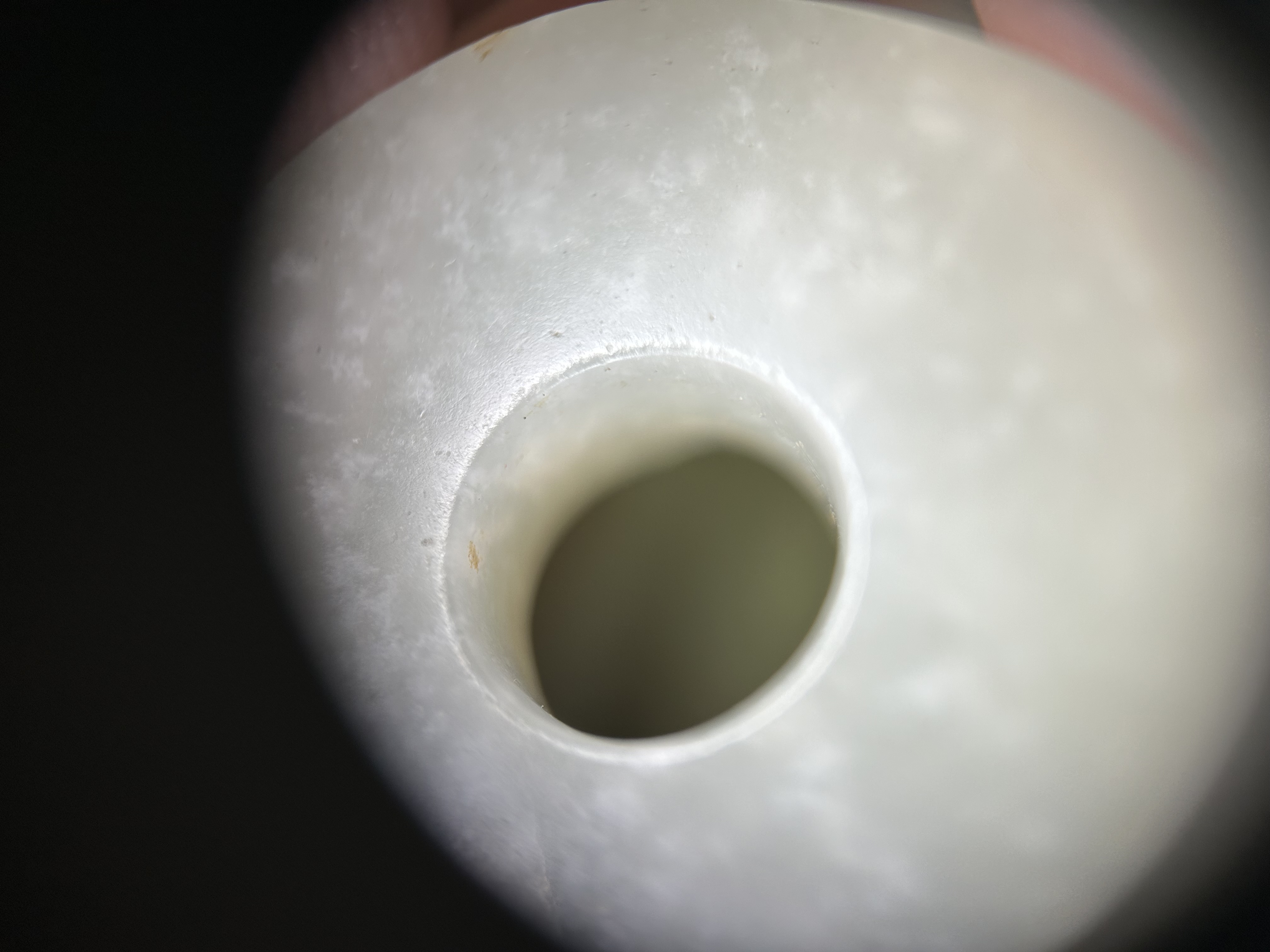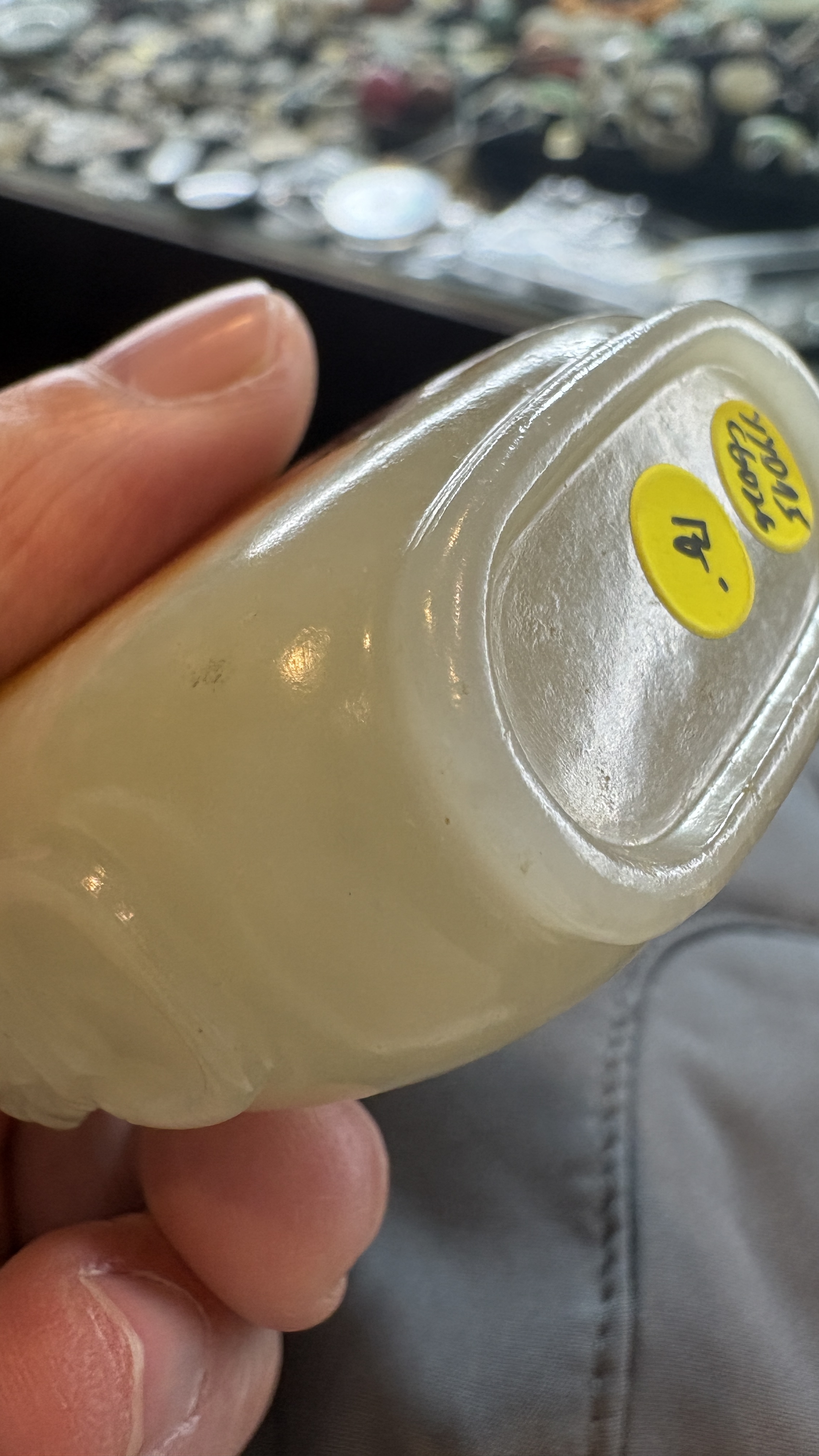 藏友你好,从你拍的图能看到这件玉鼻烟壶的玉料棉感偏重,带皮色的料子玉肉质地稍弱是常见情况,不用在意。你感受到的胶腊感和油润度是和田玉的典型特征,和翡翠的水润质感本就不同,并非注胶或注腊的问题。刻工的工痕能看出是老工特征,工艺没问题。另外鼻烟壶内部掏膛彻底、玉壁较薄,导热变温速度快也属于正常现象,这类器皿件为了实用都会做薄壁处理,不用顾虑哦。整体可以的,可以放心收藏。