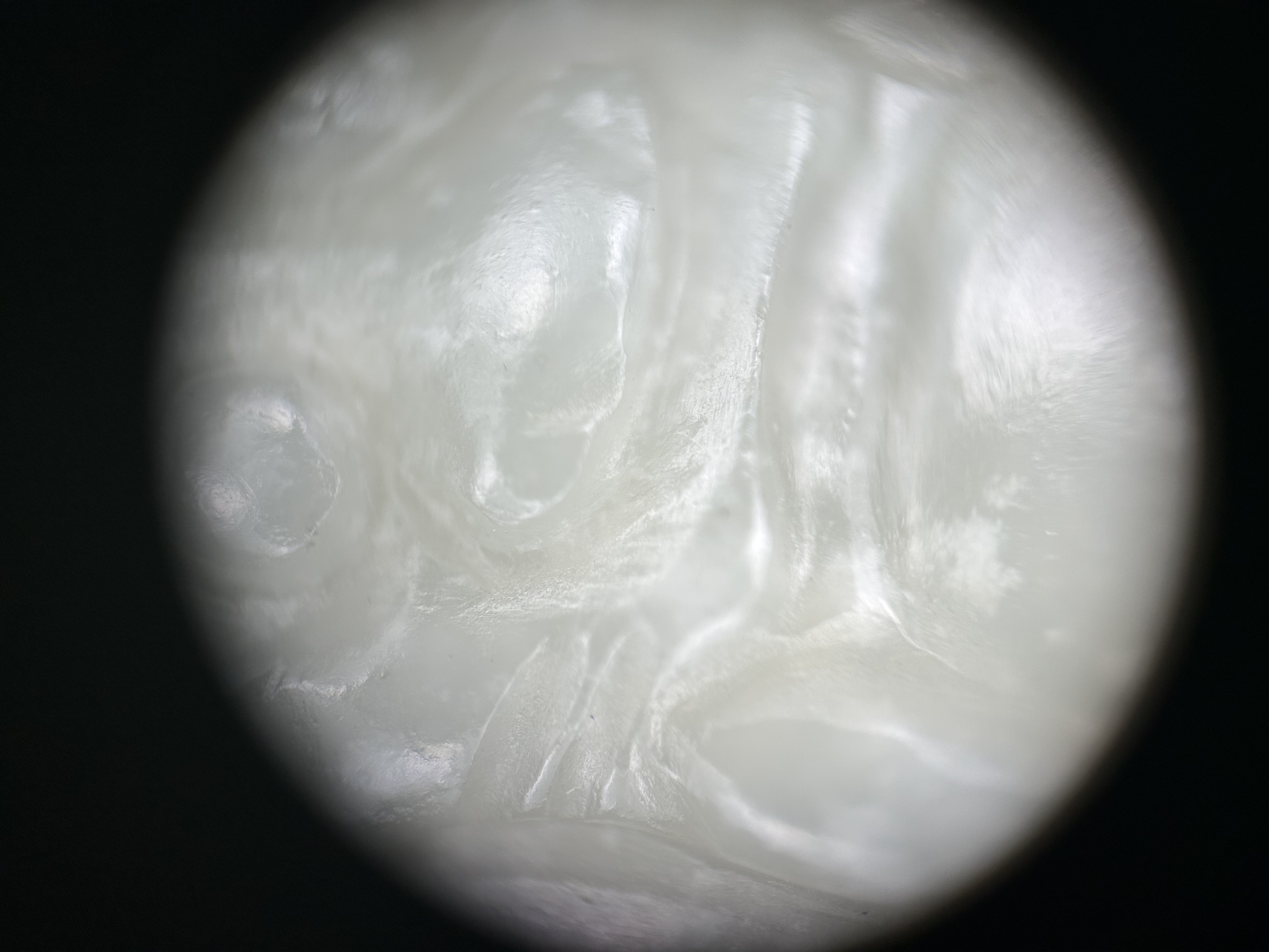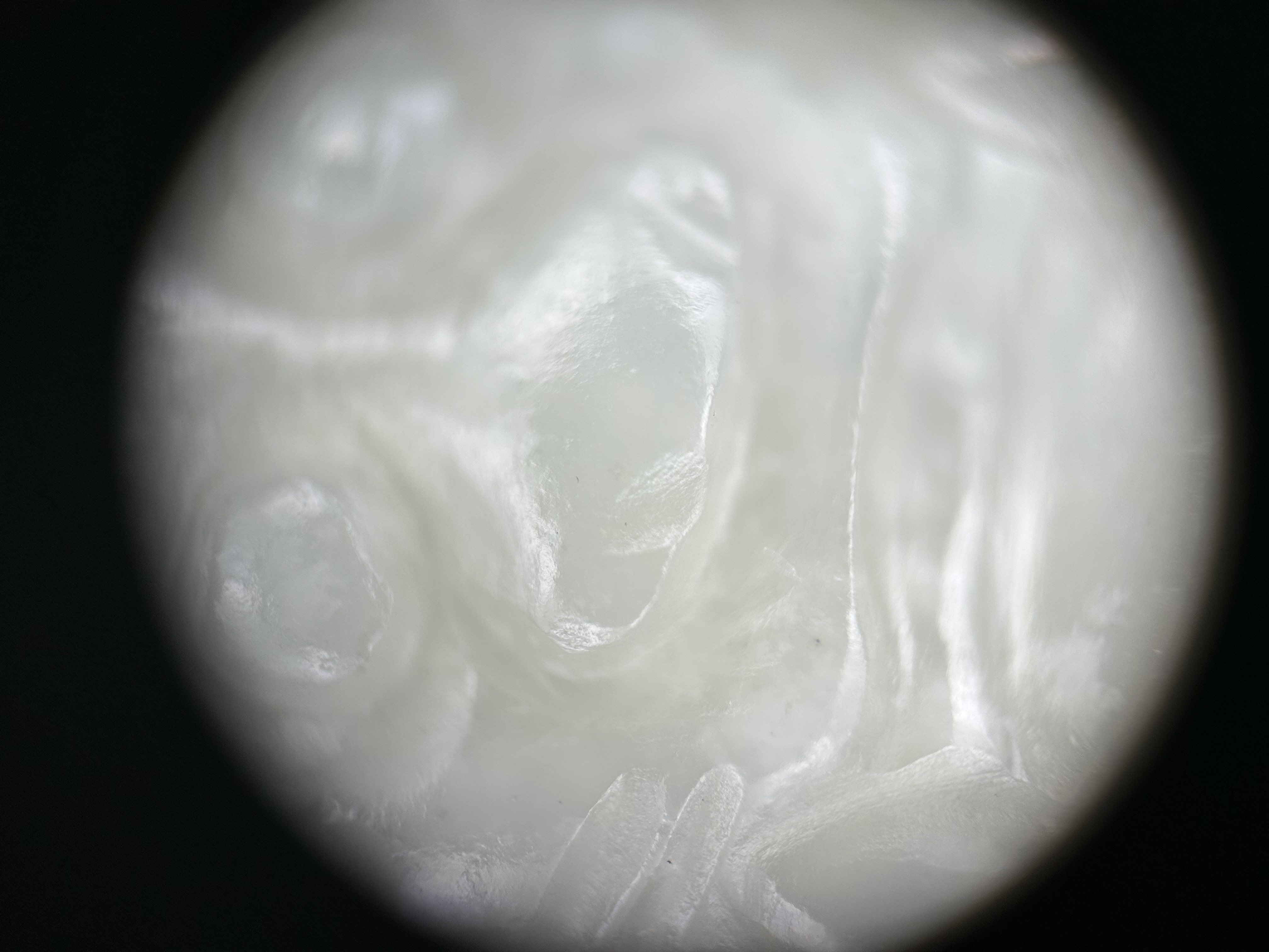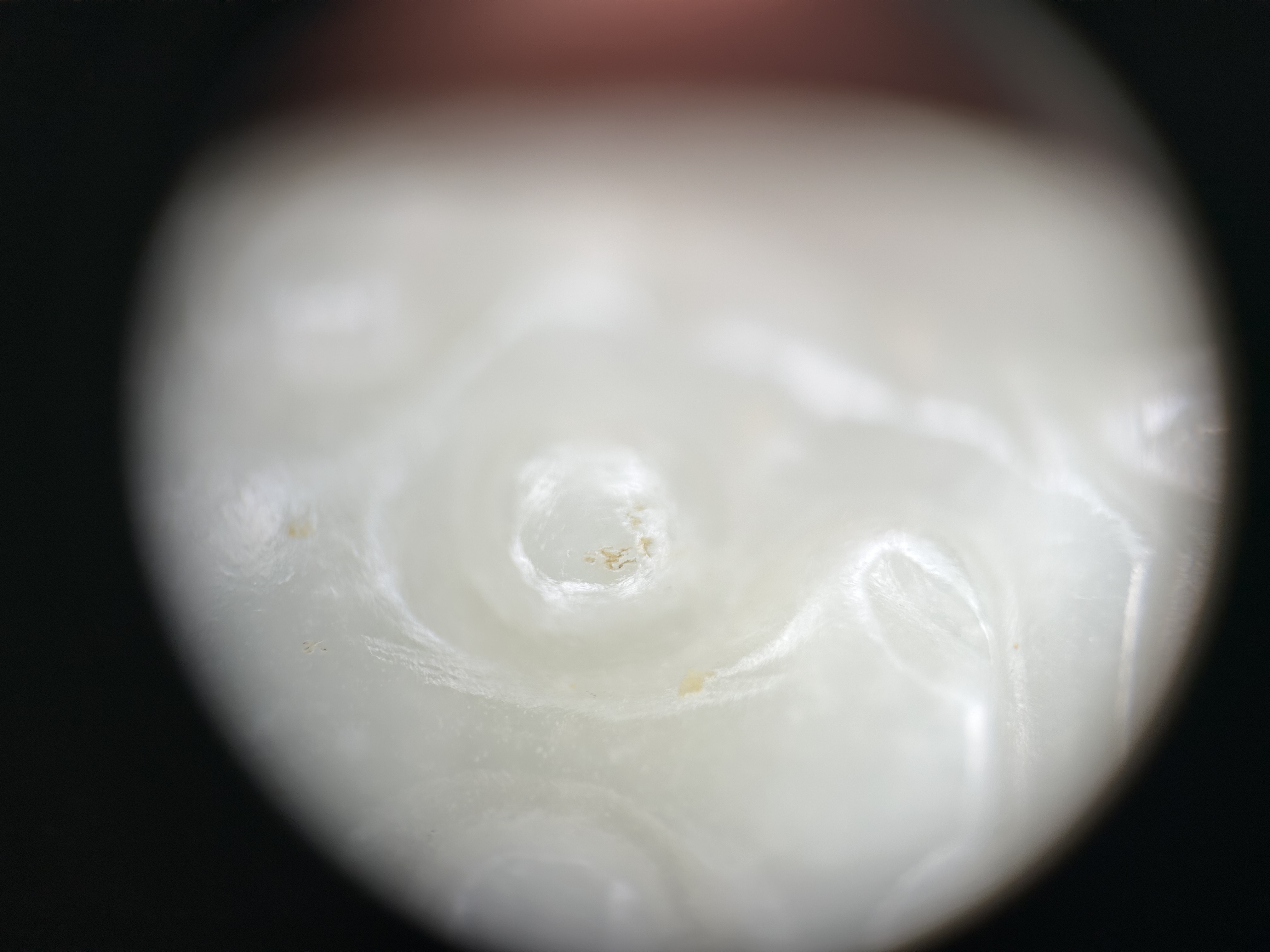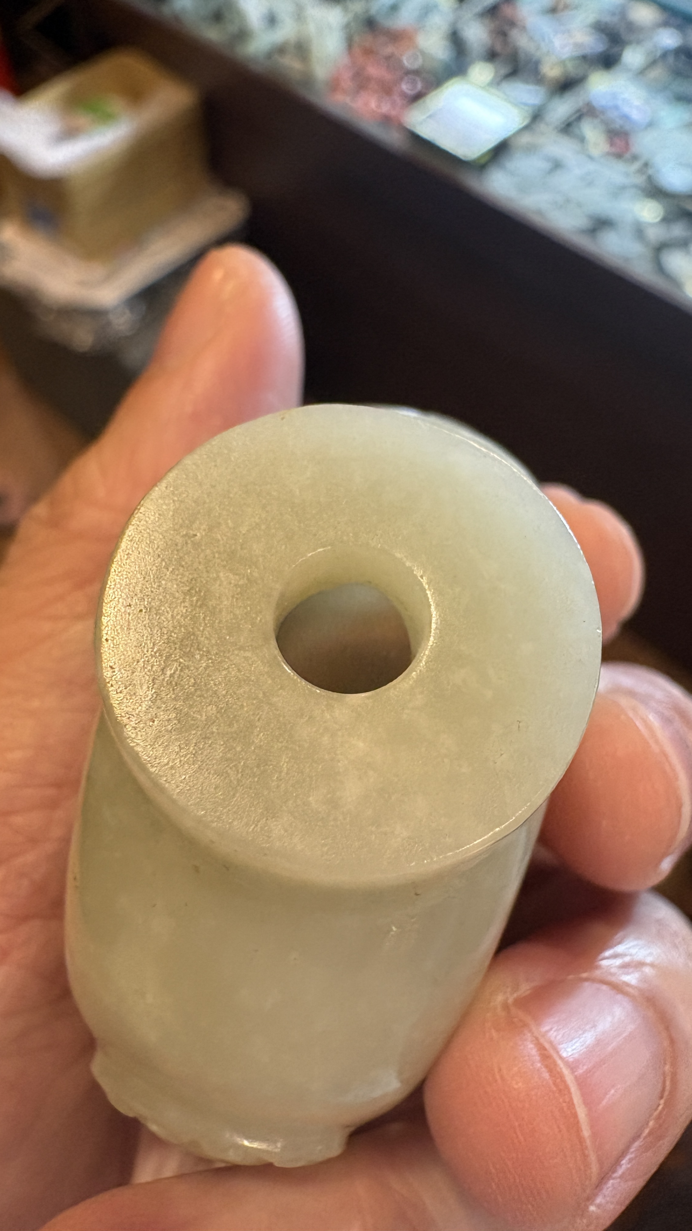 藏友你好,从你拍的图能看到这件玉鼻烟壶的玉料棉感偏重,带皮色的料子玉肉质地稍弱是常见情况,不用在意。你感受到的胶腊感和油润度是和田玉的典型特征,和翡翠的水润质感本就不同,并非注胶或注腊的问题。刻工的工痕能看出是老工特征,工艺没问题。另外鼻烟壶内部掏膛彻底、玉壁较薄,导热变温速度快也属于正常现象,这类器皿件为了实用都会做薄壁处理,不用顾虑哦。整体可以的,可以放心收藏。