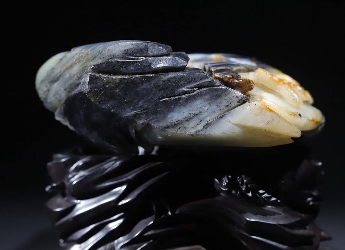 该藏品和田青花料材质,较油润,雕工算不错,细节处理略粗糙,可见现代工具加工痕迹,皮色部分为人工烤色,包浆不够厚重,年份到不了清,大约有几十年,市场价值大约3-5万元。