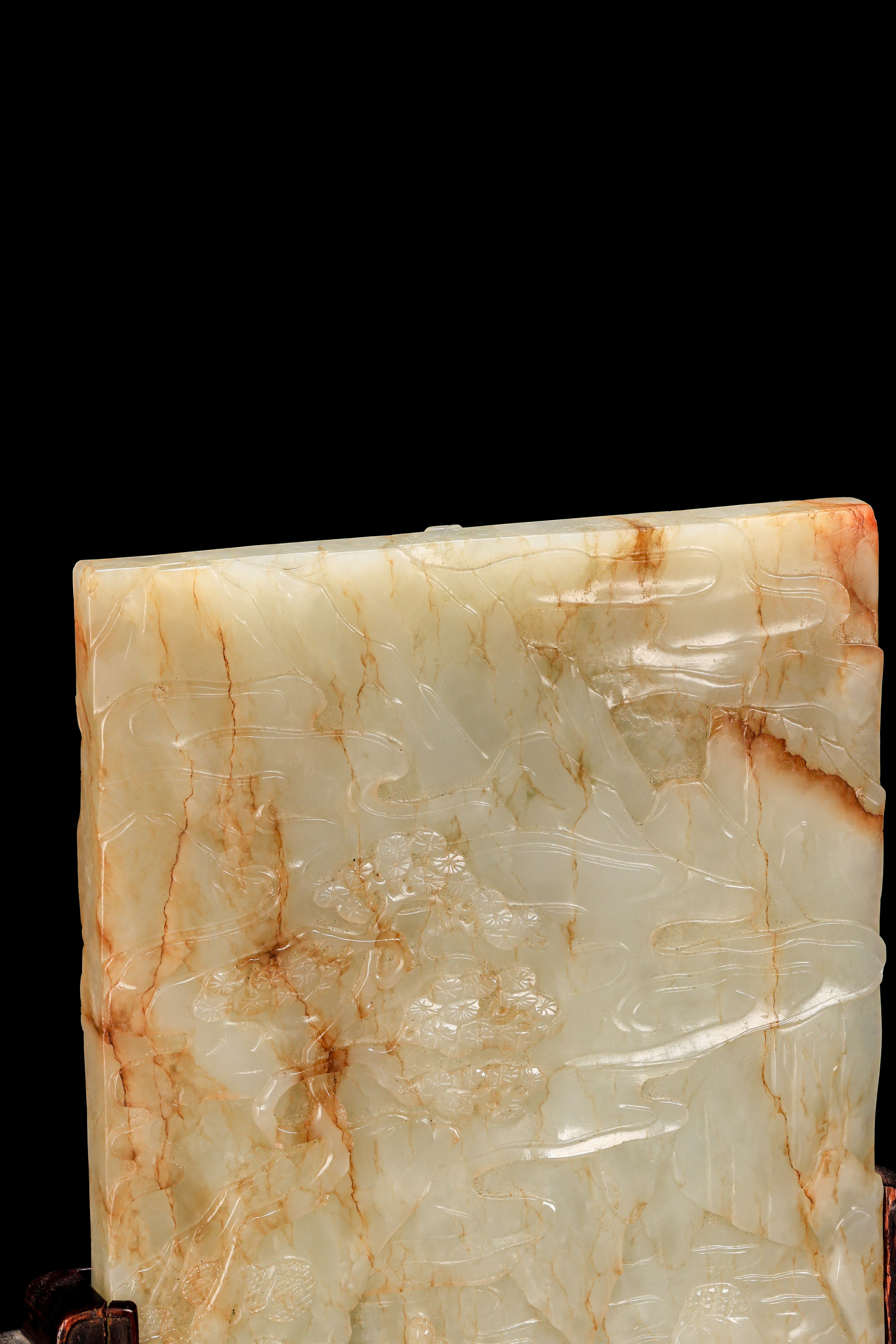 就图看,材质和田和田籽料,色青白,有棉,带天然红皮色,开门玉插屏造型:双面工,形制符合时代特征,刀工遒劲,线条流畅,包浆自然,有绺,老东西:清晚期,可藏。估价:中几万元。