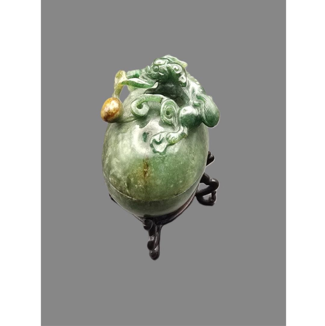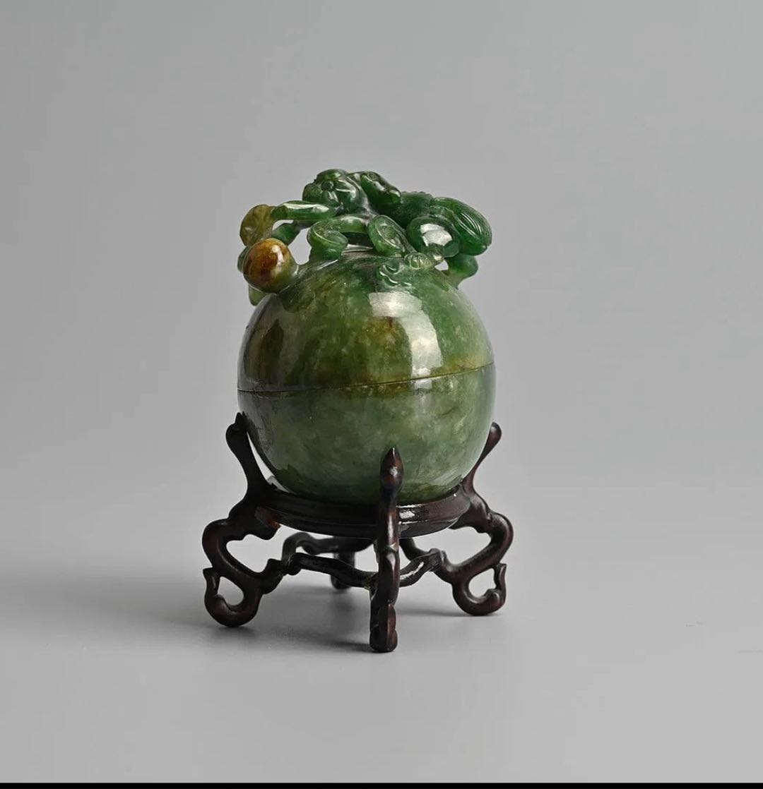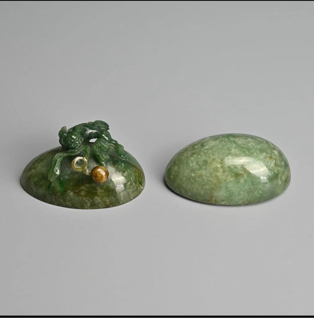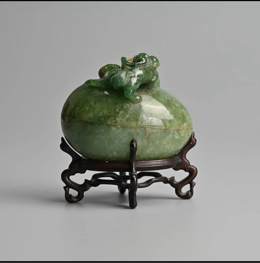- 清代精美中国翡翠容器,盖子上饰有貔貅图案