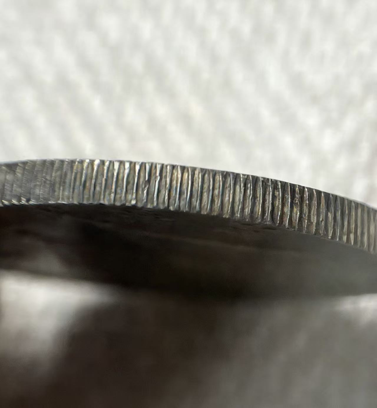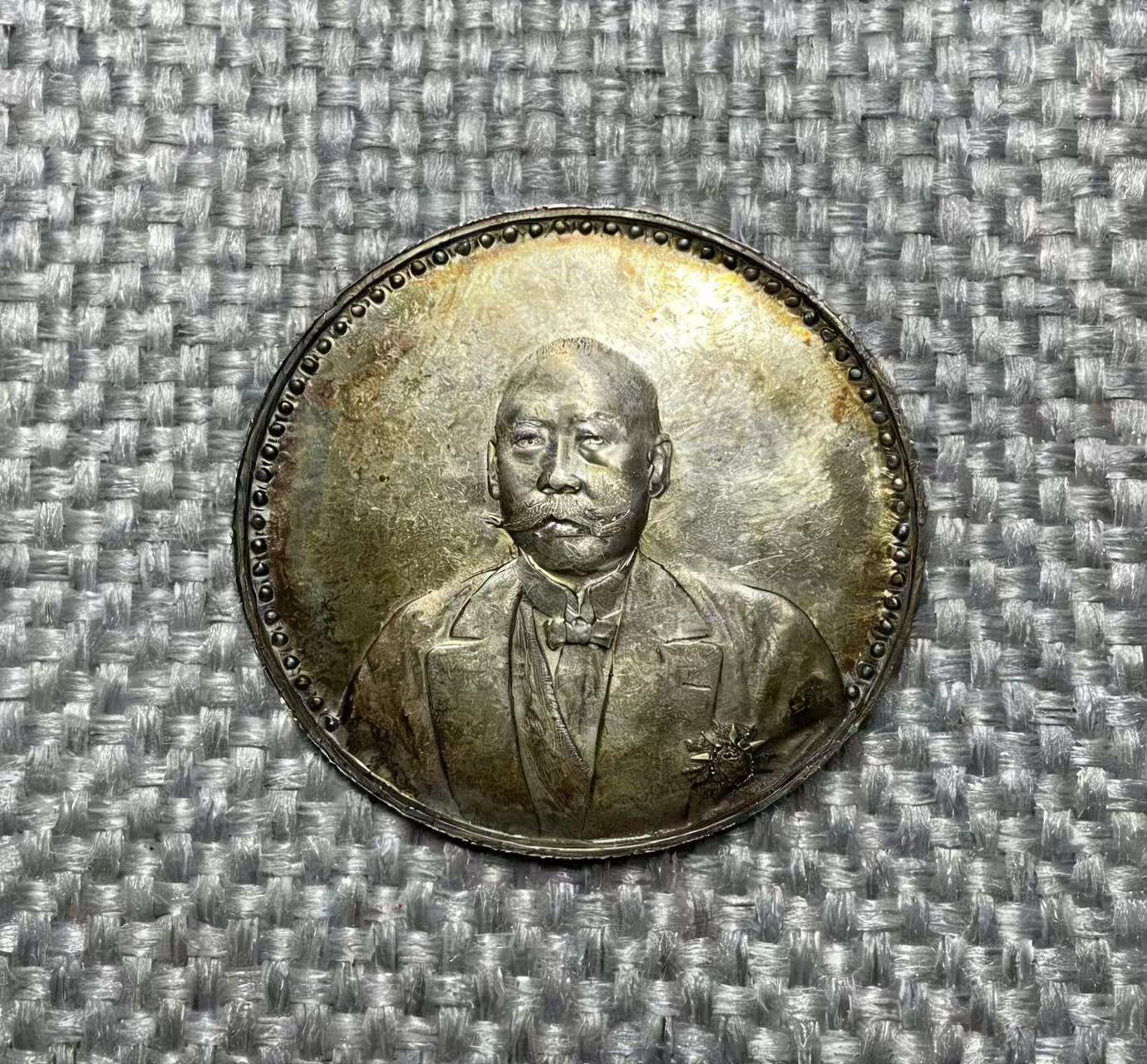 藏友您好,感谢信任。该枚民国时期曹锟宪法纪念币,因其主体图象为民国总统曹锟西服九分象,故称文曹,从图片上看,该币色泽偏黄,细节不明朗,主体曹锟眼晴无神,边齿散乱,据此,个人看为当代仿制品,建议勿高价介入,以免损失。谢谢!