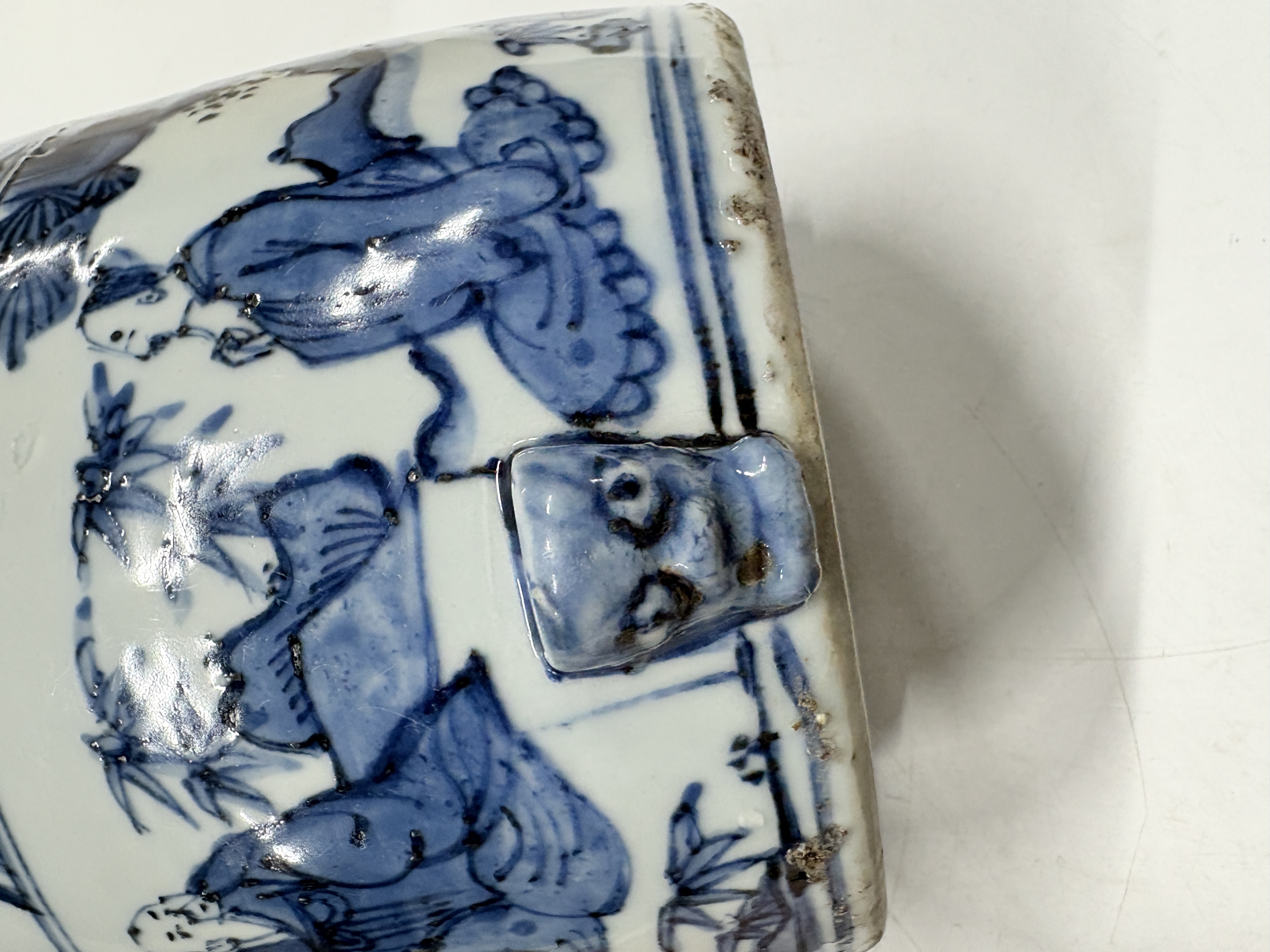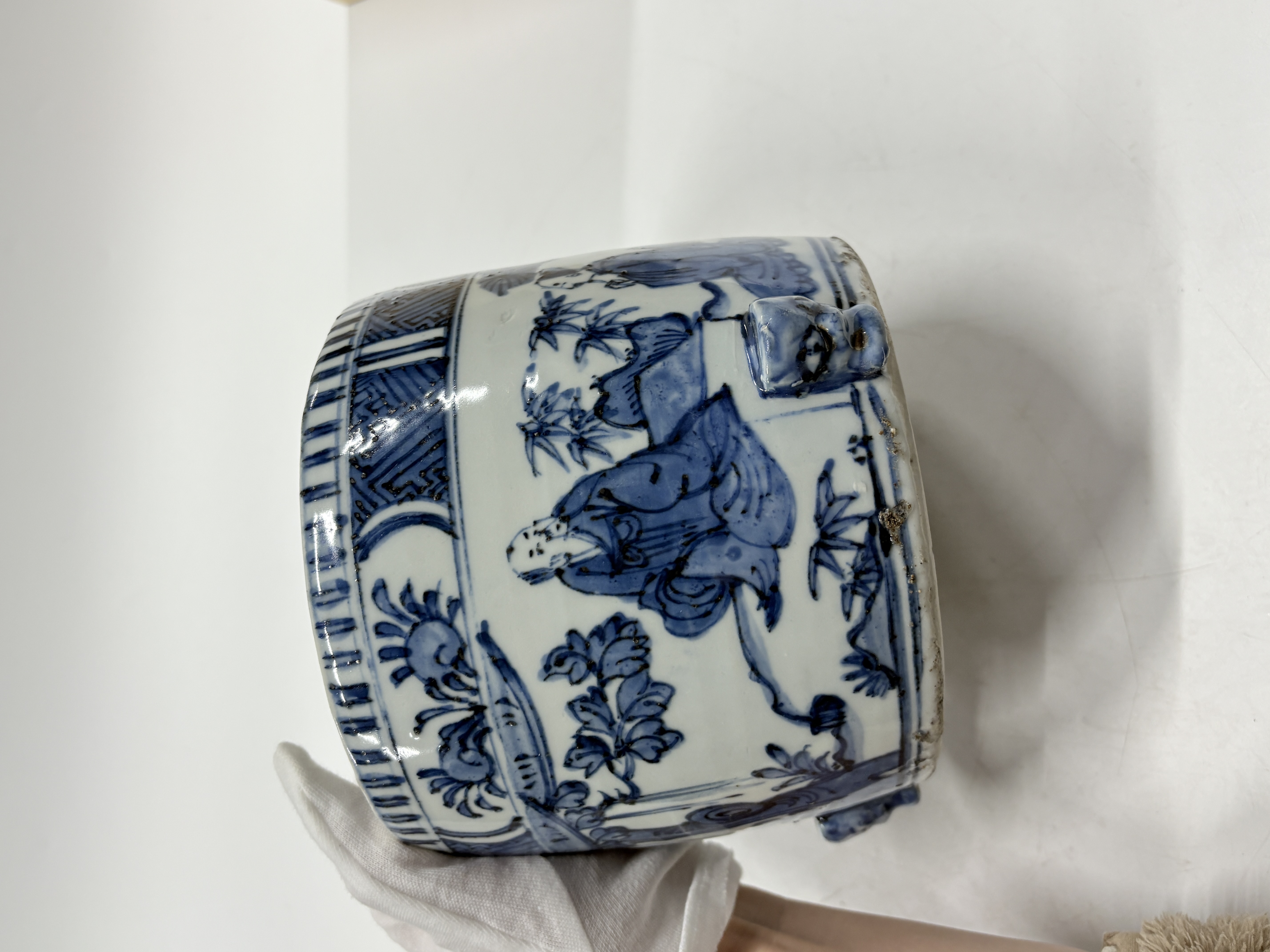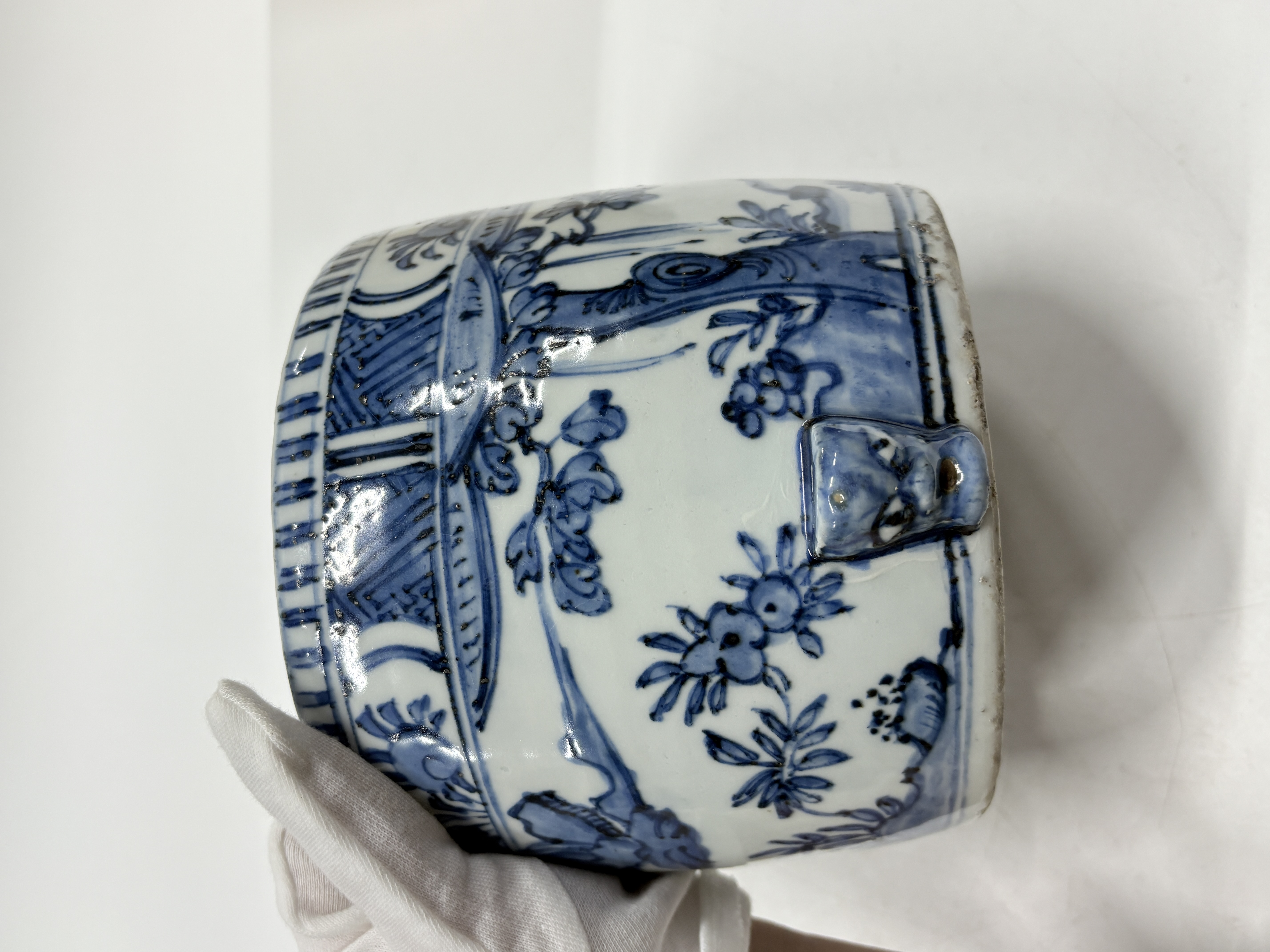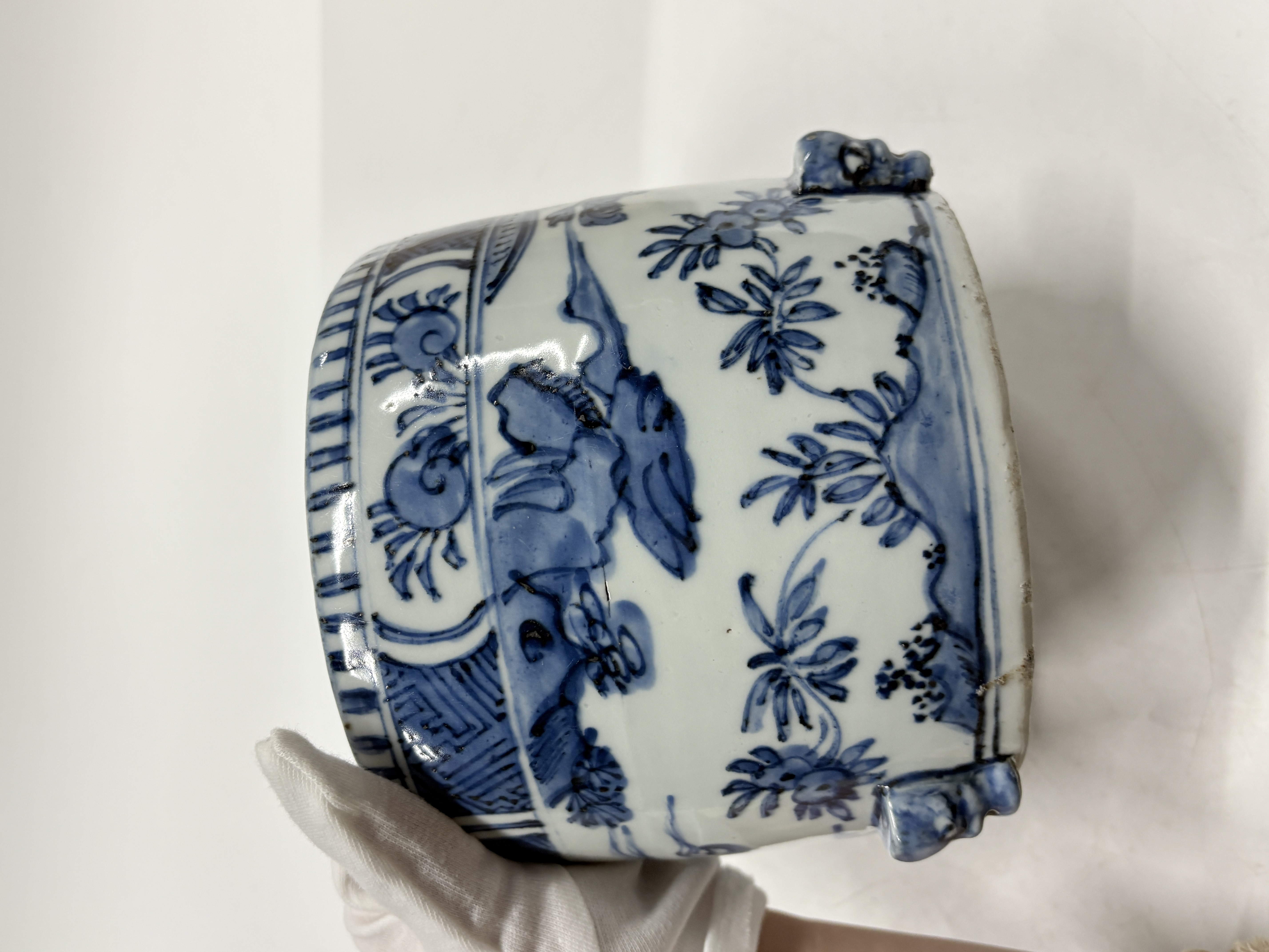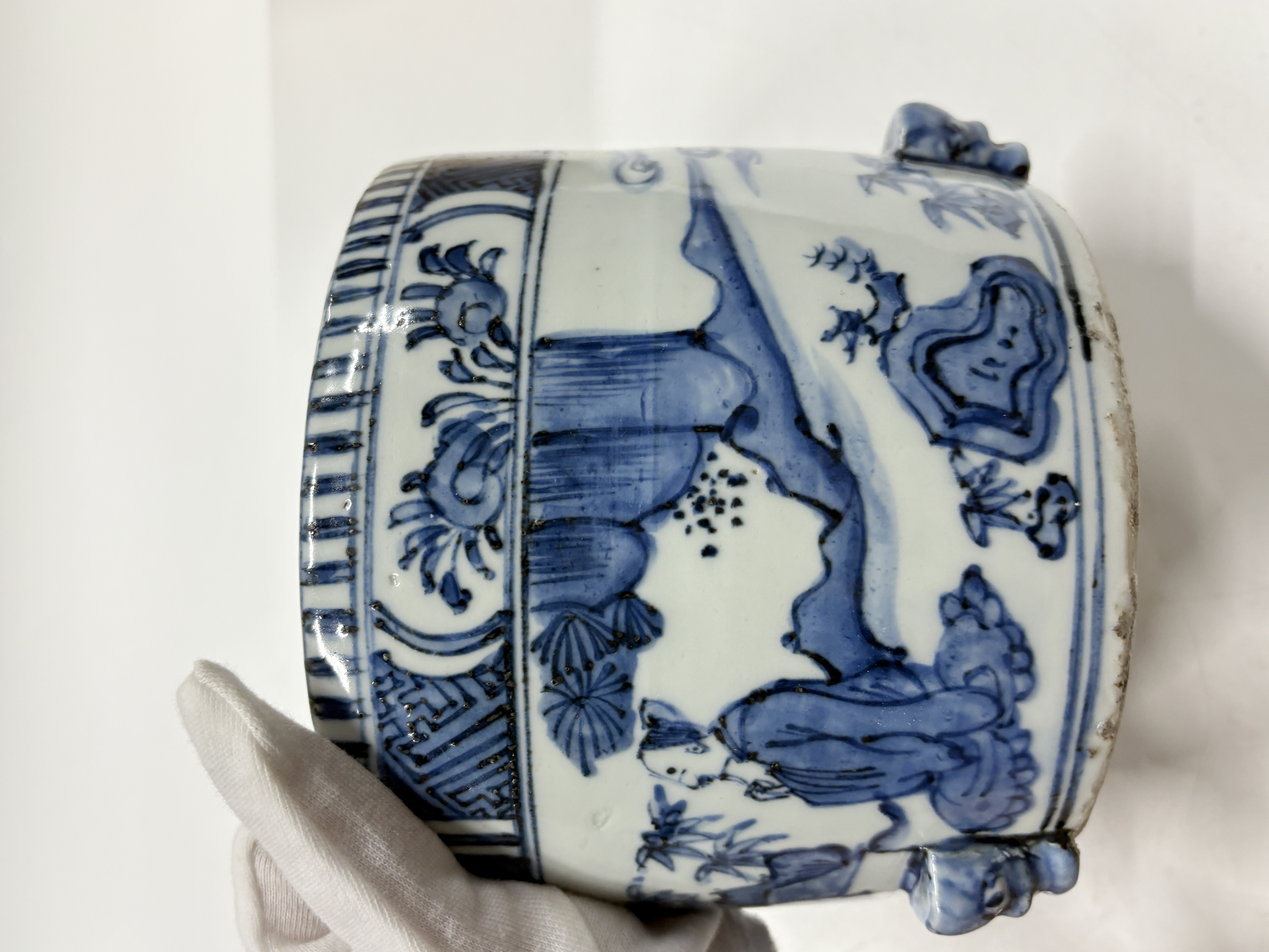 由所提供的图片来看,此青花三足筒式香炉有类似于明代晚期景德镇窑口风格,如果到代且品相完好,则有一定的收藏价值。其造型古韵不足,青花的发色漂浮,纹饰绘工有现代感,底胎显生涩,据现有图片来看此藏品不老,如果尚未购藏建议慎重对待,以上观点供你参考,感谢你的信任及支持。