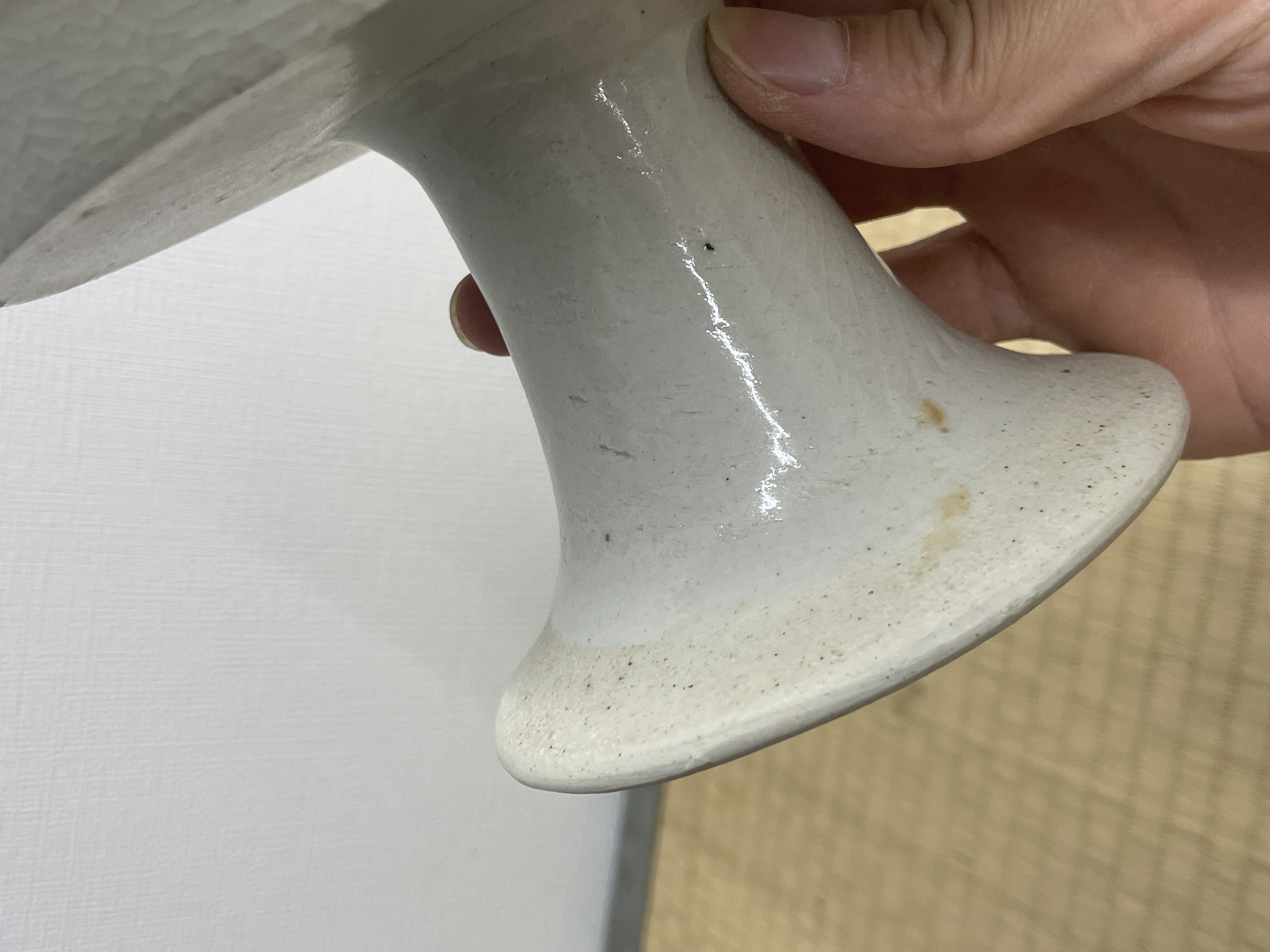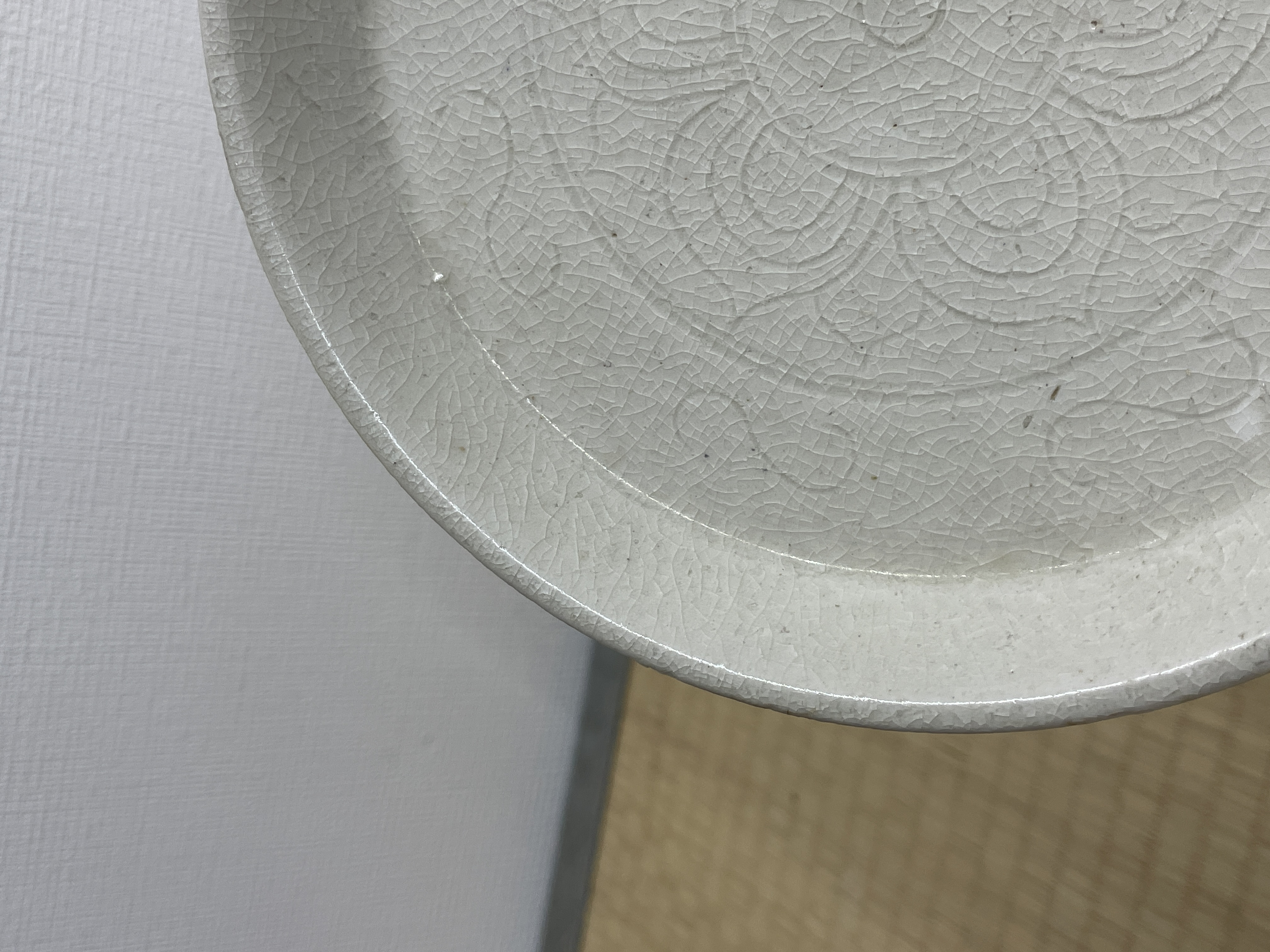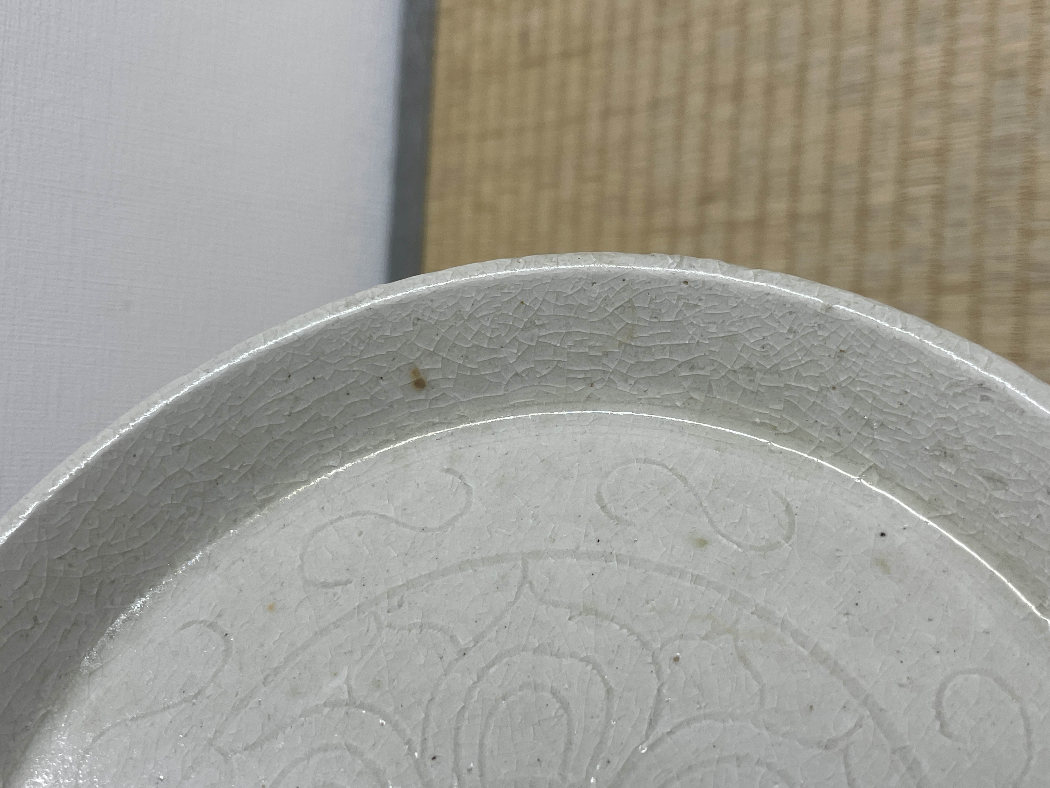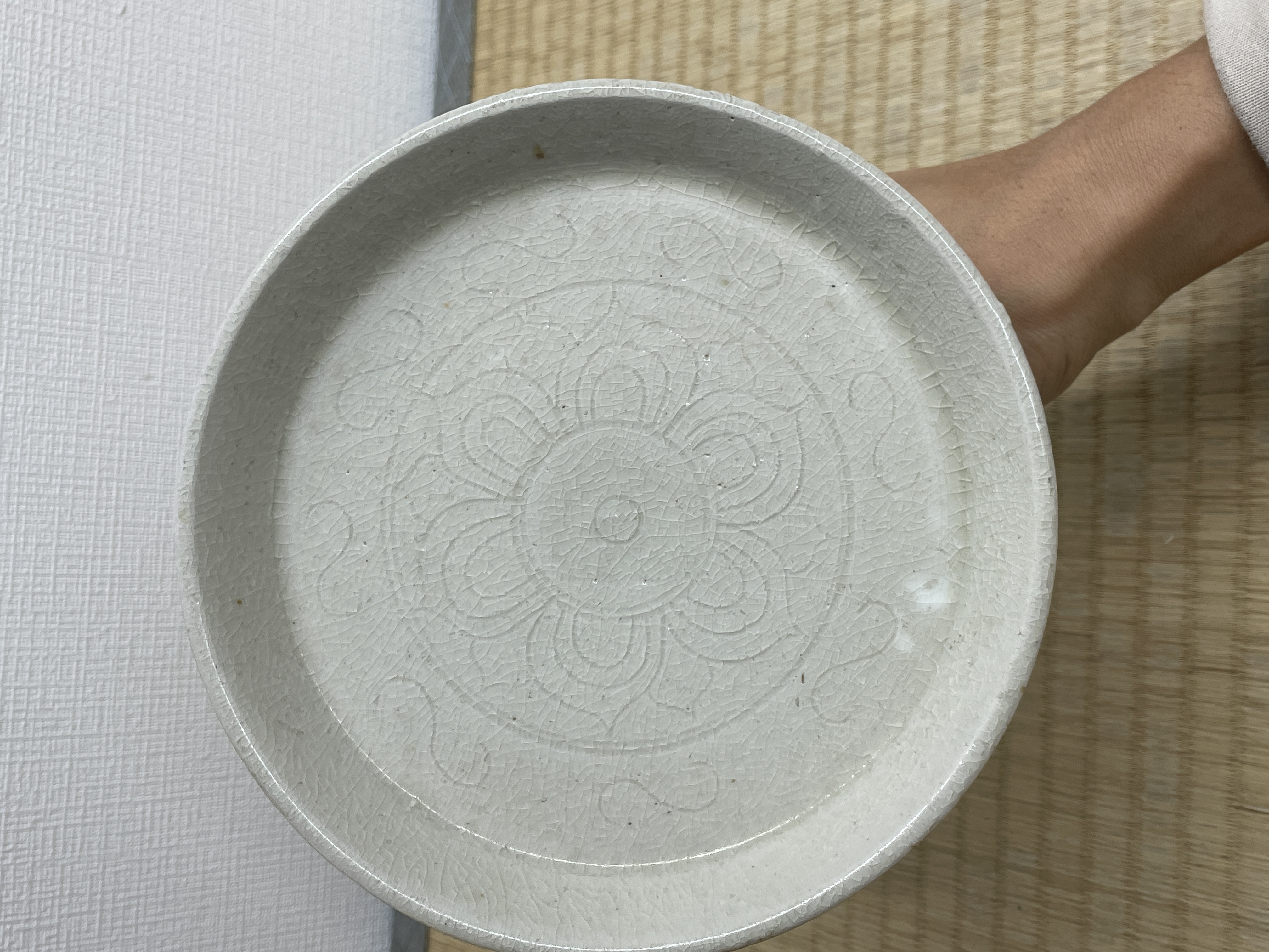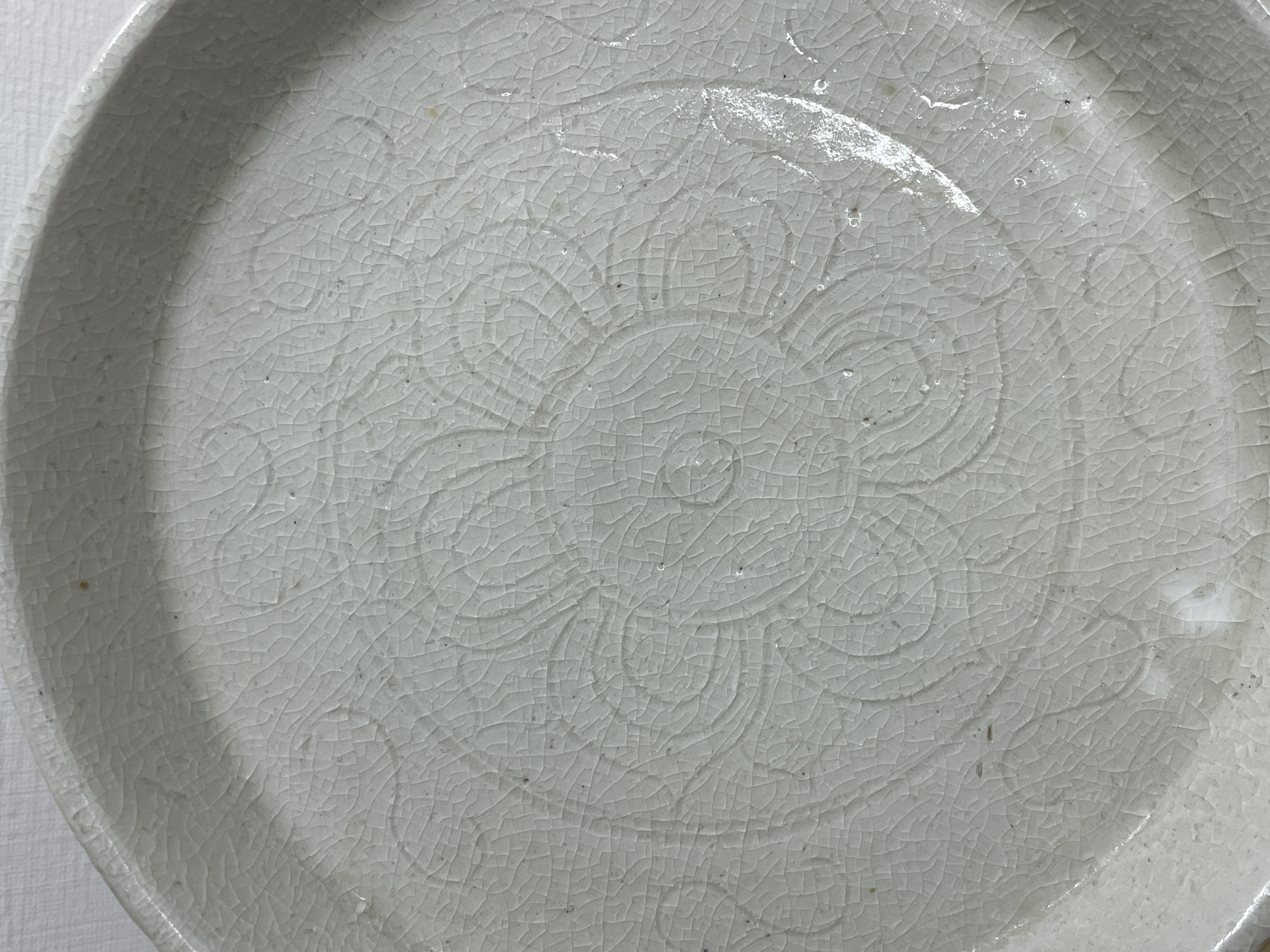 白釉盘子看老,窑口看河南巩县窑。瓷胎细腻酥松釉子莹润开片自然,看老,看宋。估价6000元左右