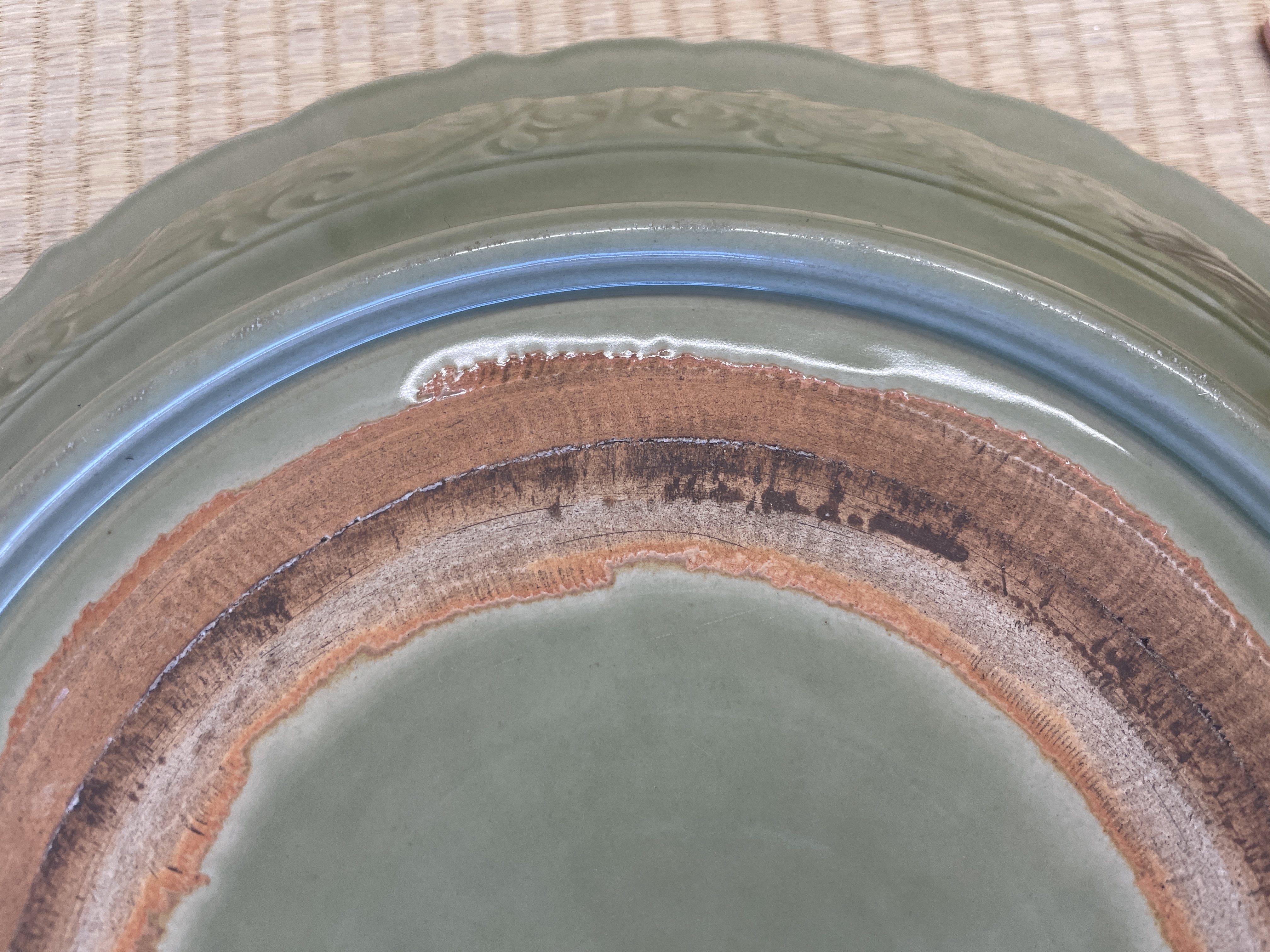 龙泉窑大盘看老,应该是日本仿明龙泉差不多清代中晚期时期制作龙泉大盘子,价格不贵。估价一万元左右