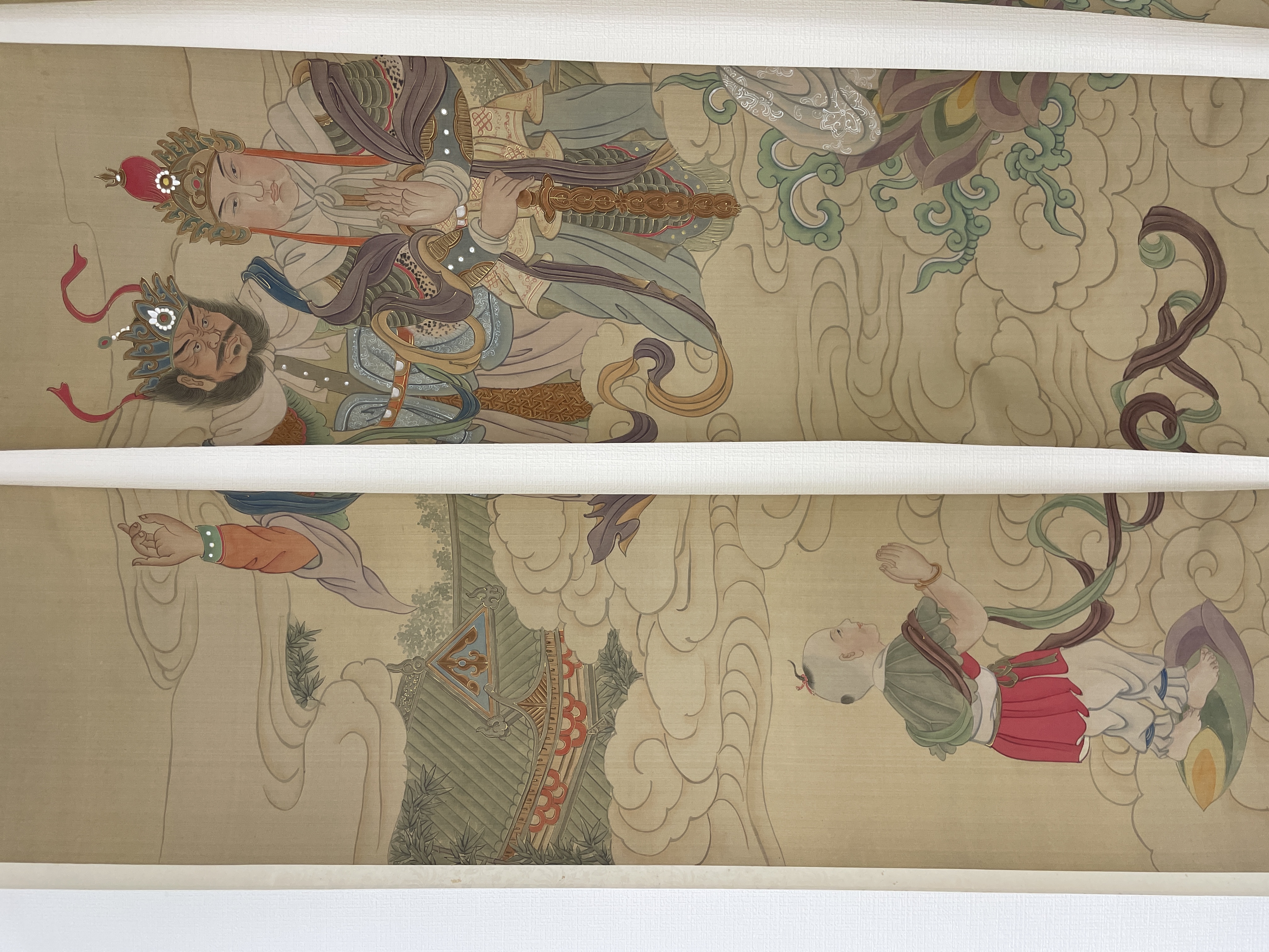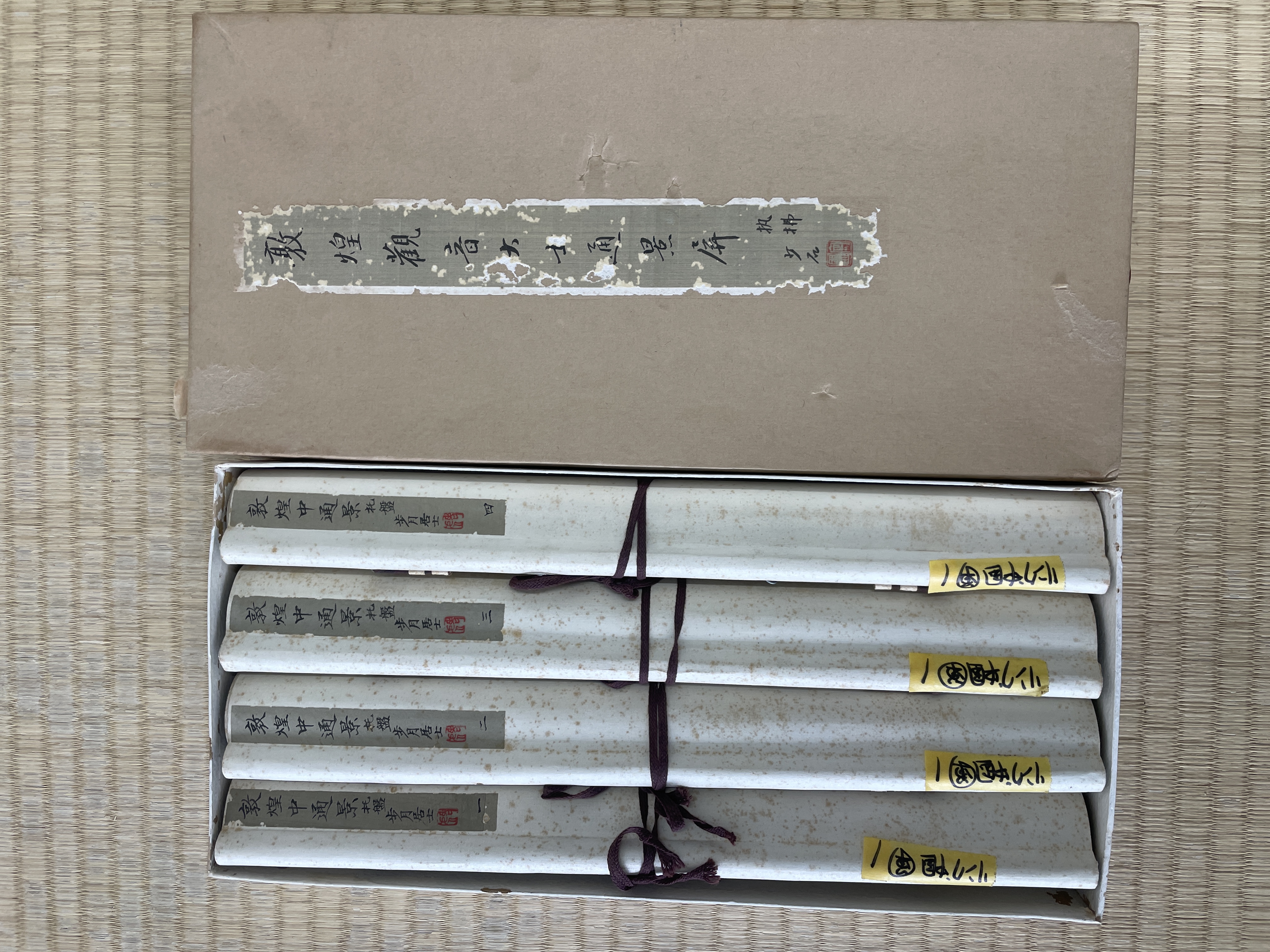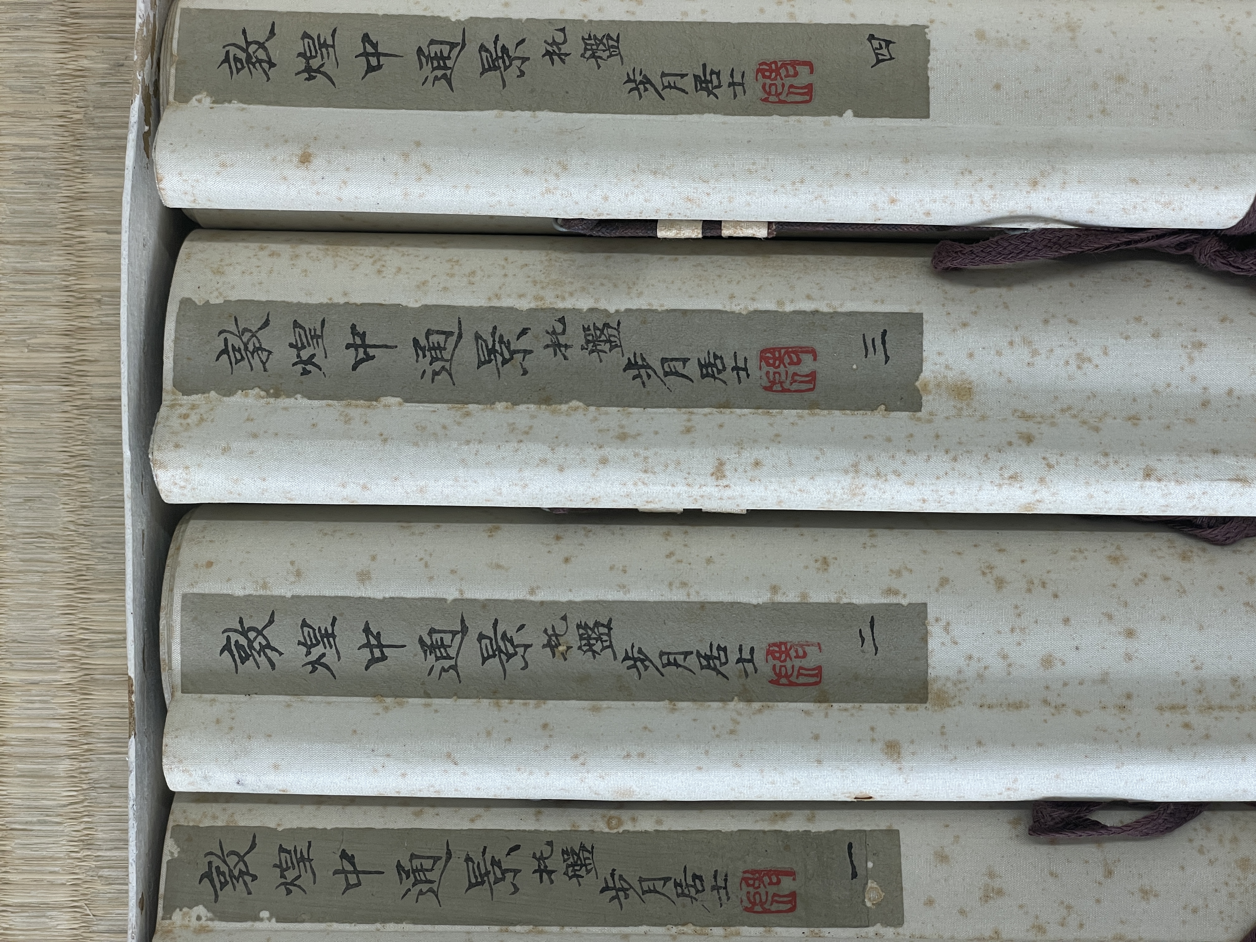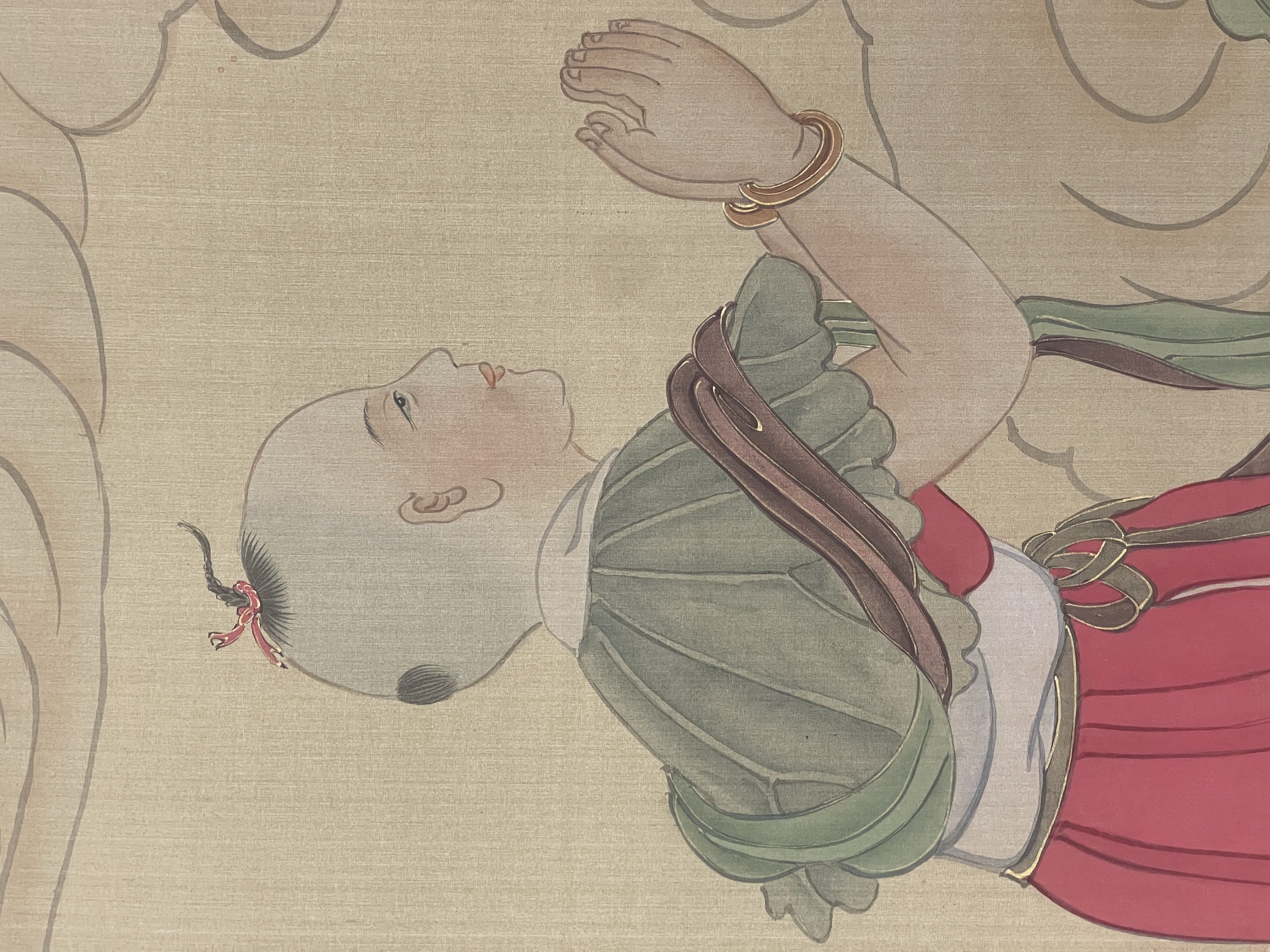 藏友您好!此套《摹敦煌观音大士通景四条屏》,绢本,无款。步月居士题签,印章“老虎”,盒签执石、少石题,印章“安圃”。画工细腻,法相庄严,整体有旧感,初鉴为清末民初佚名画家作品,喜欢可藏。图片鉴定,仅供参考。感谢您的信任与支持!