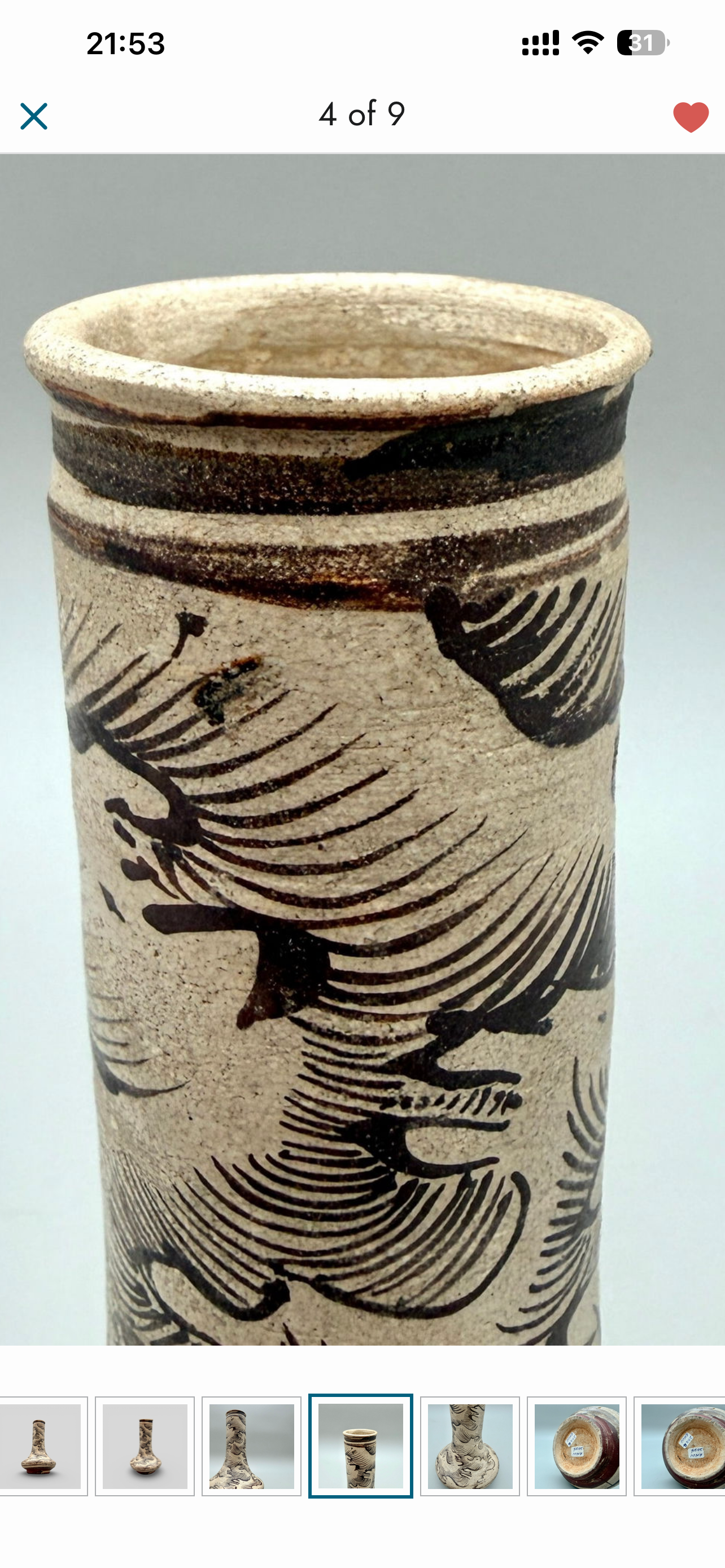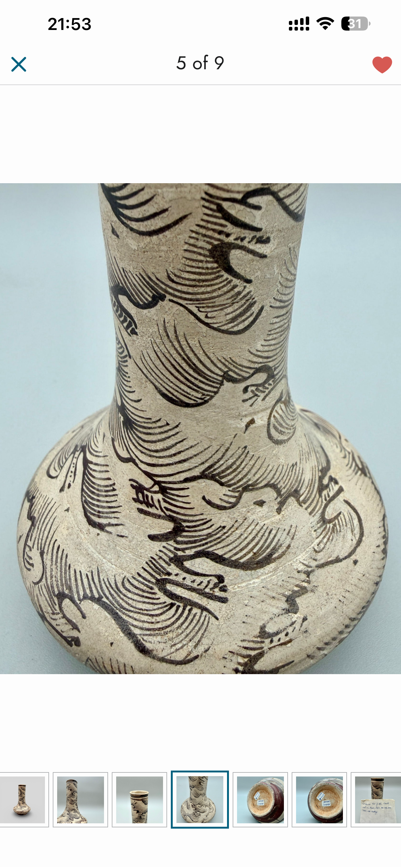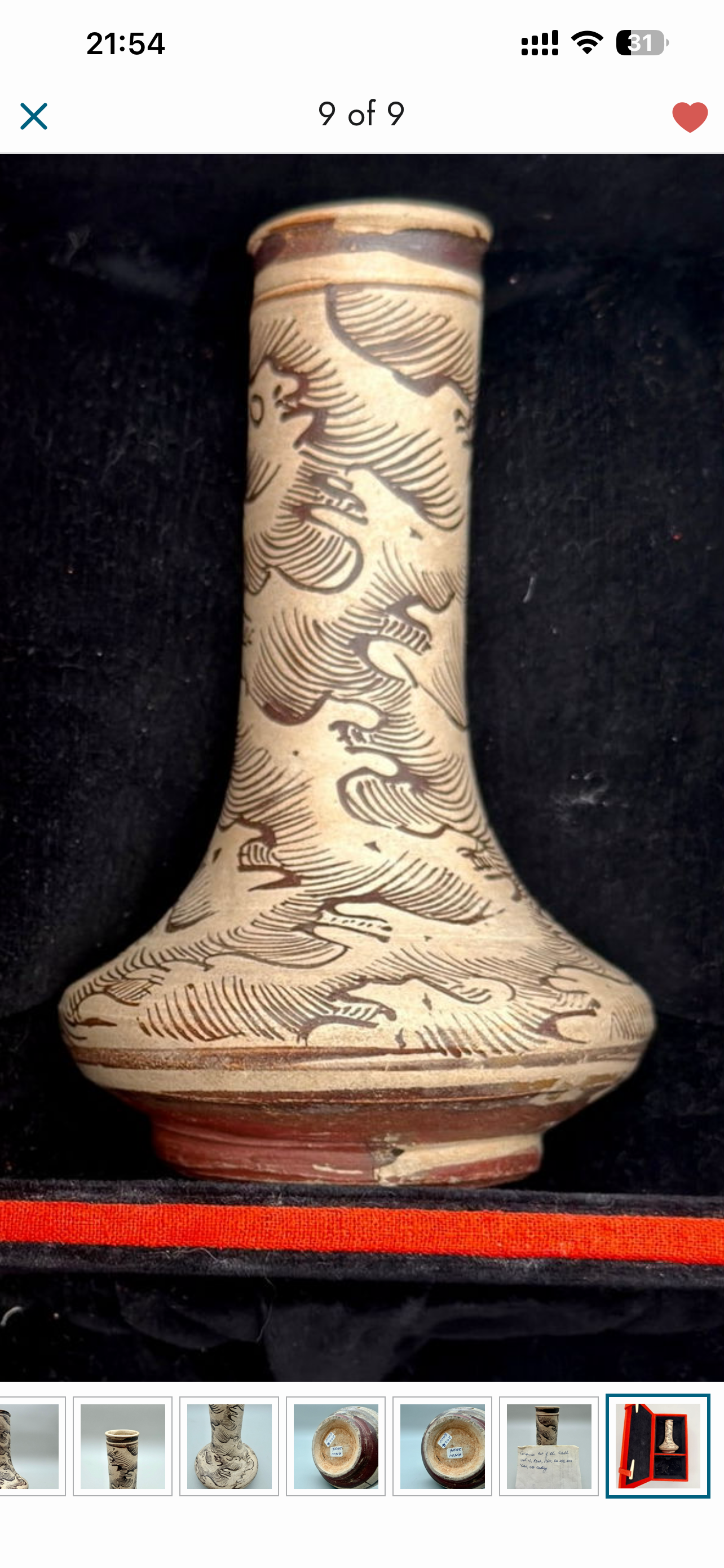 藏友好我是路杰,这件初步看是元代吉州窑海浪纹直颈瓶,海浪变化整体老化自然,价格不贵可以买。不过目前国内吉州窑价格相对较低,价格在三万左右。