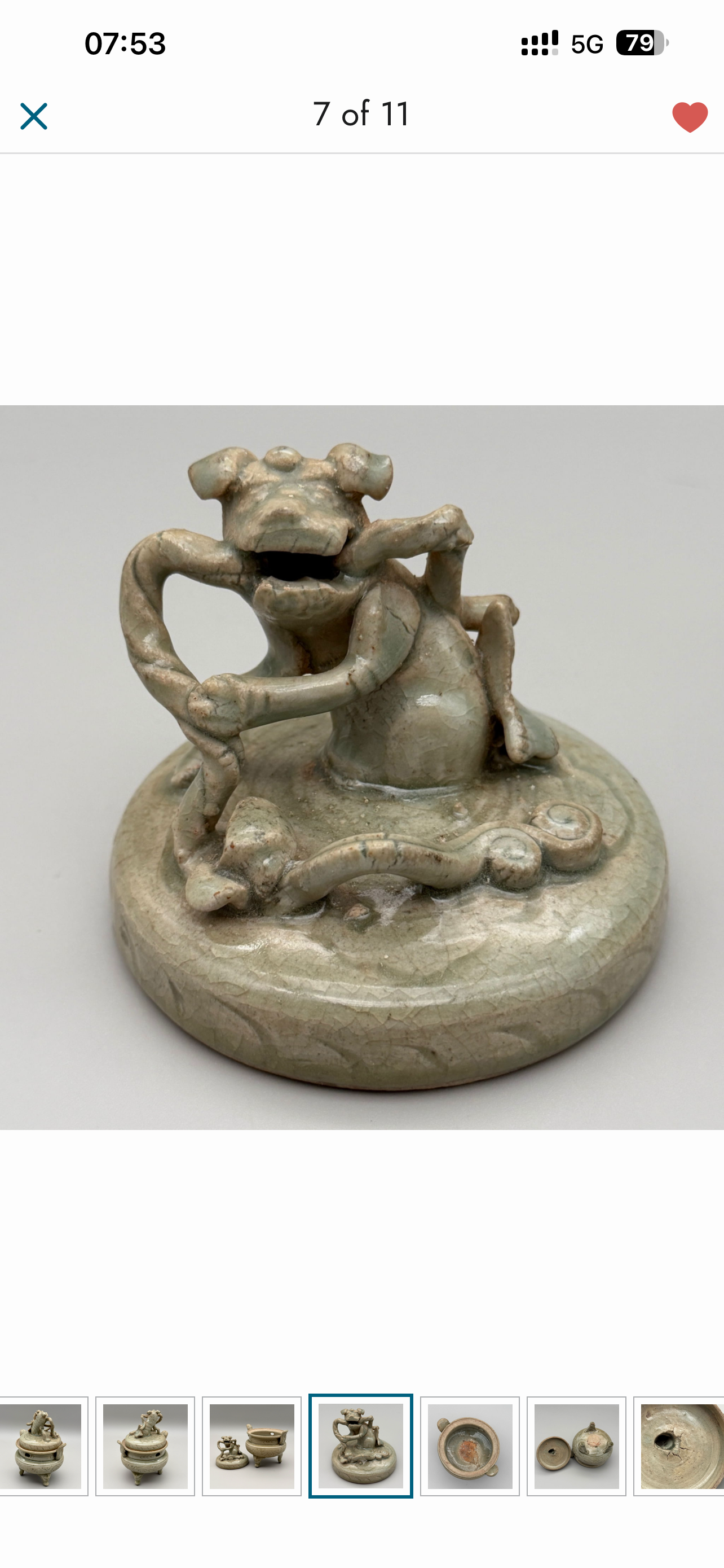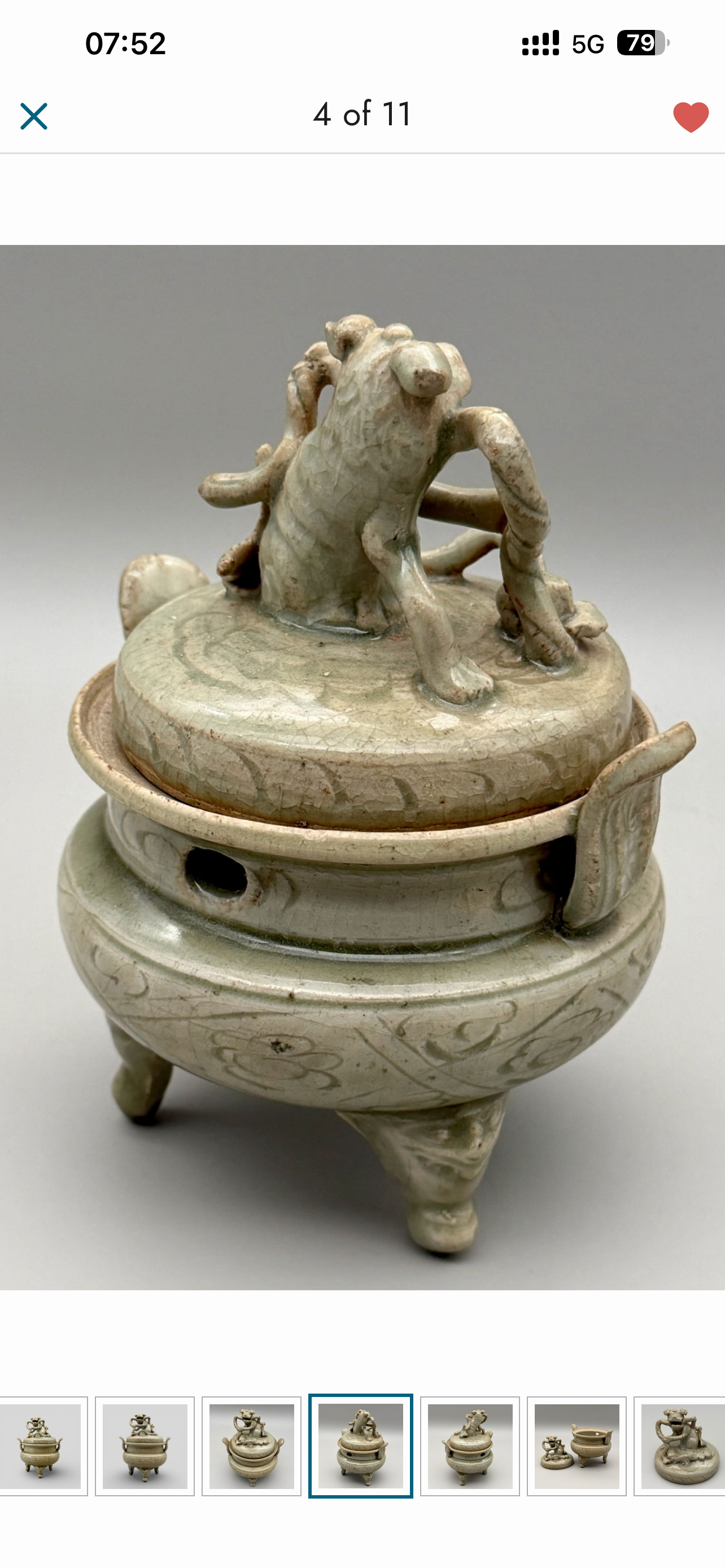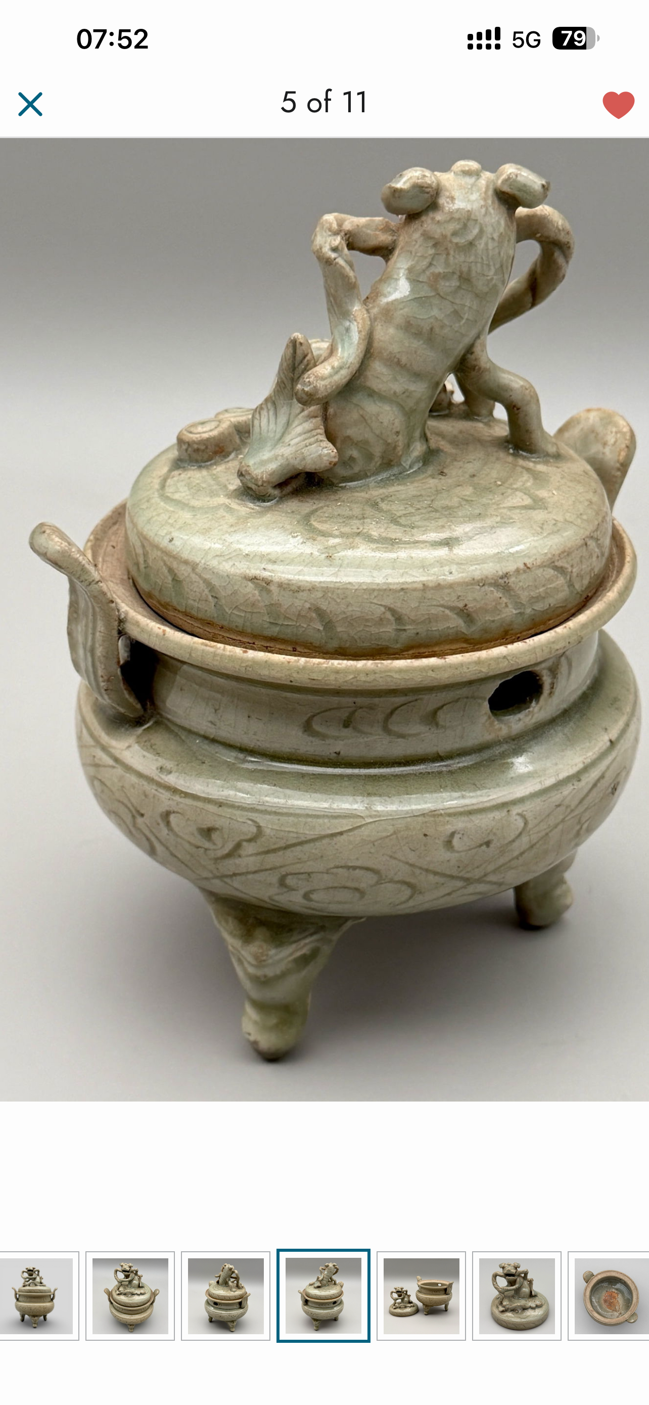藏友好我是路杰,这是一件清早期福建地区烧制的龙泉青釉狮钮香炉,造型古朴,价格在一万几可以买。